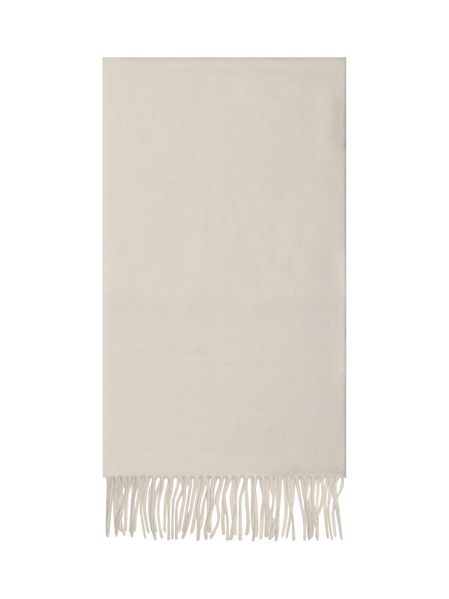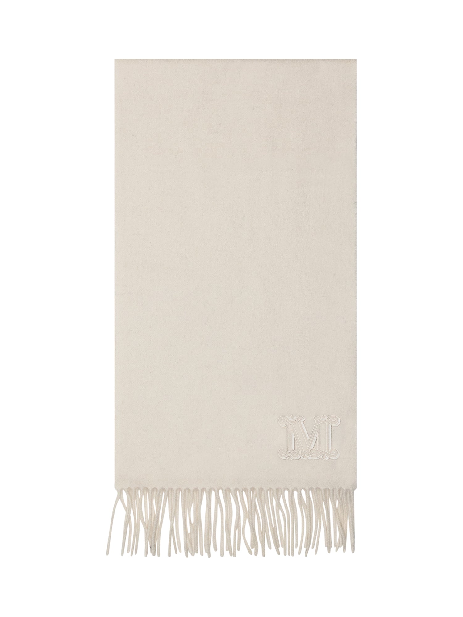 Sciarpa color panna con frange di Max Mara, realizzata in tessuto morbido e caldo. Rifinita con logo "M" ricamato tono su tono sull'angolo inferiore.