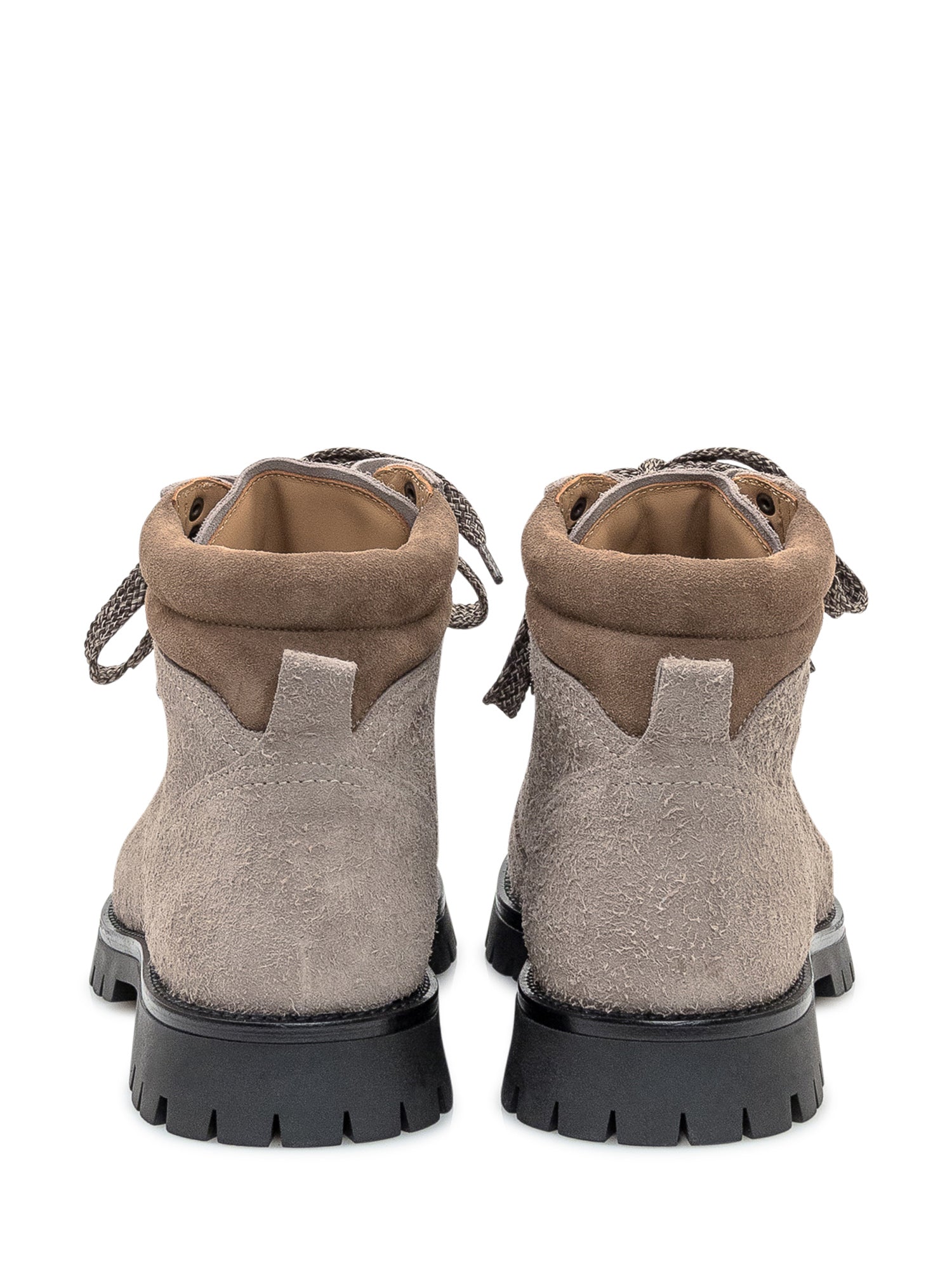 Scarponcini Maze in pelle beige con finitura testurizzata. Design hiking con occhielli metallici, lacci trekking e suola a carro armato robusta.