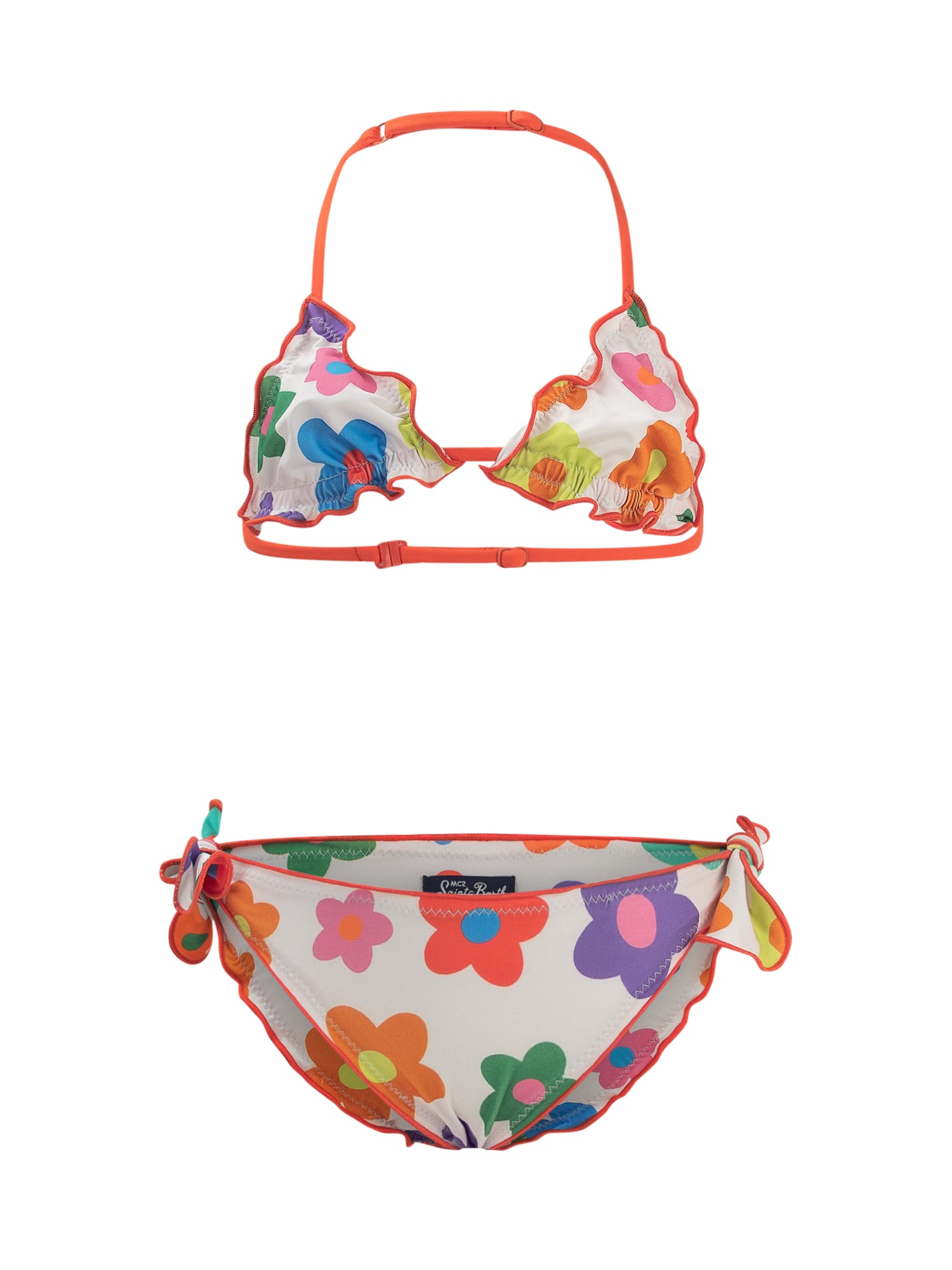 Bikini 2 pezzi. Top regolabile. Slip con fiocchi laterali. Stampa floreale.