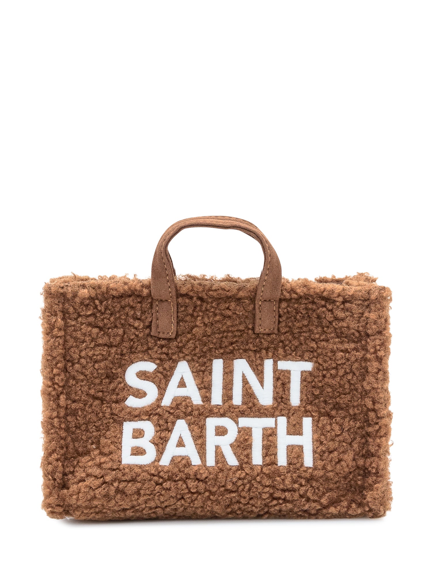 Borsa Saint Barth Phone Bag in tessuto teddy con doppio manico e logo ricamato frontale. Morbida e compatta, ideale per portare smartphone e piccoli oggetti con stile.