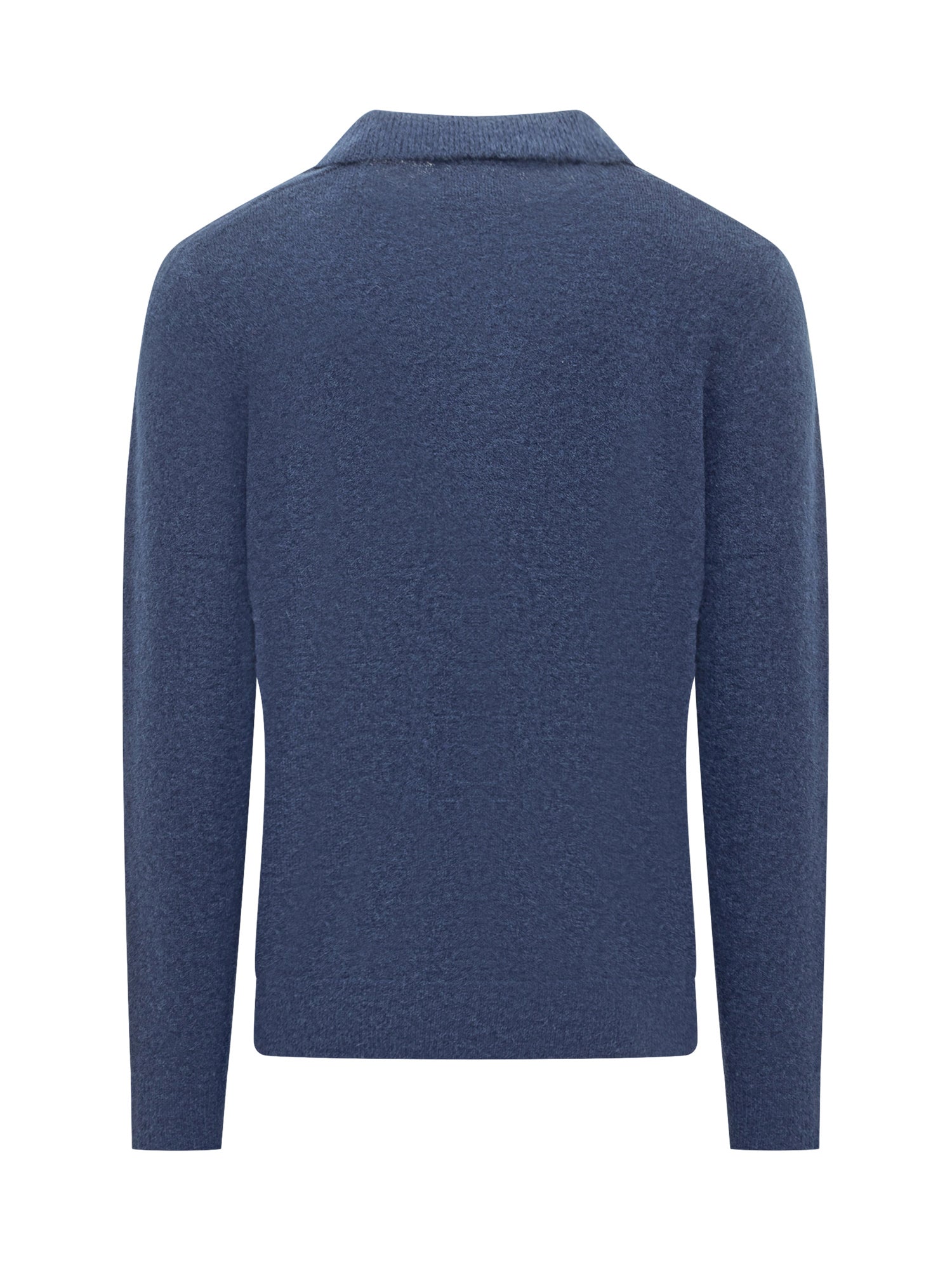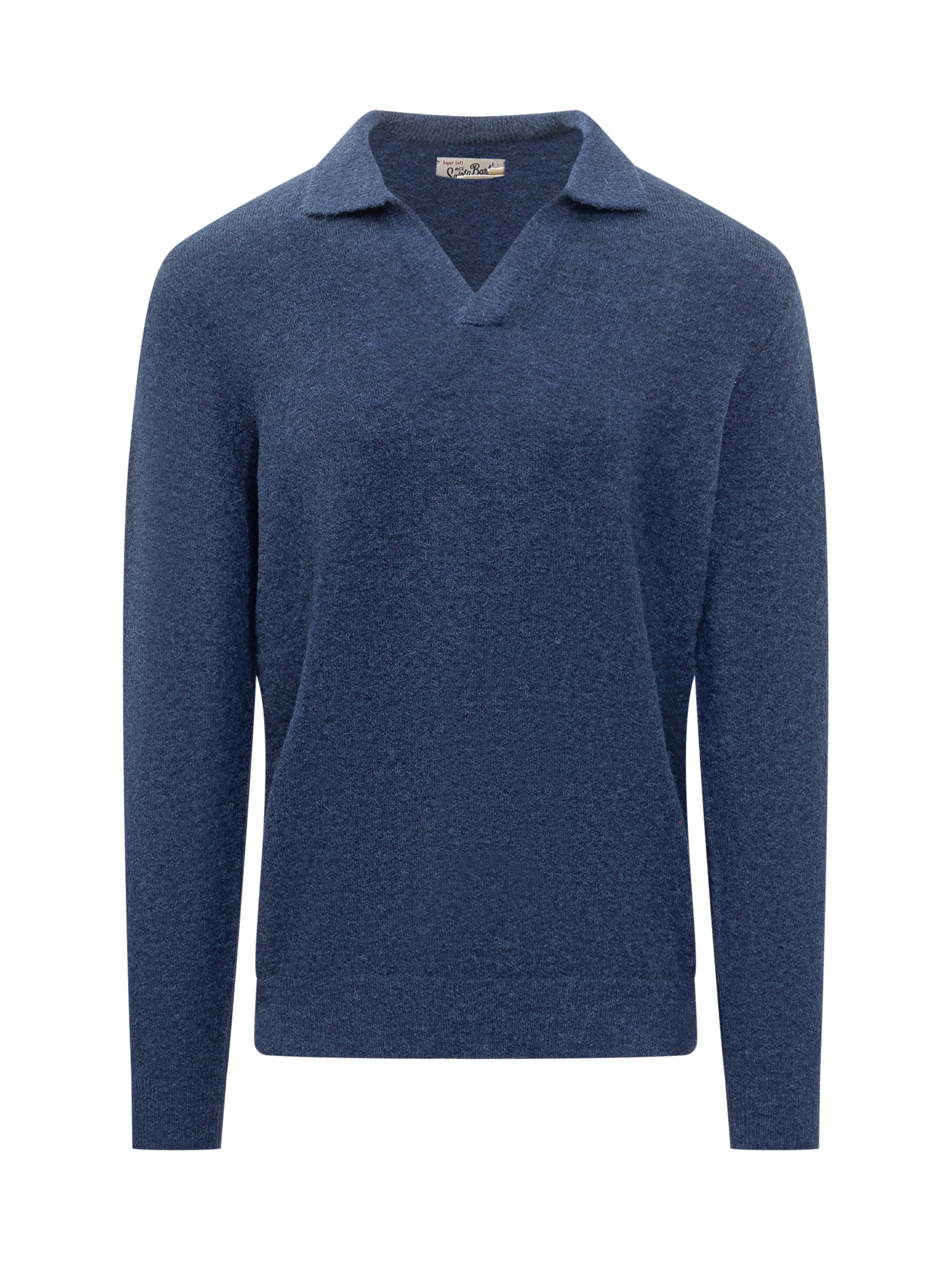 Maglione Saint Barth blu in lana con colletto e scollo a V.