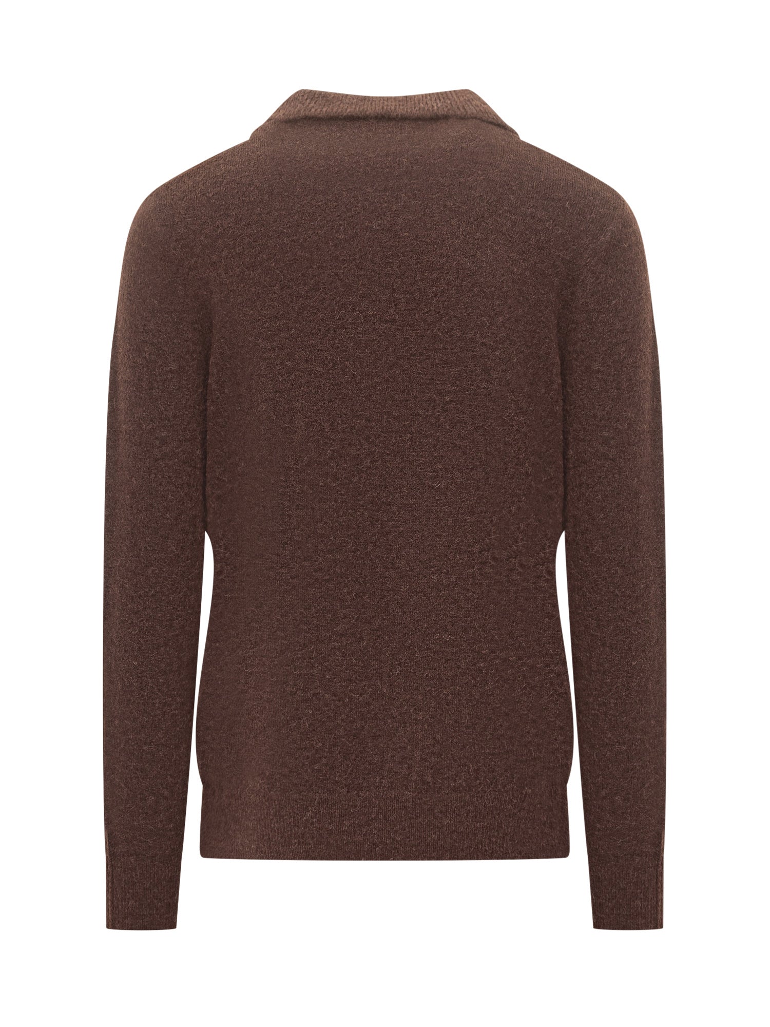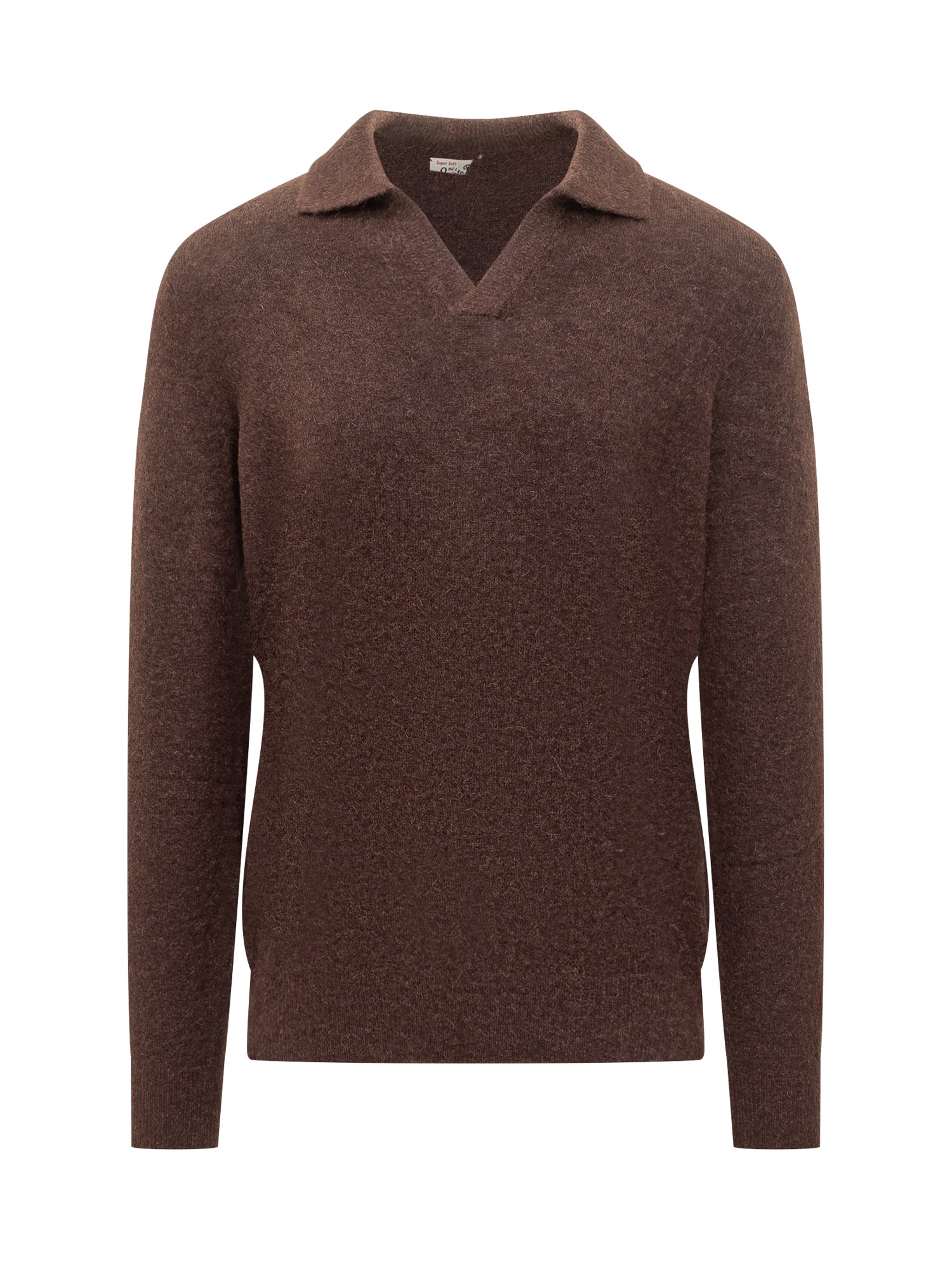 Maglione Saint Barth marrone in lana con colletto e scollo a V.