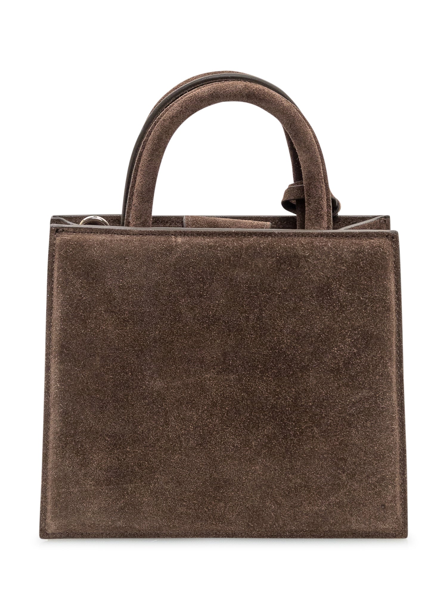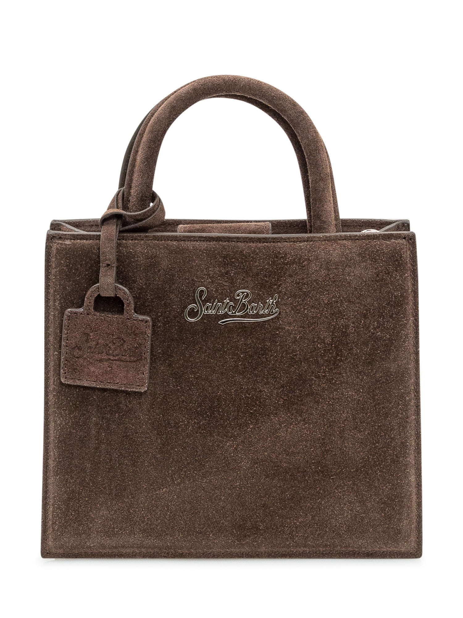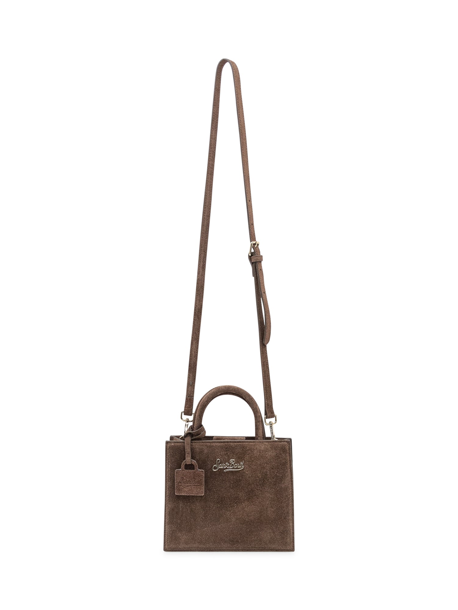 Borsa Shop Bag Midi MC2 Saint Barth in pelle scamosciata marrone con manici rigidi e logo frontale.