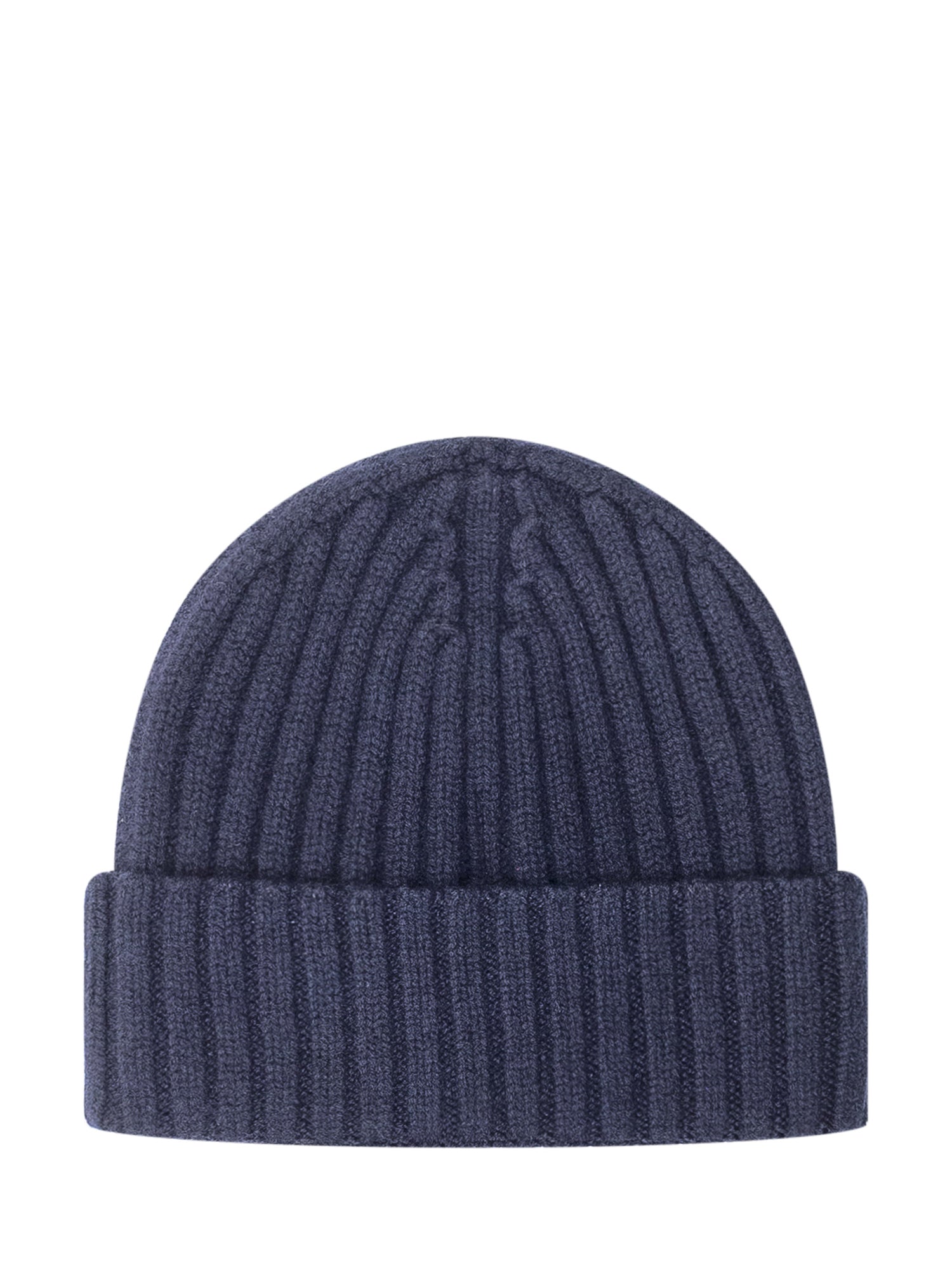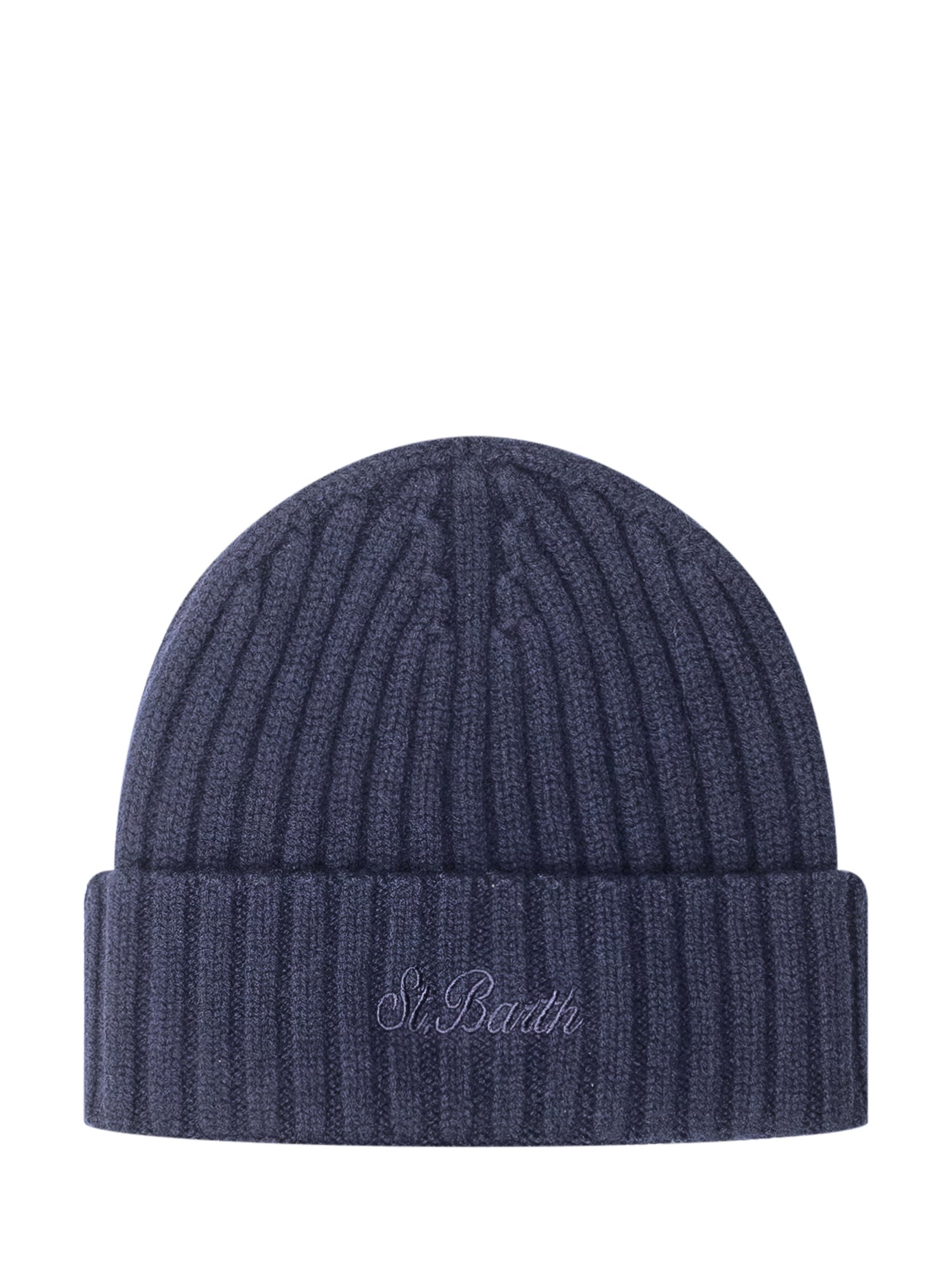 Cappello MC2 Saint Barth Wengen Wool in lana blu a coste con risvolto e logo ricamato tono su tono.