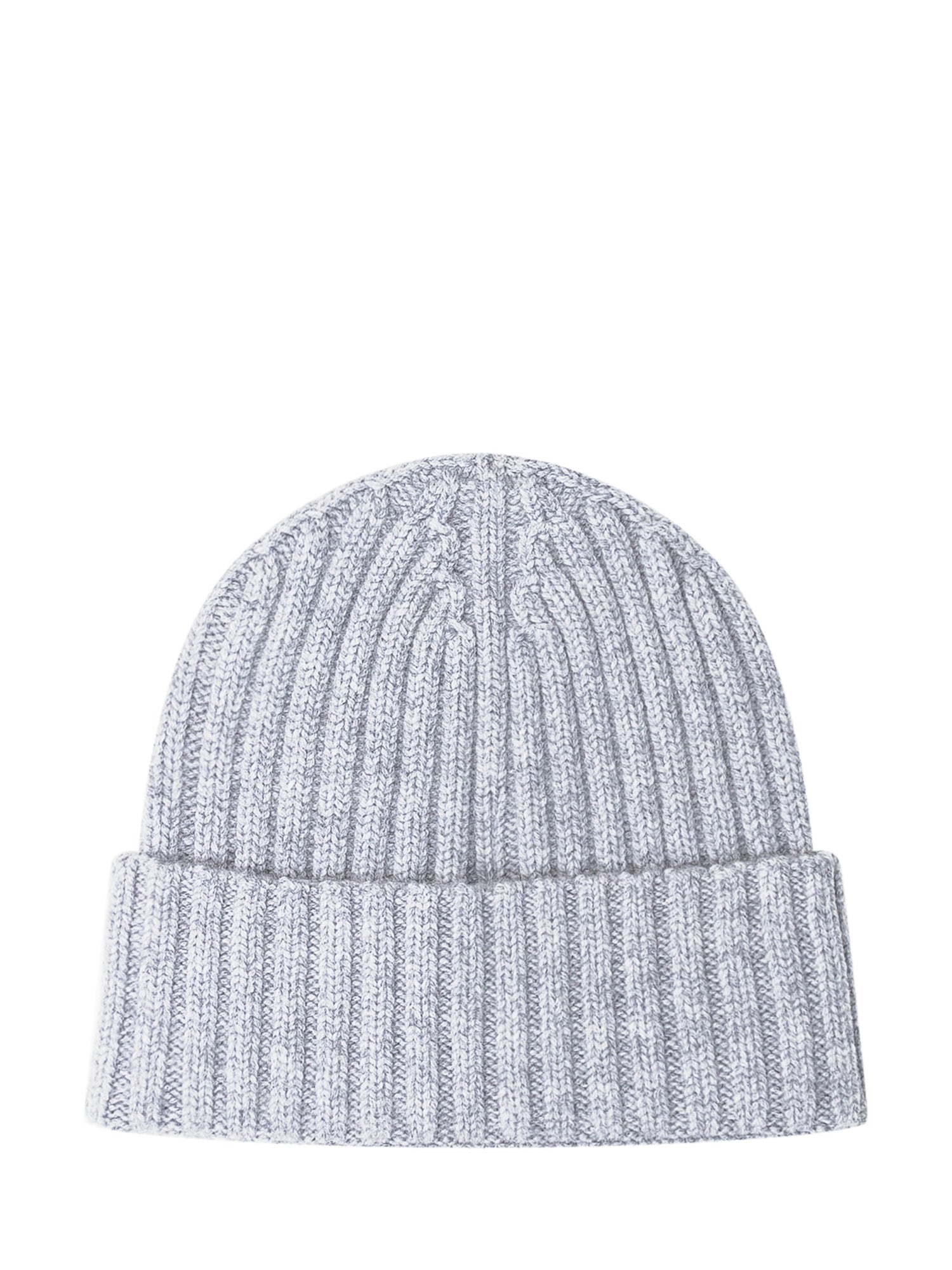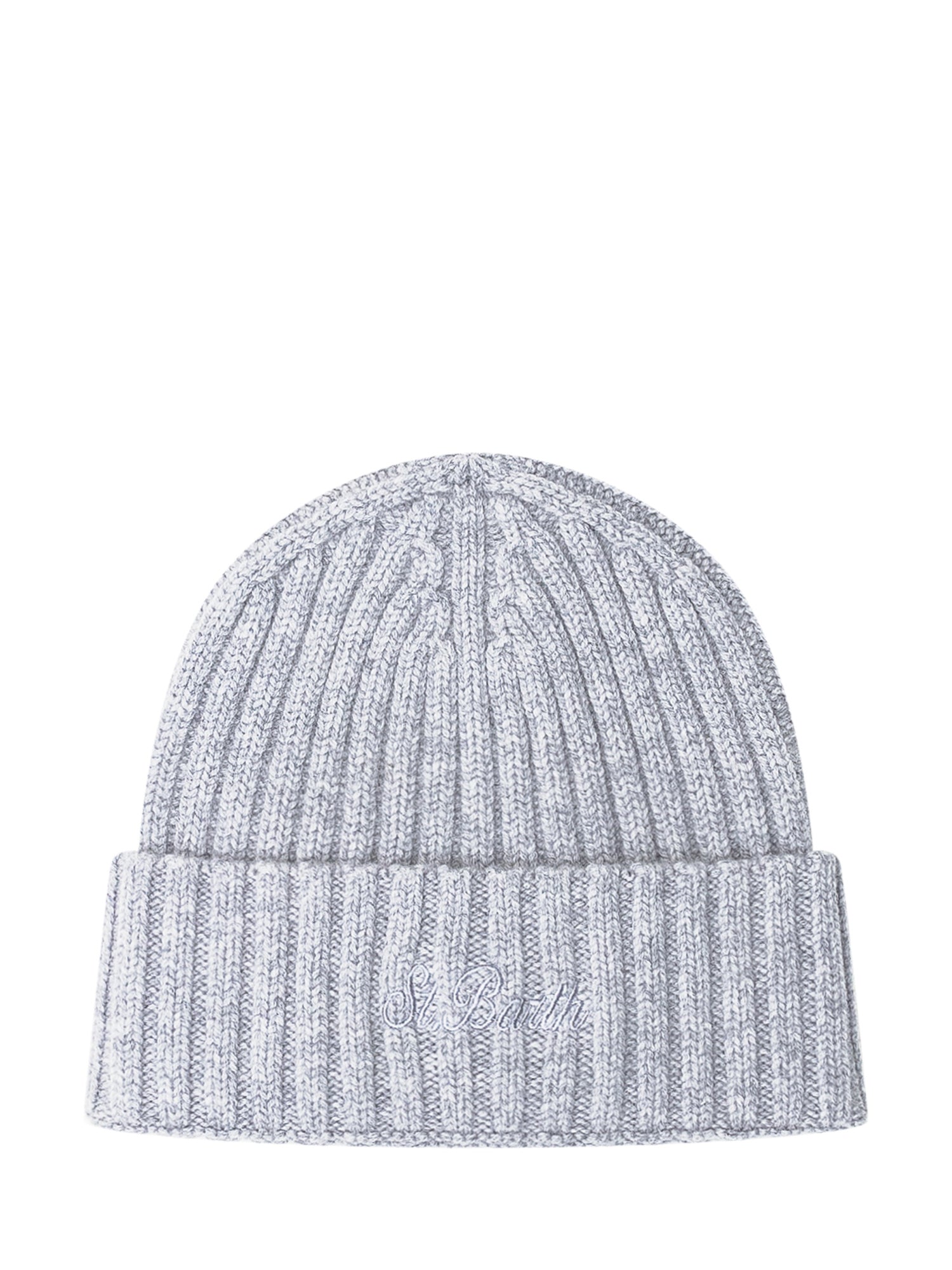 Cappello MC2 Saint Barth Wengen Wool in lana grigia a coste con risvolto e logo ricamato.