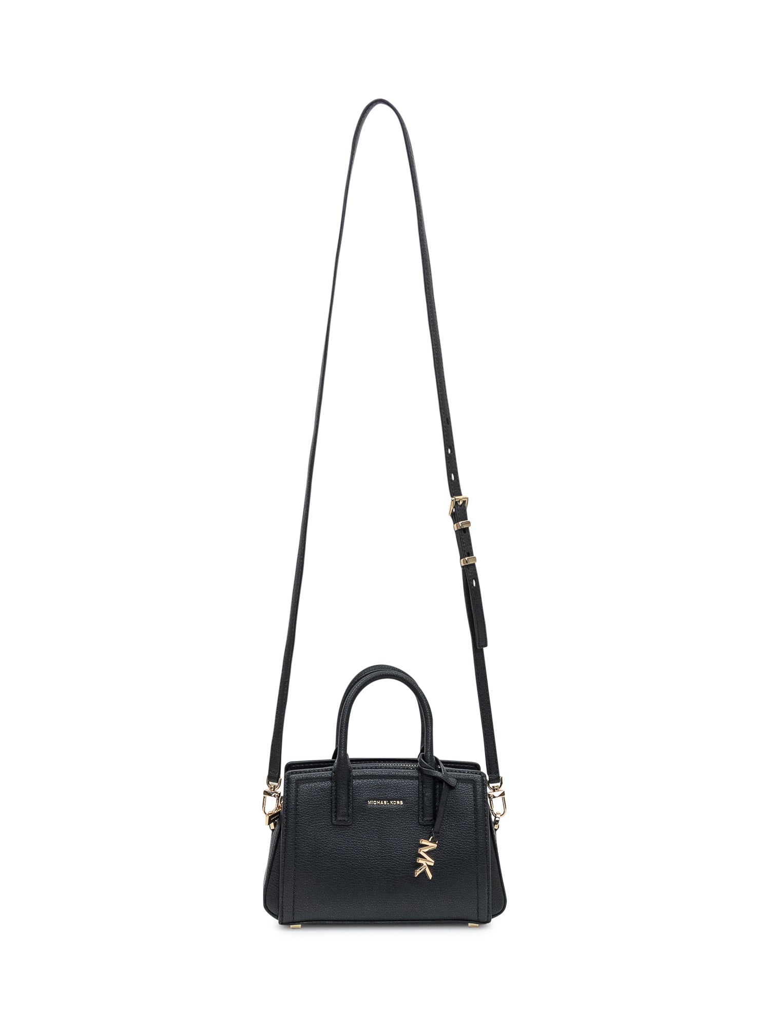Borsa a mano Michael Kors in pelle martellata nera con doppi manici, tracolla rimovibile e charm dorato MK.