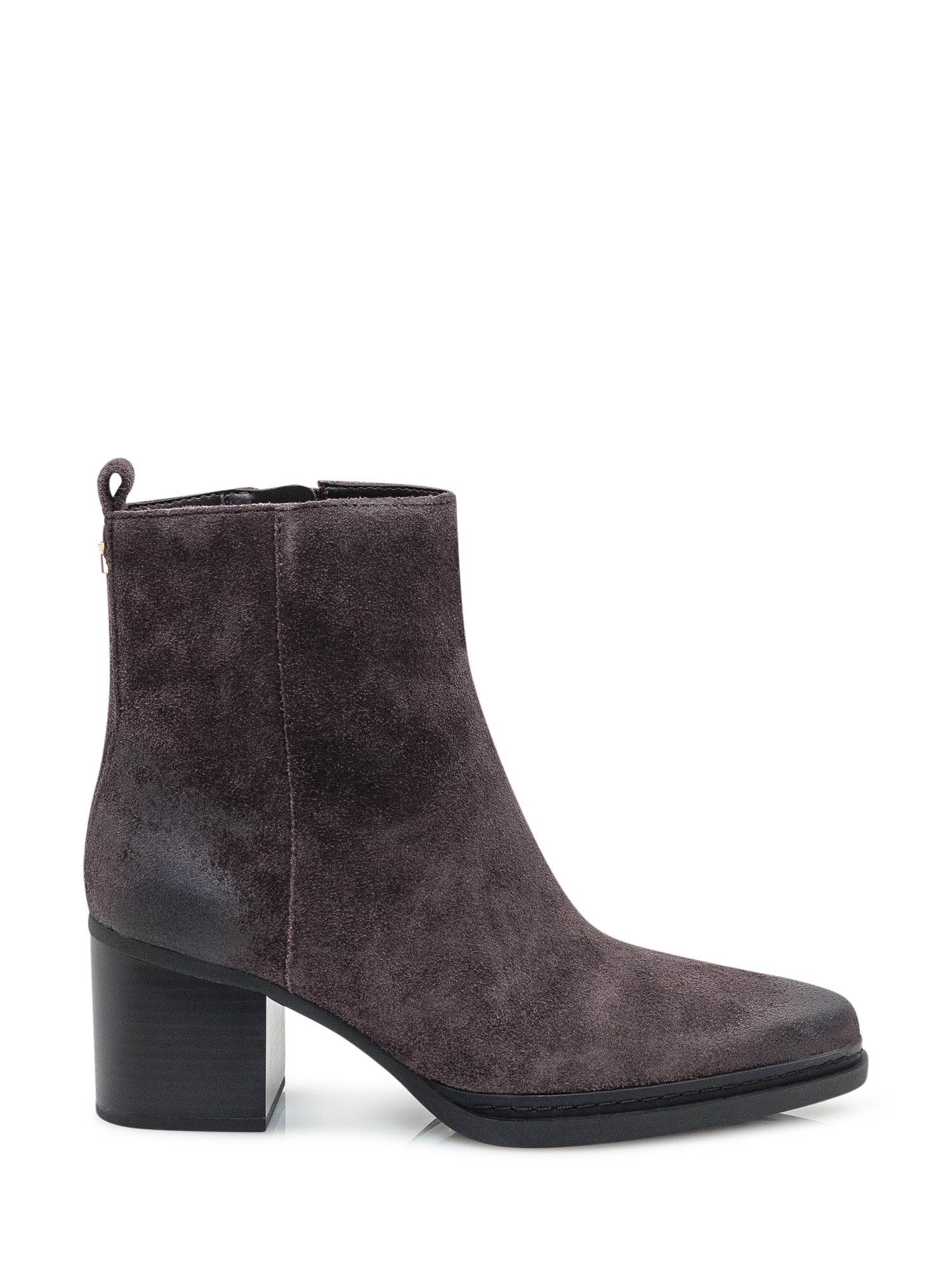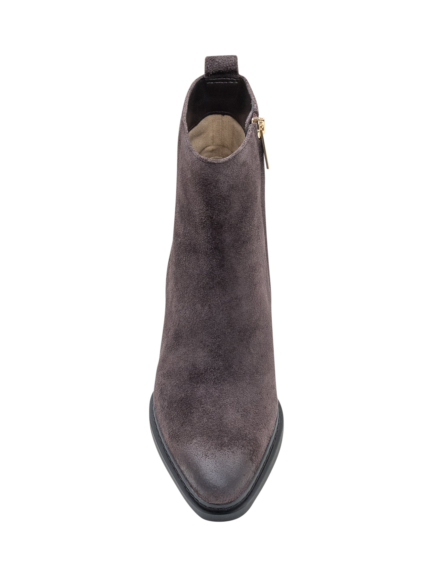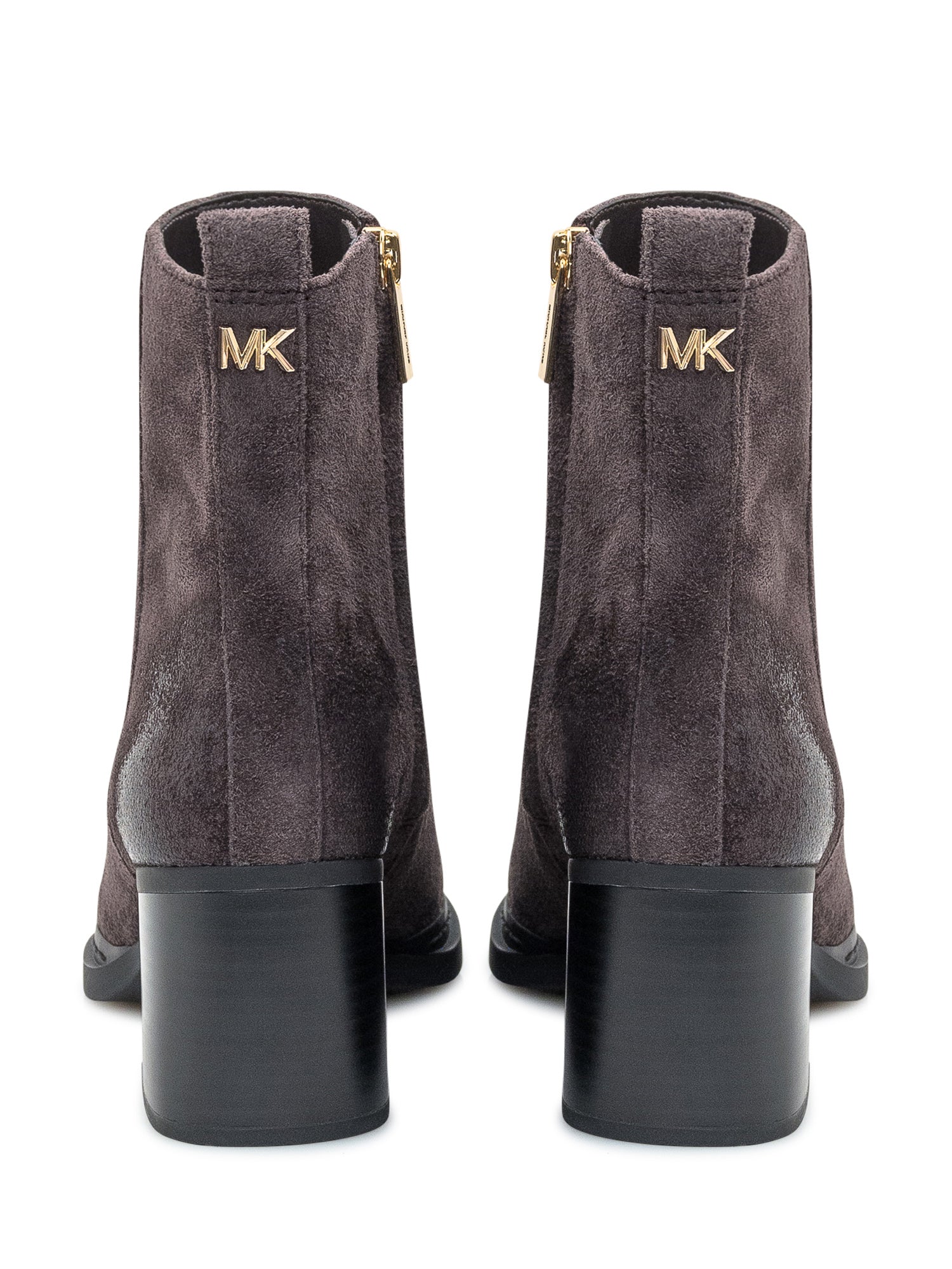 Stivaletto Michael Kors Lex in morbido camoscio marrone con punta affusolata e tacco medio squadrato.