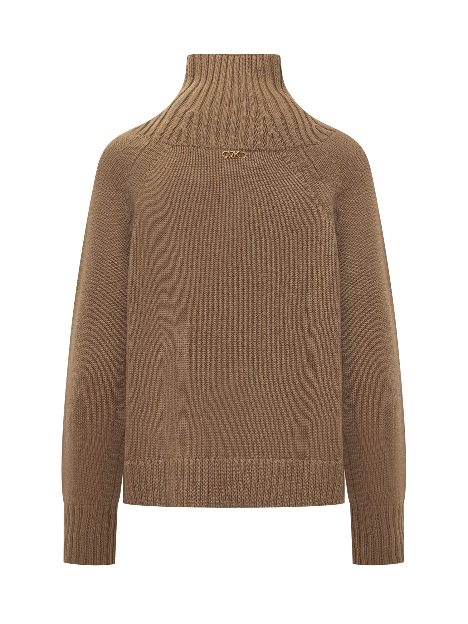 Maglione Michael Kors beige con collo alto a coste e lavorazione in maglia compatta.
