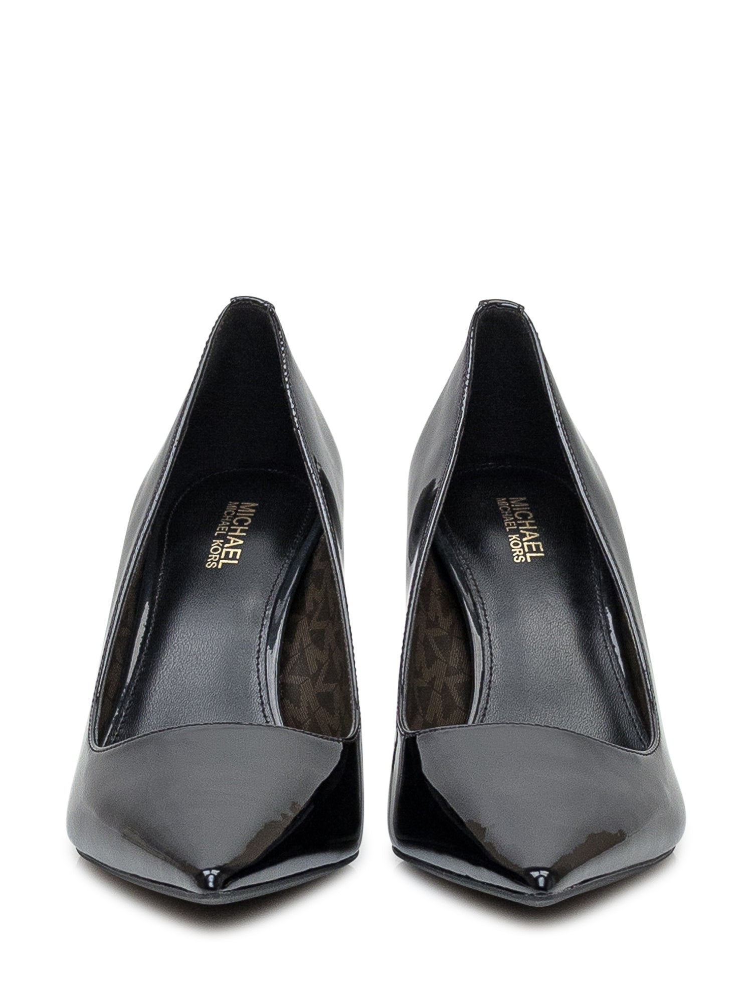 Scarpa con tacco nera. Effetto vernice. Logo sul retro.
