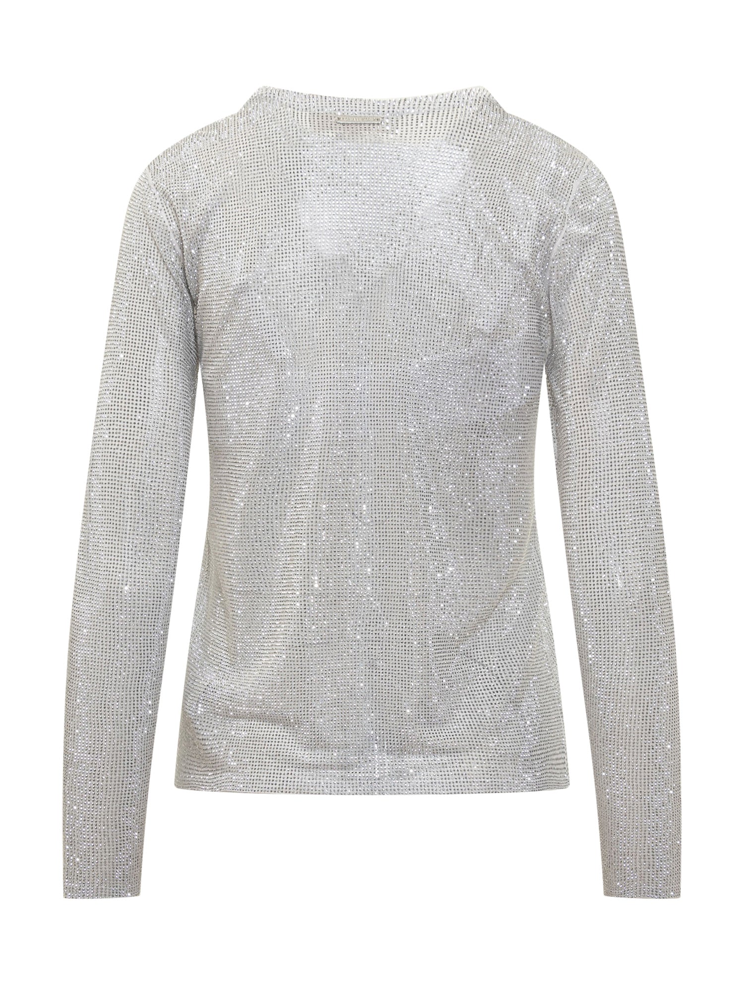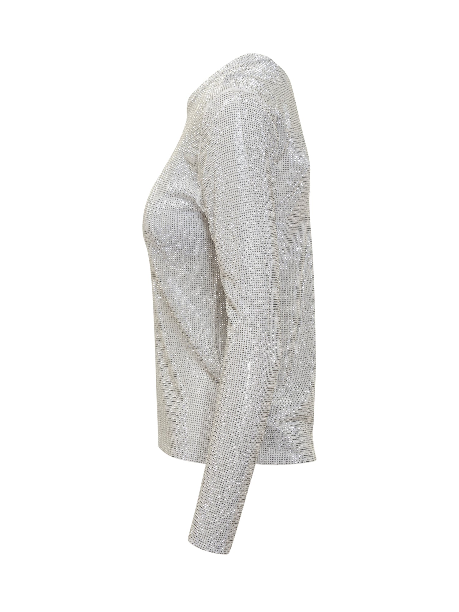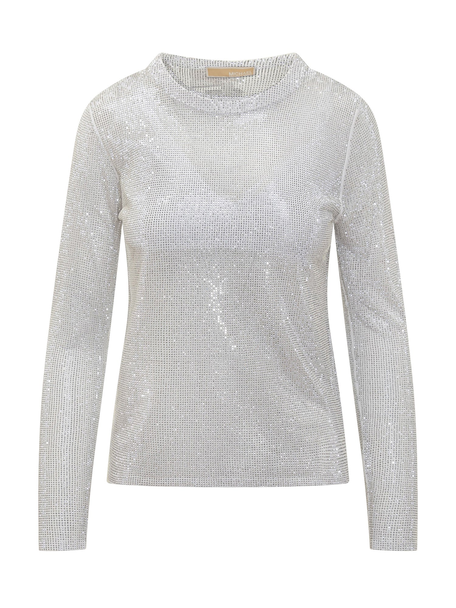 Top Michael Kors a maniche lunghe decorato con micro paillettes argentate. Lucente e sofisticato.