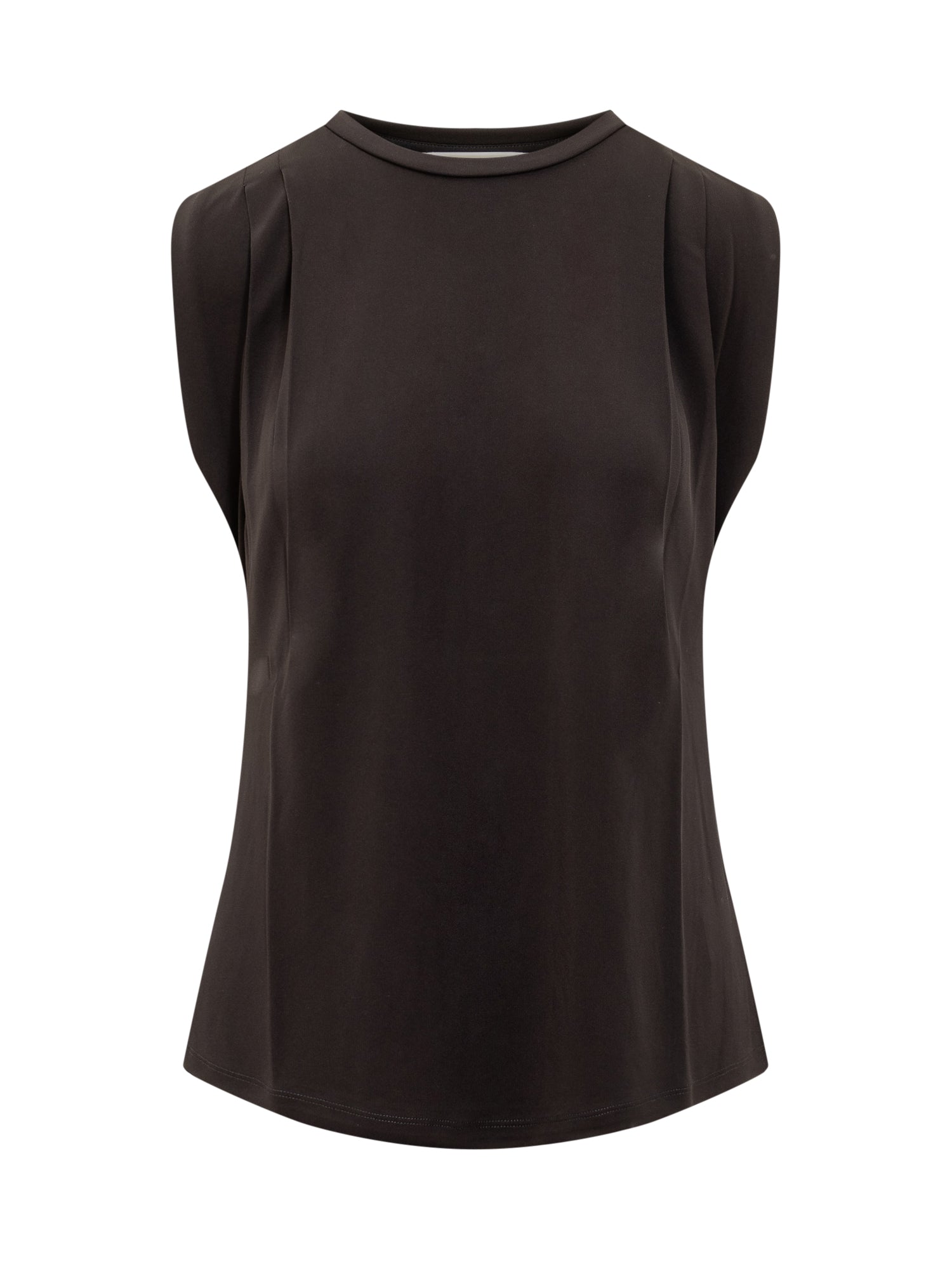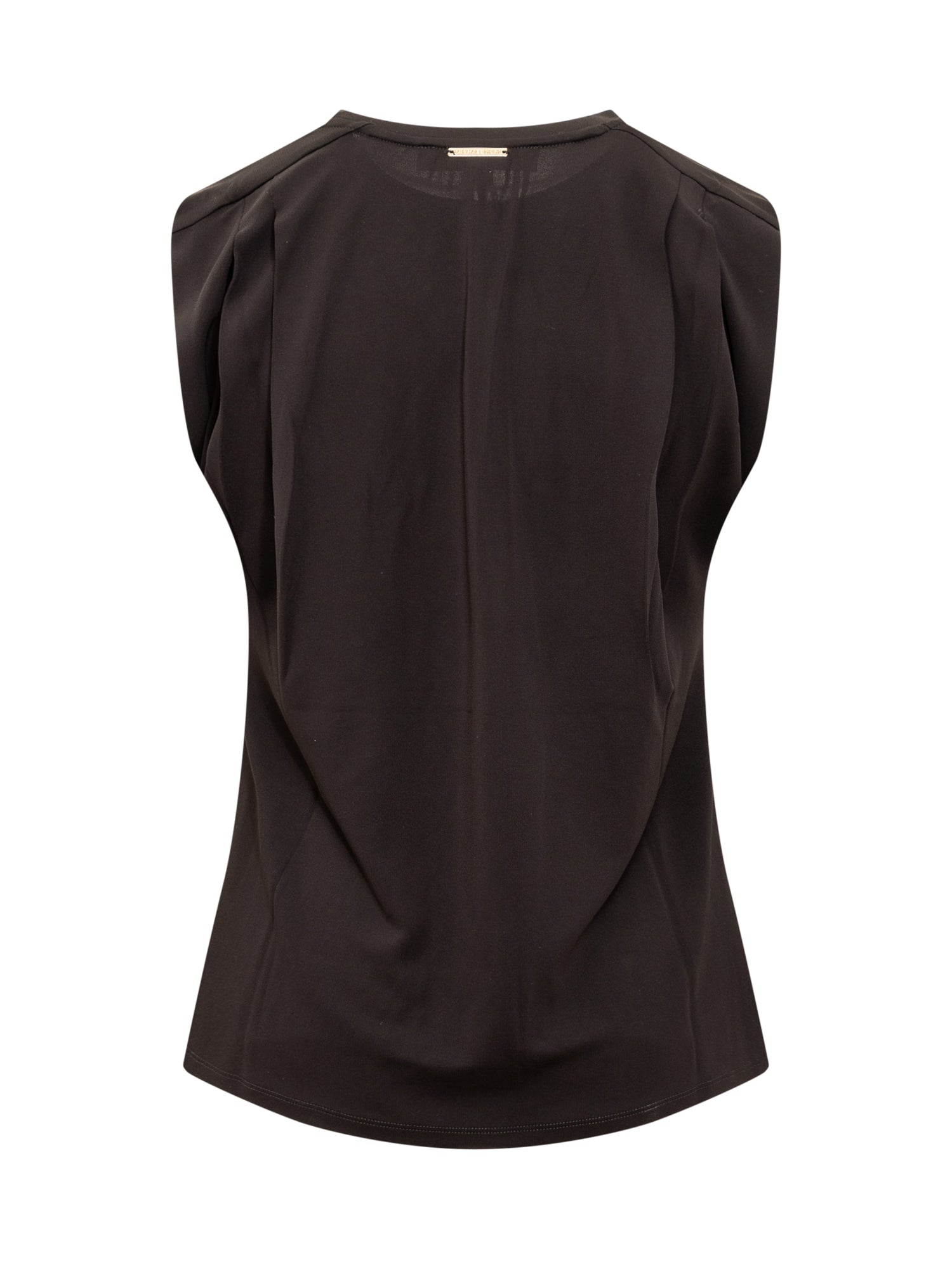 T-shirt nera smanicata. Girocollo. Logo sul retro del collo.