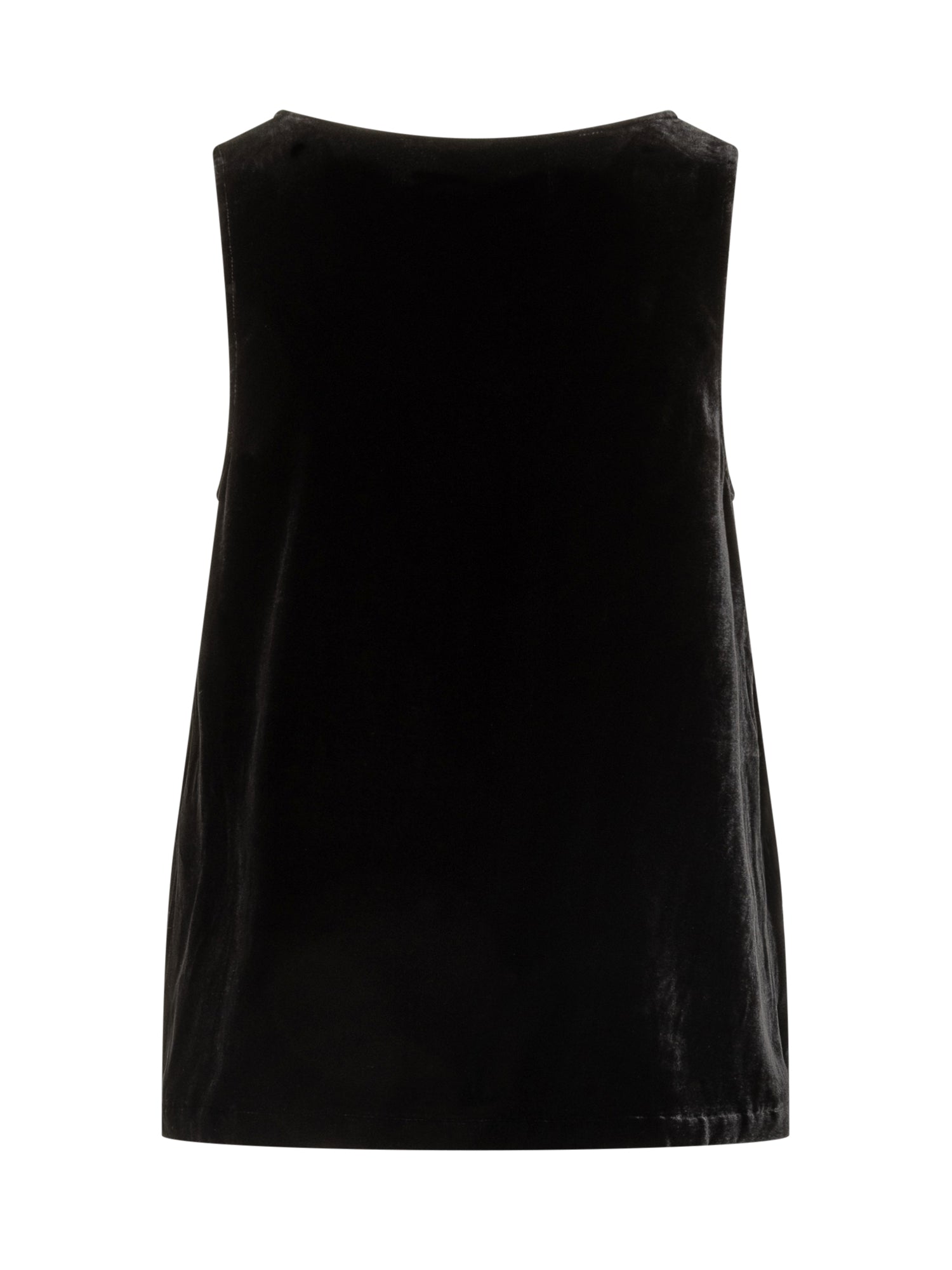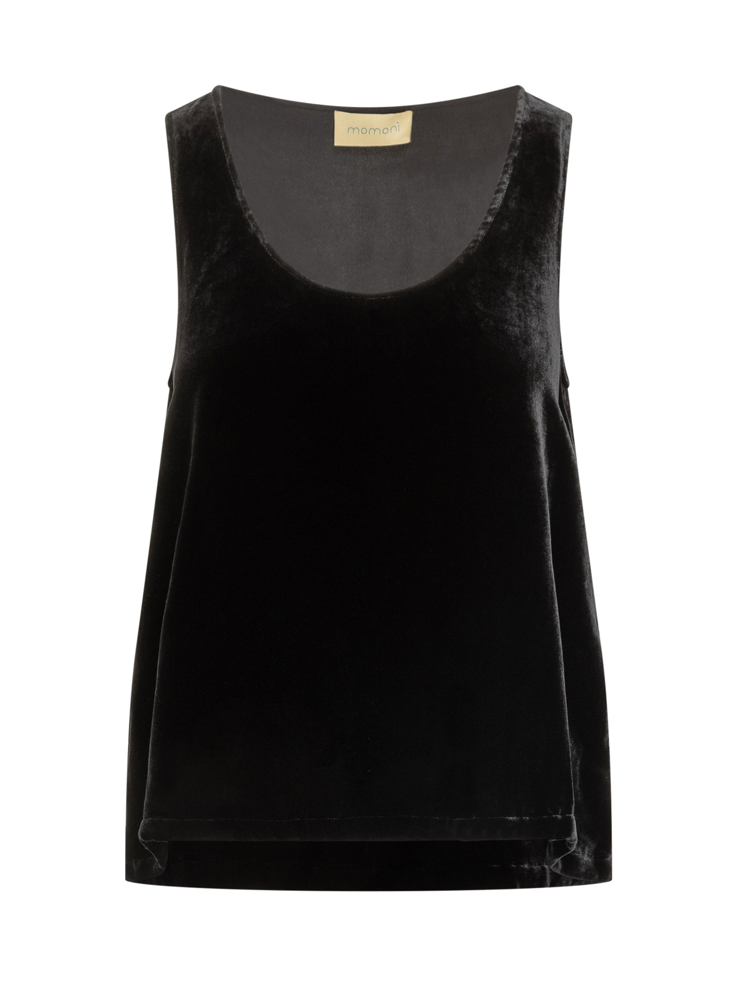 Top Monom\u00EC in morbido velluto nero, con linea fluida e scollo rotondo. Un capo elegante e versatile, perfetto da indossare sotto blazer.