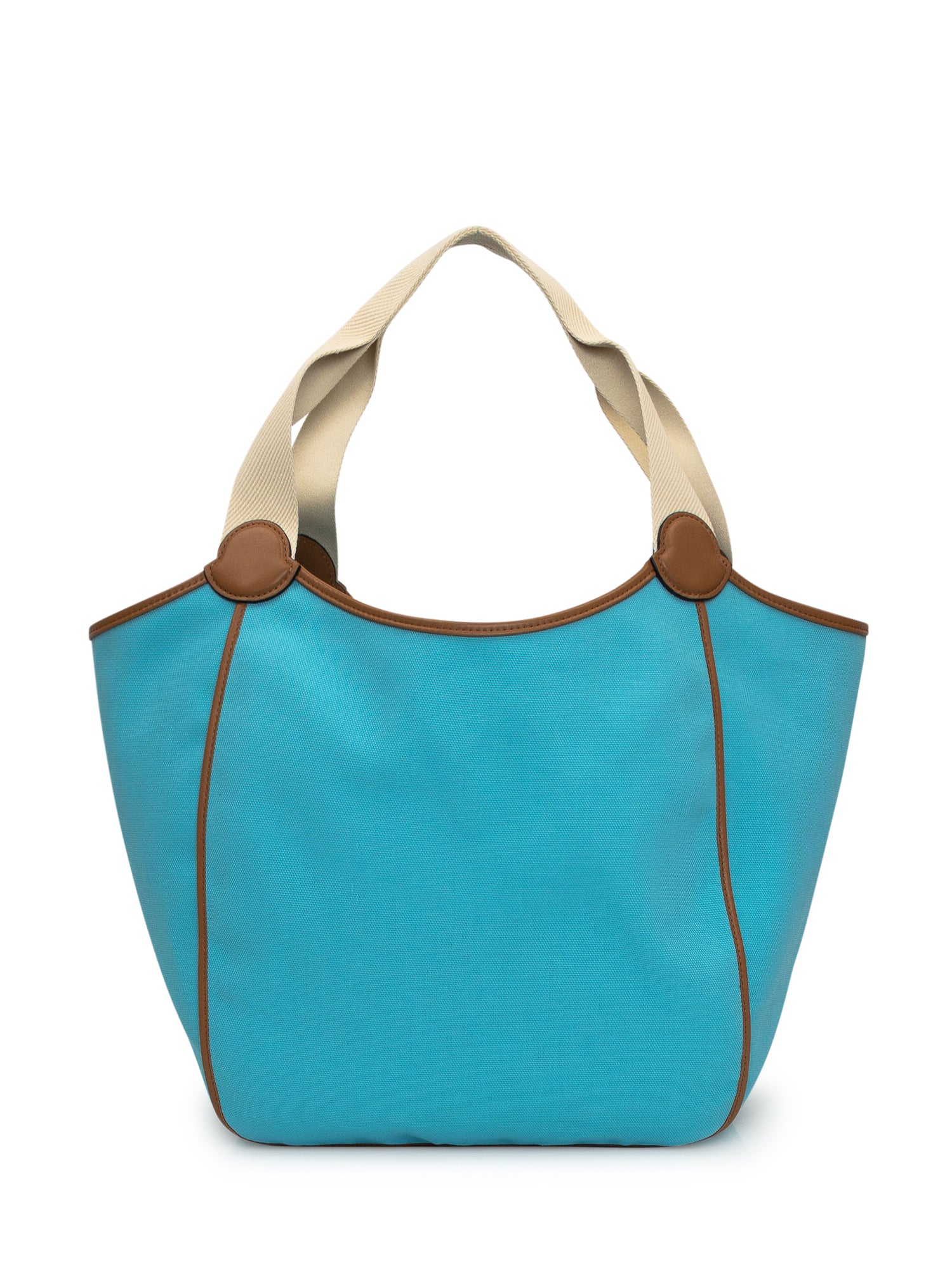 Borsa tote azzurra. Due manici. Pochette interna. Logo patch sul davanti.