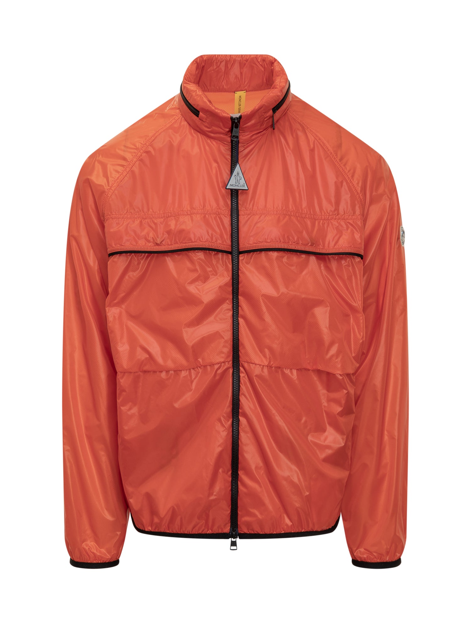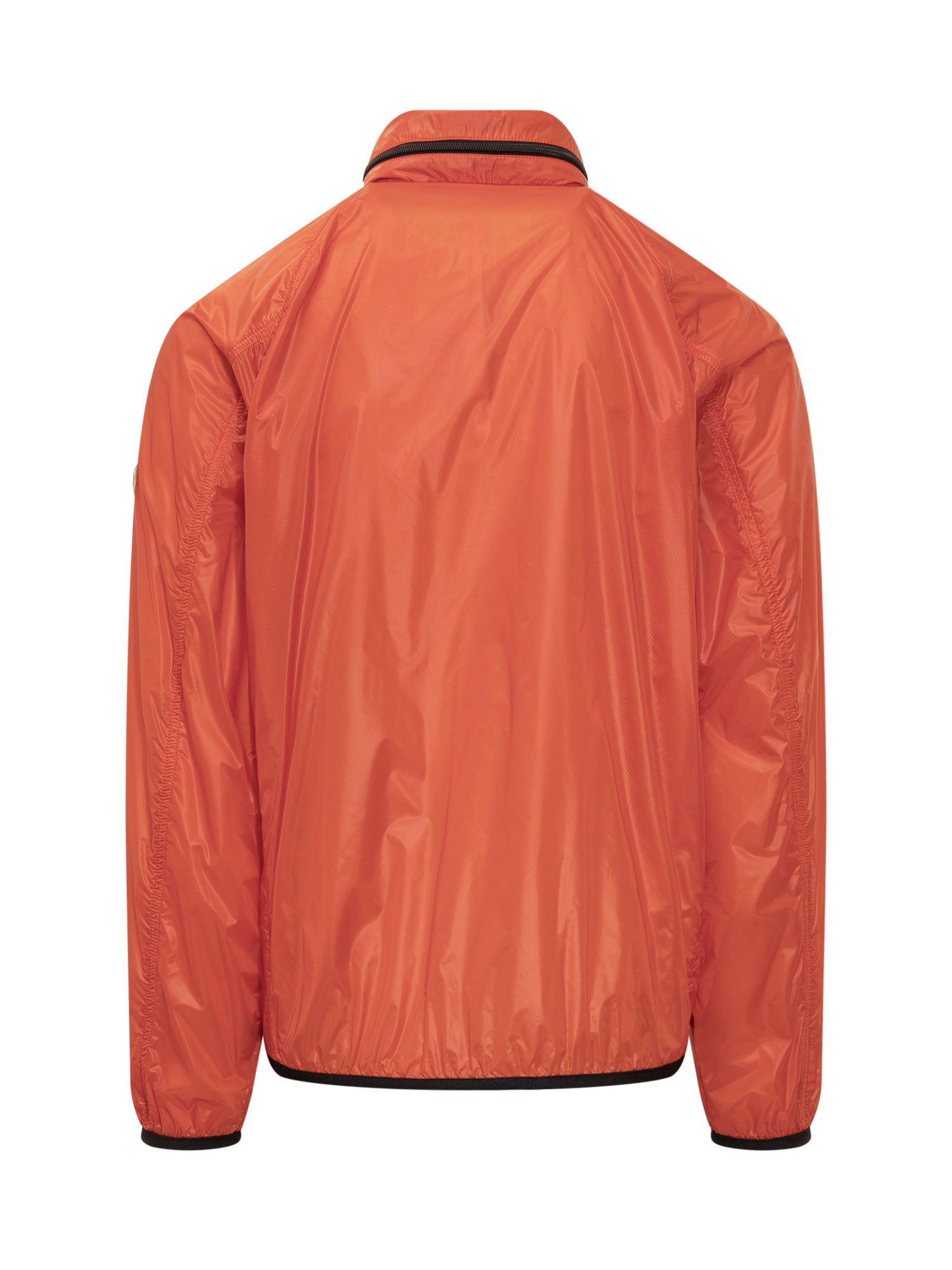 Giacca arancione. Collo alto. Tasche laterali. Chiusura con zip. Logo applicato su manica. Cappuccio estraibile.