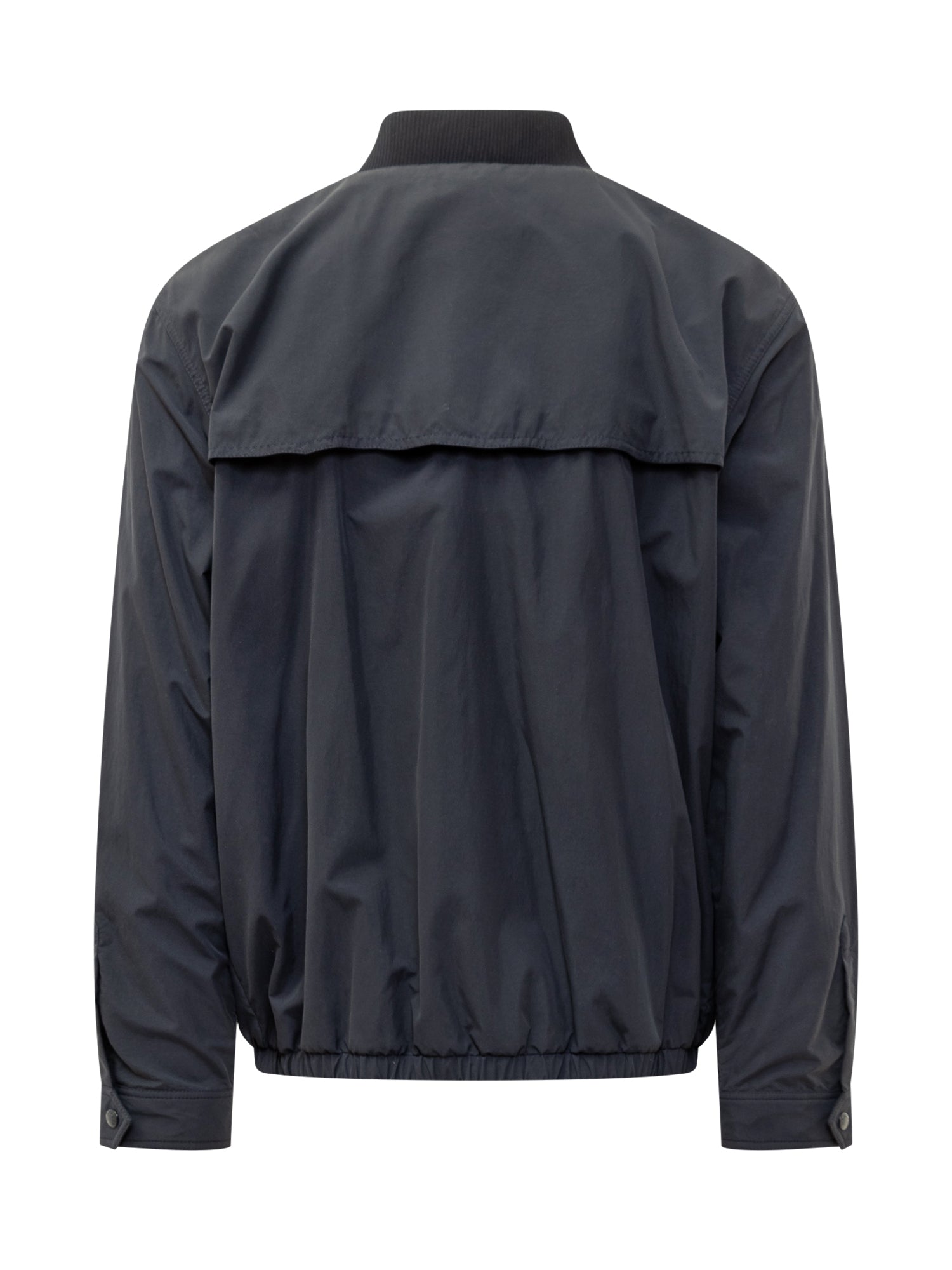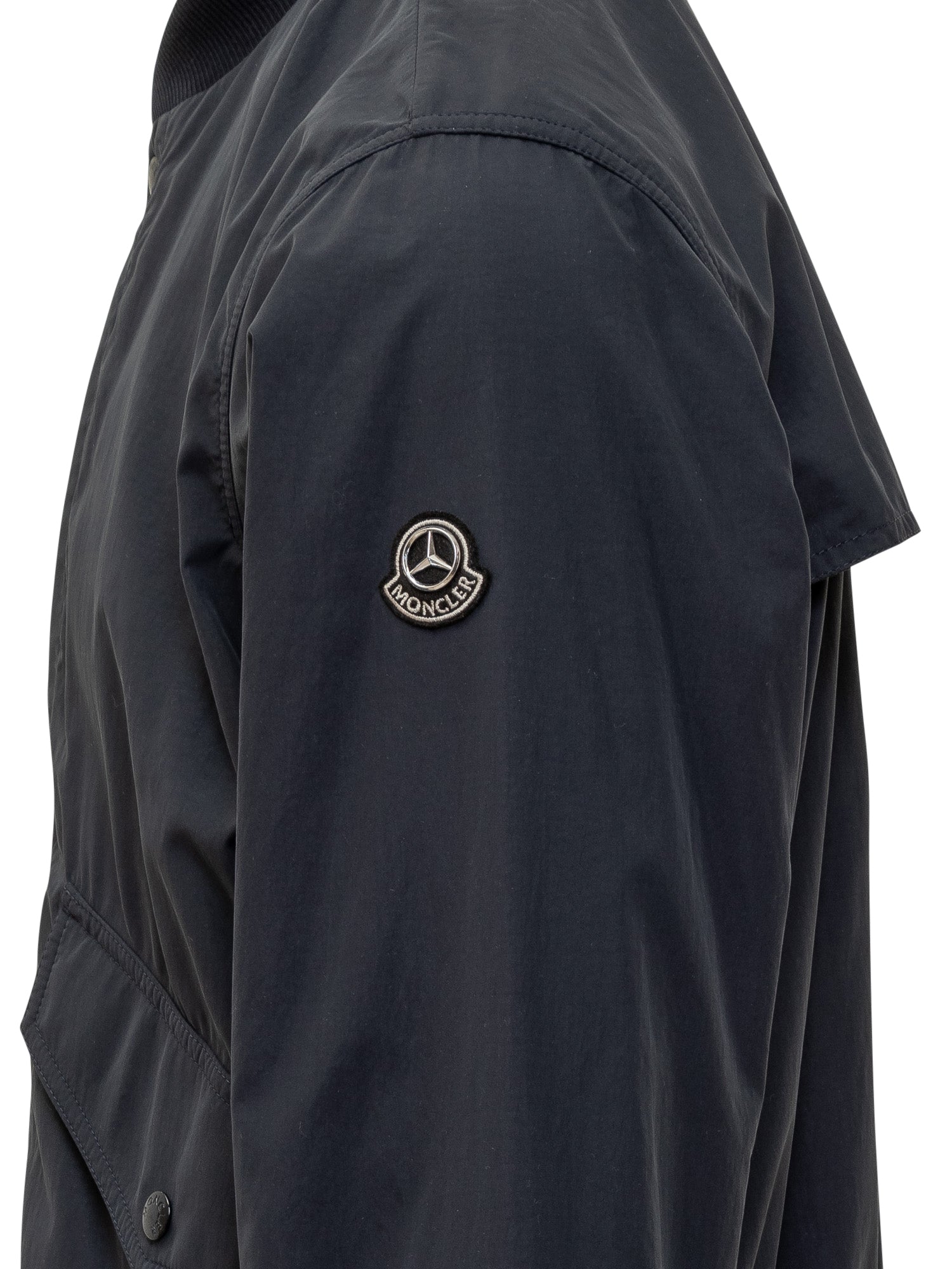 Giacca blu. Colletto alto. Fondo elasticizzato. Tasche con patta e bottone. Polsi con bottone. Chiusura con bottoni. Logo applicato su manica.