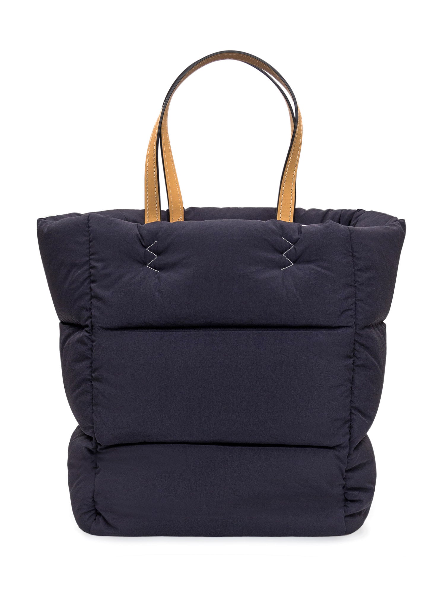 Borsa blu imbottita. Due manici. Chiusura con lacci. Tasca interna. Logo patch sul davanti.