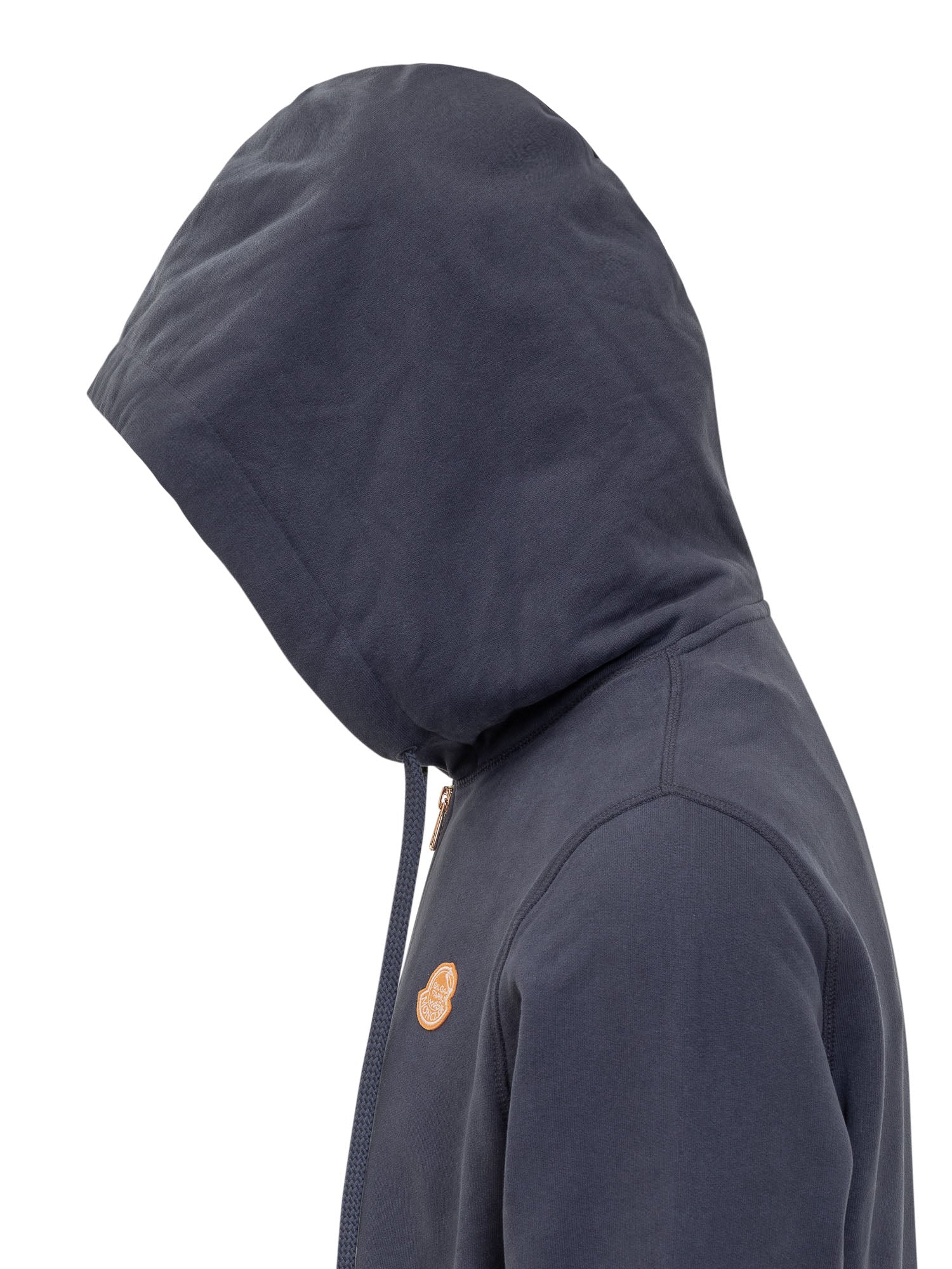 Cappuccio con coulisse. Chiusura con zip. Orlo e polsi a costine.