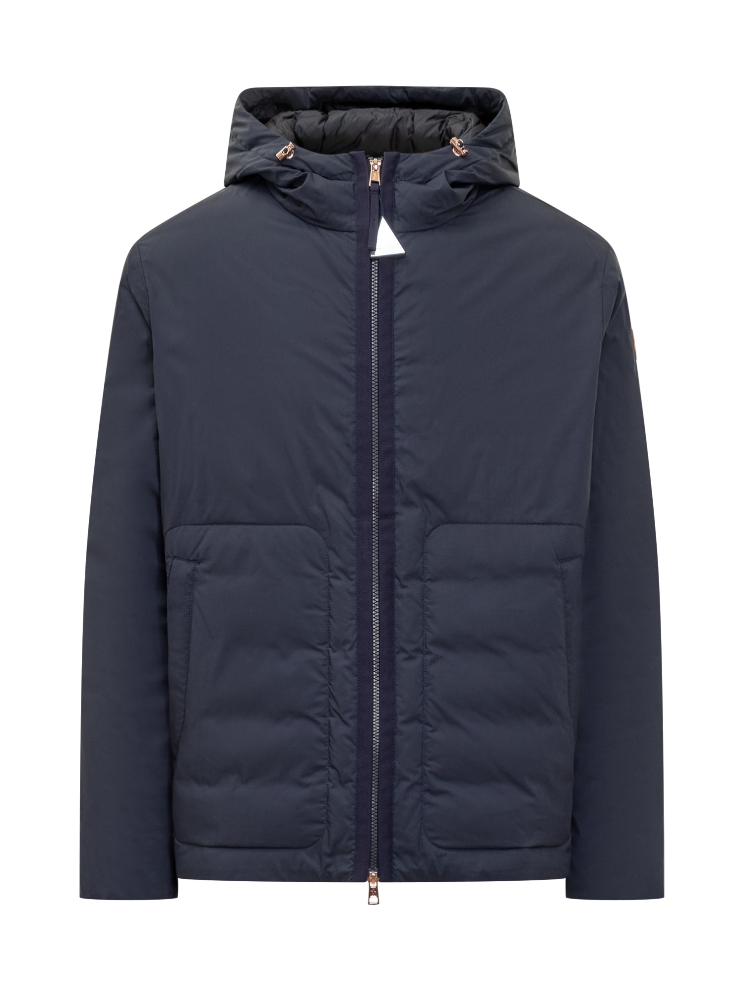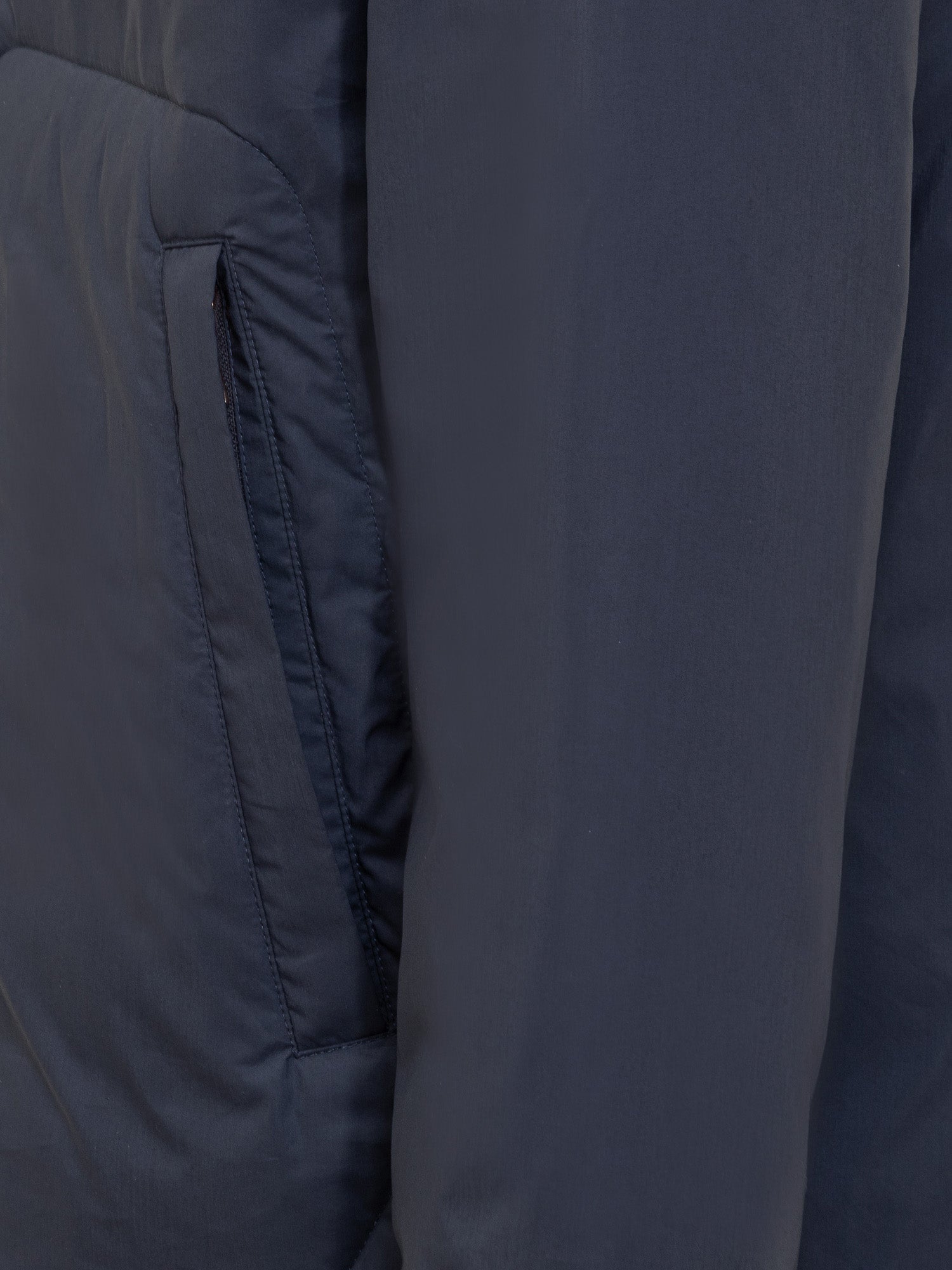 Giubbino imbottito con cappuccio. Cappuccio con coulisse. Chiusura con zip. Tasche con patta cucita e zip. Patch logo sulla manica.