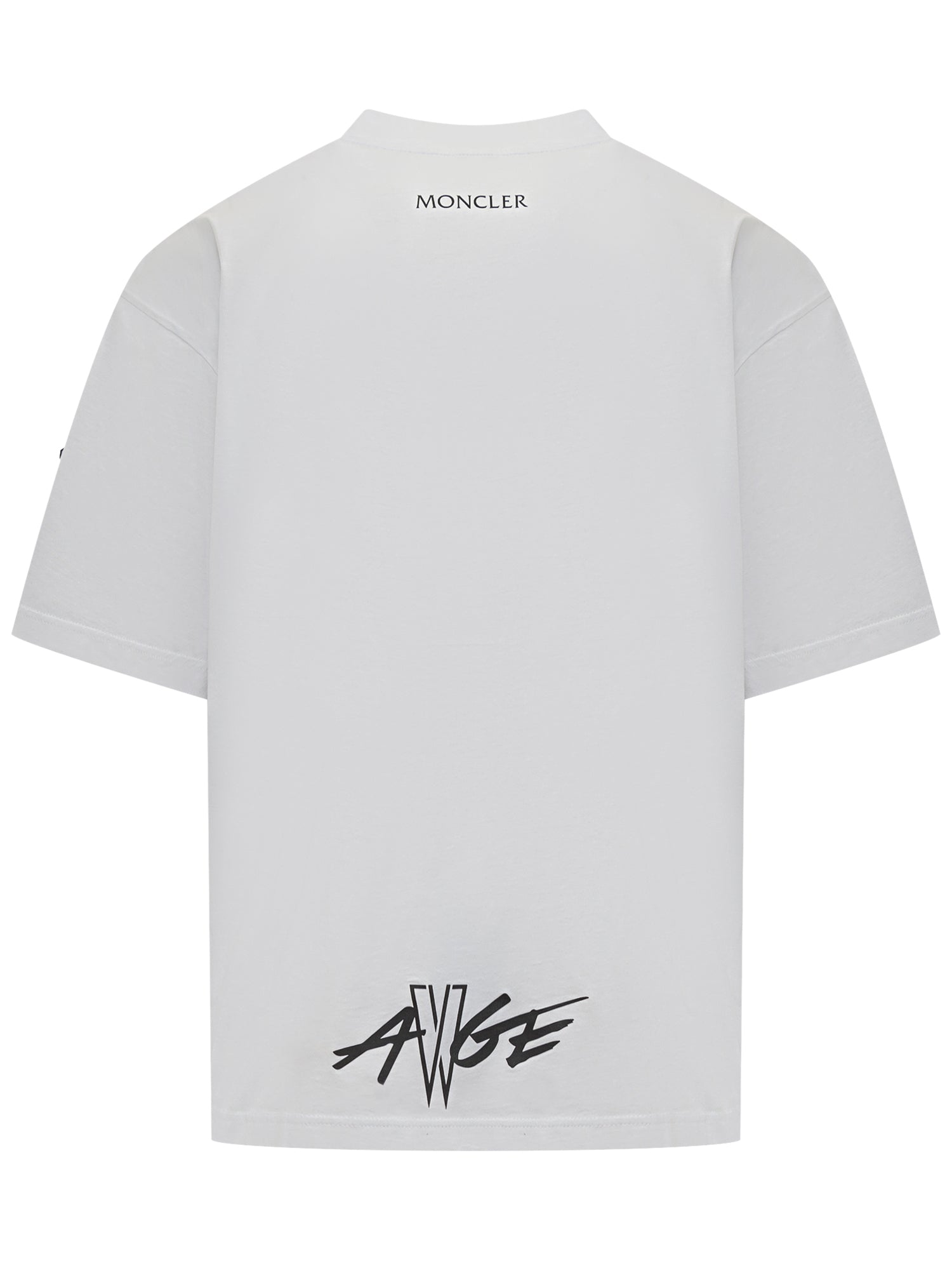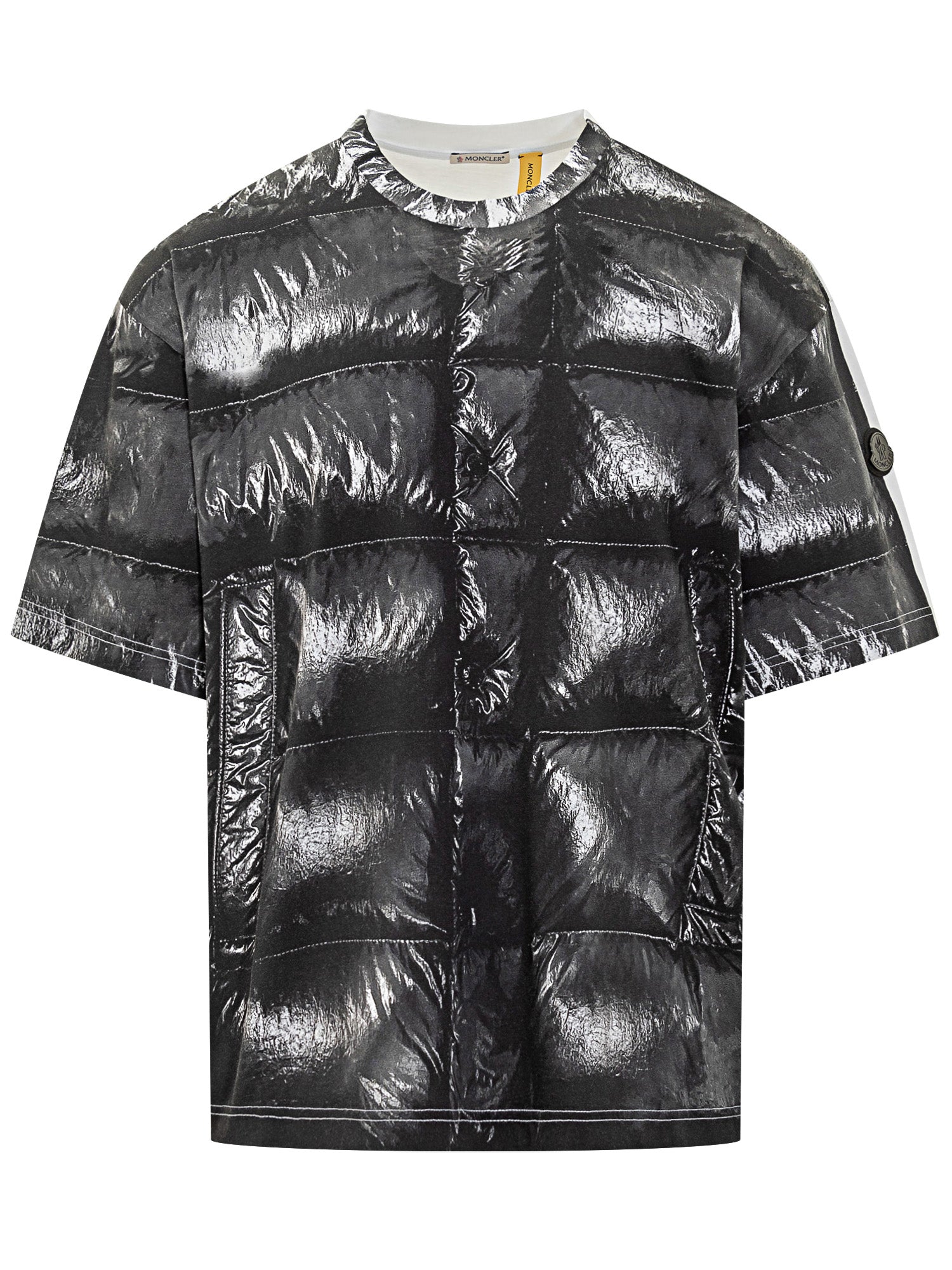 T-shirt Moncler Genius x Asap Rocky in cotone con stampa che richiama l effetto trapuntato dei piumini. Retro bianco con logo Avge e Moncler a contrasto. Linea moderna e casual.