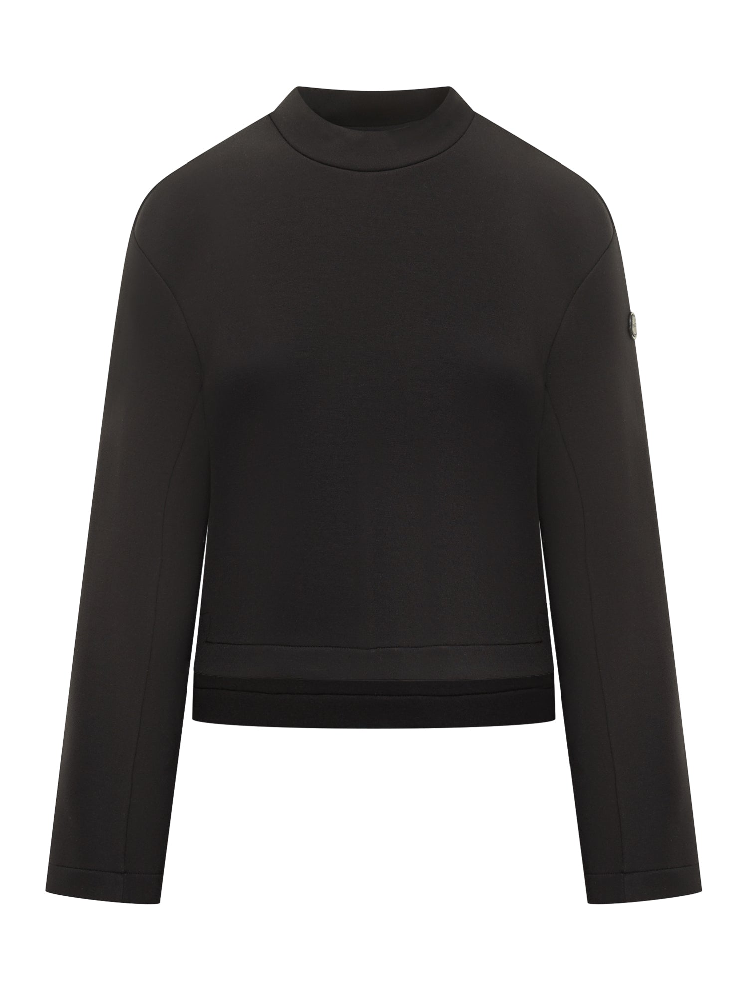 La maglia nera a maniche lunghe 4 Moncler Edward Enninful unisce semplicità ed eleganza. Il design essenziale con collo rotondo dona un tocco raffinato a look casual e sofisticati.