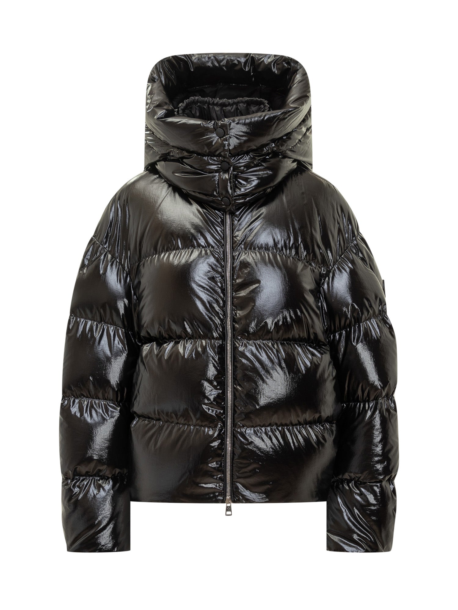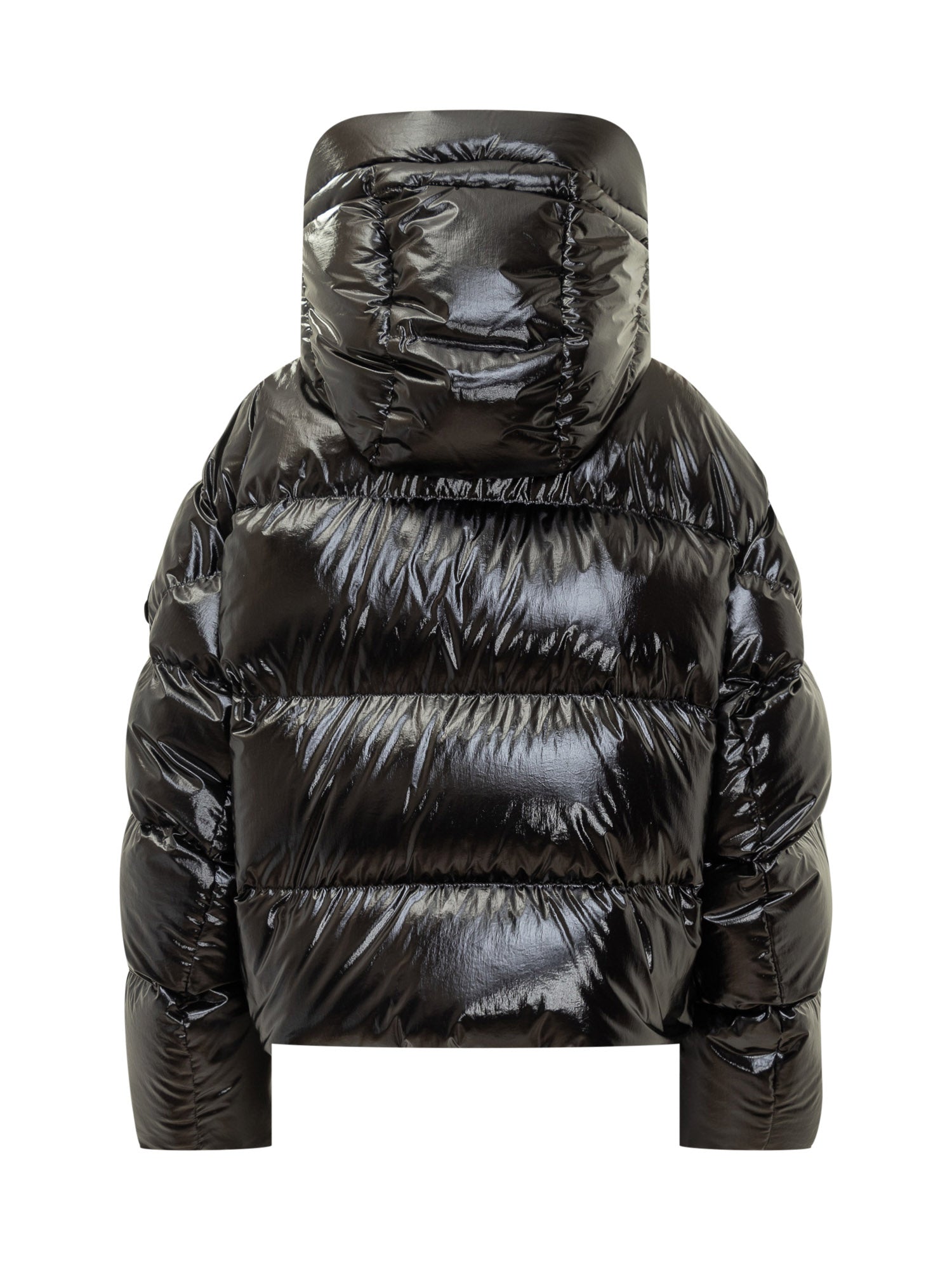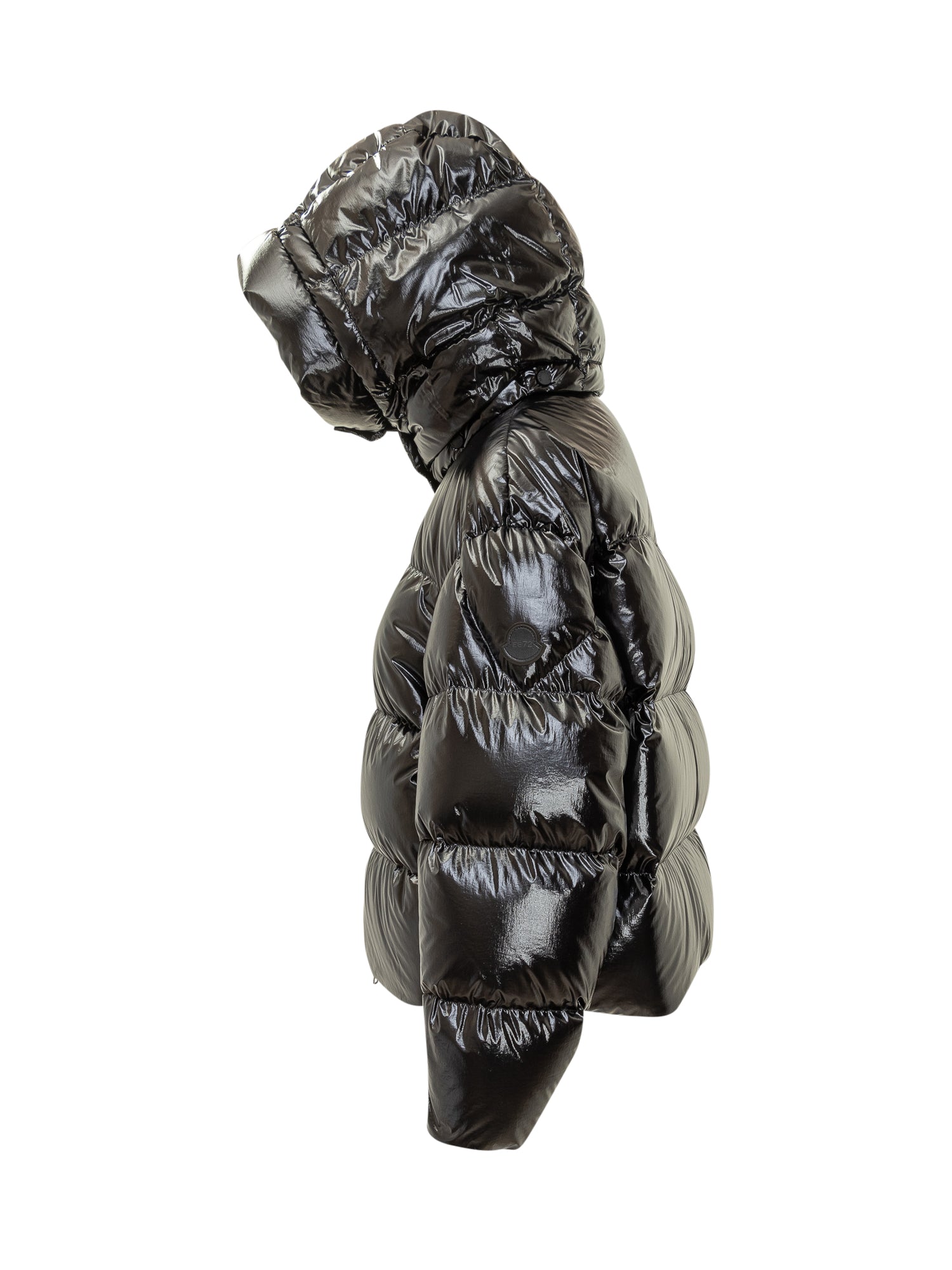 Il piumino lucido 4 Moncler Edward Enninful combina protezione e stile con finitura brillante e silhouette moderna.