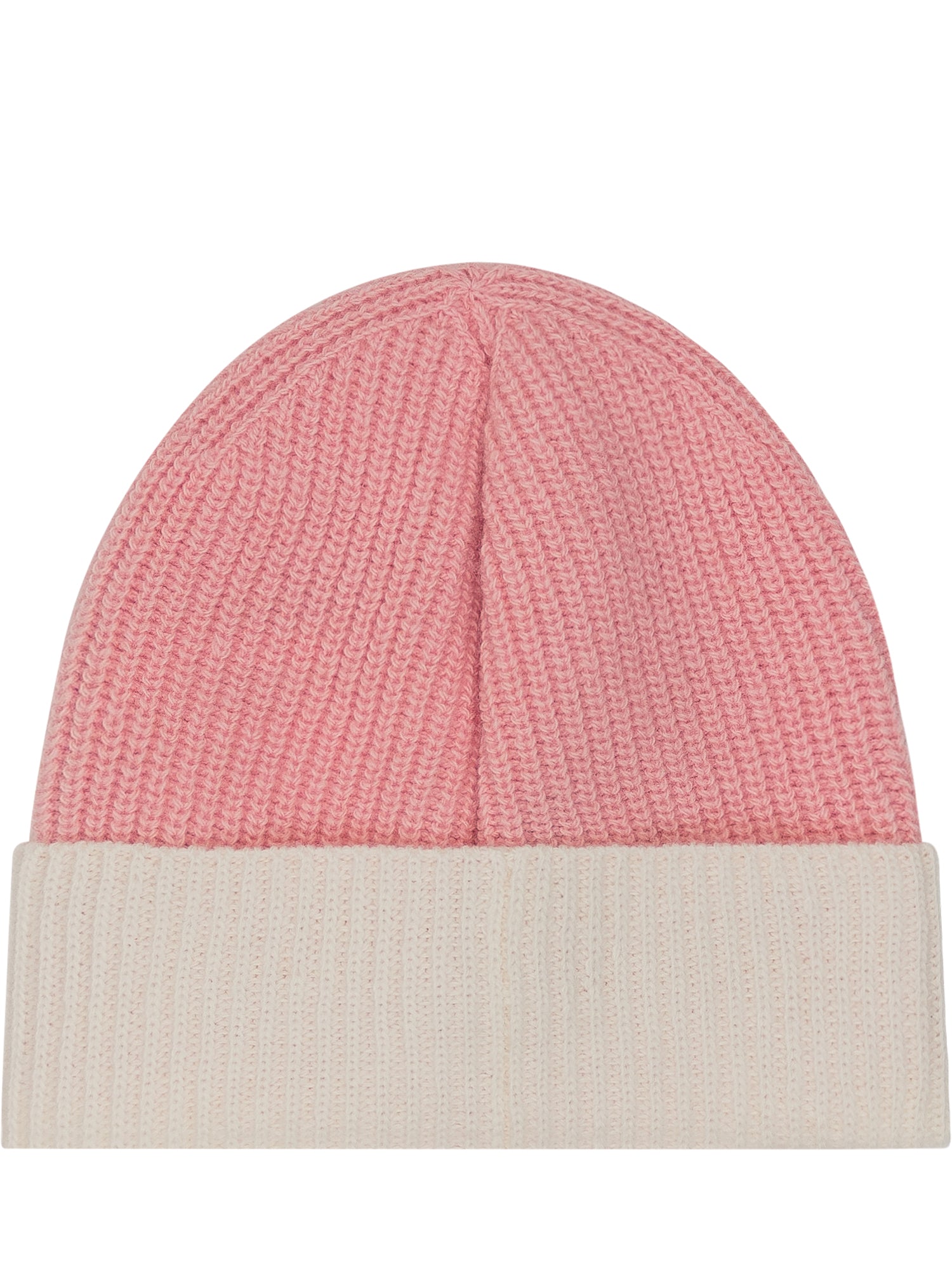 Cuffia bicolore lavorata a coste. Logo ricamato sul davanti.