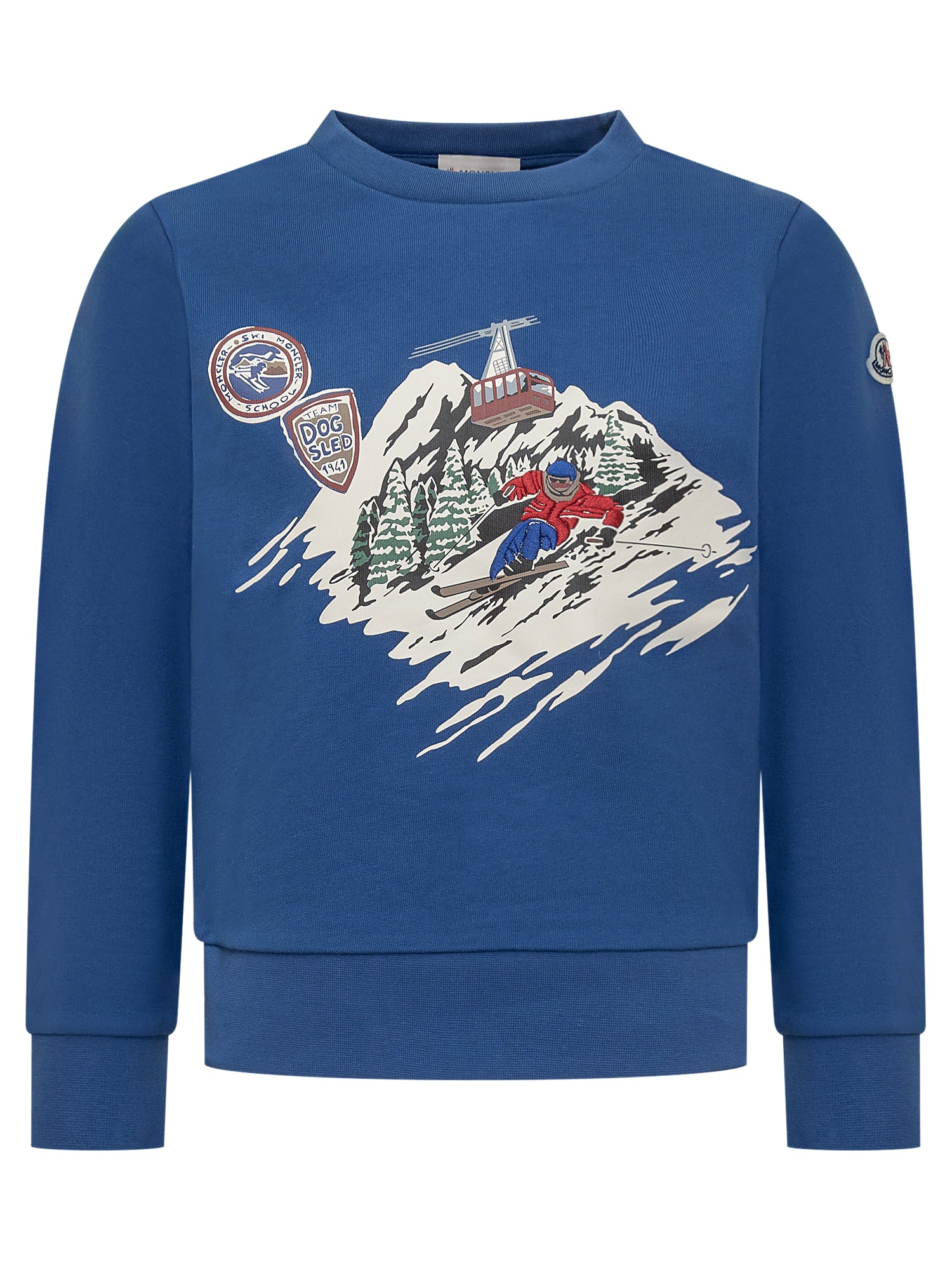 Felpa girocollo. Orli a costine. Stampa sul davanti e logo sulla manica.