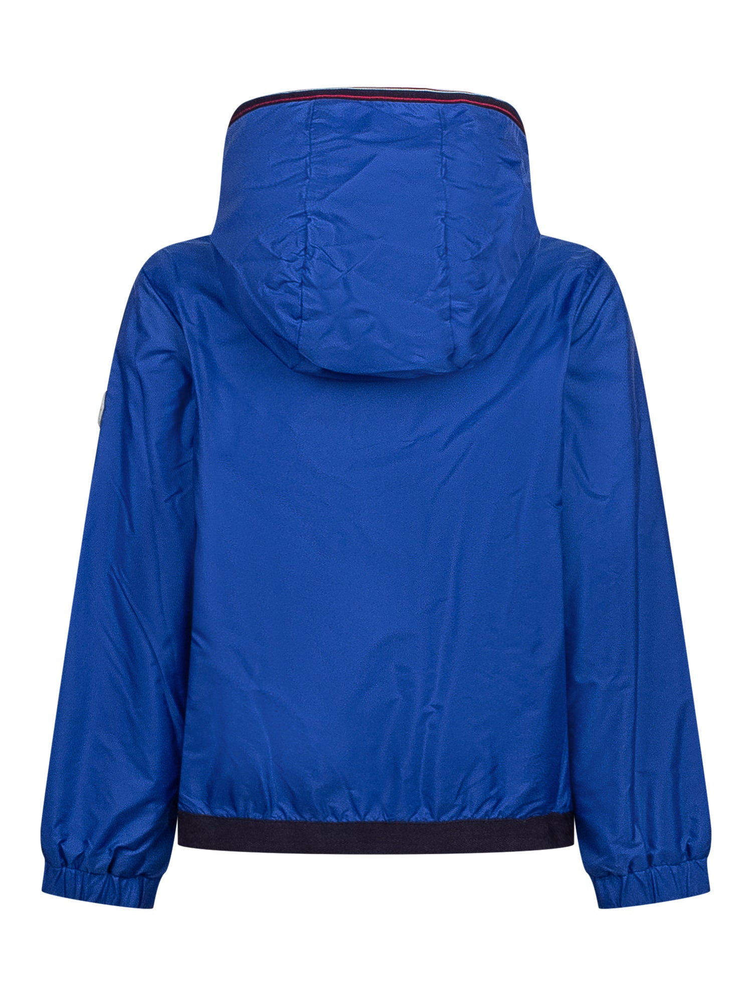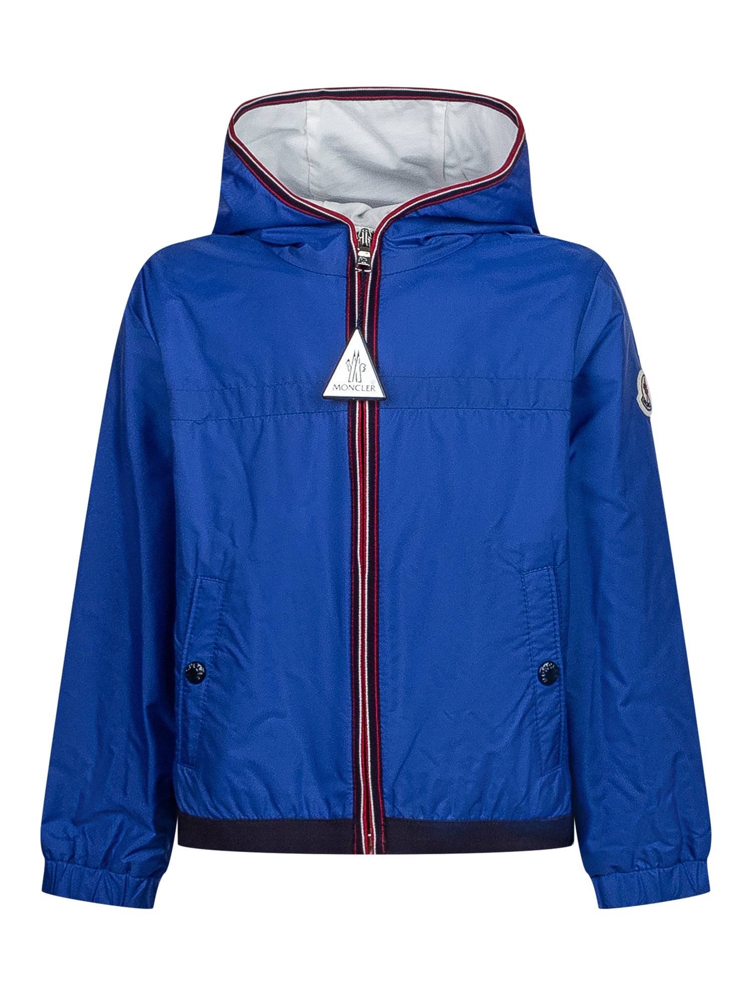 Giubbino con cappuccio. Chiusura con zip. Tasche frontali con bottone.