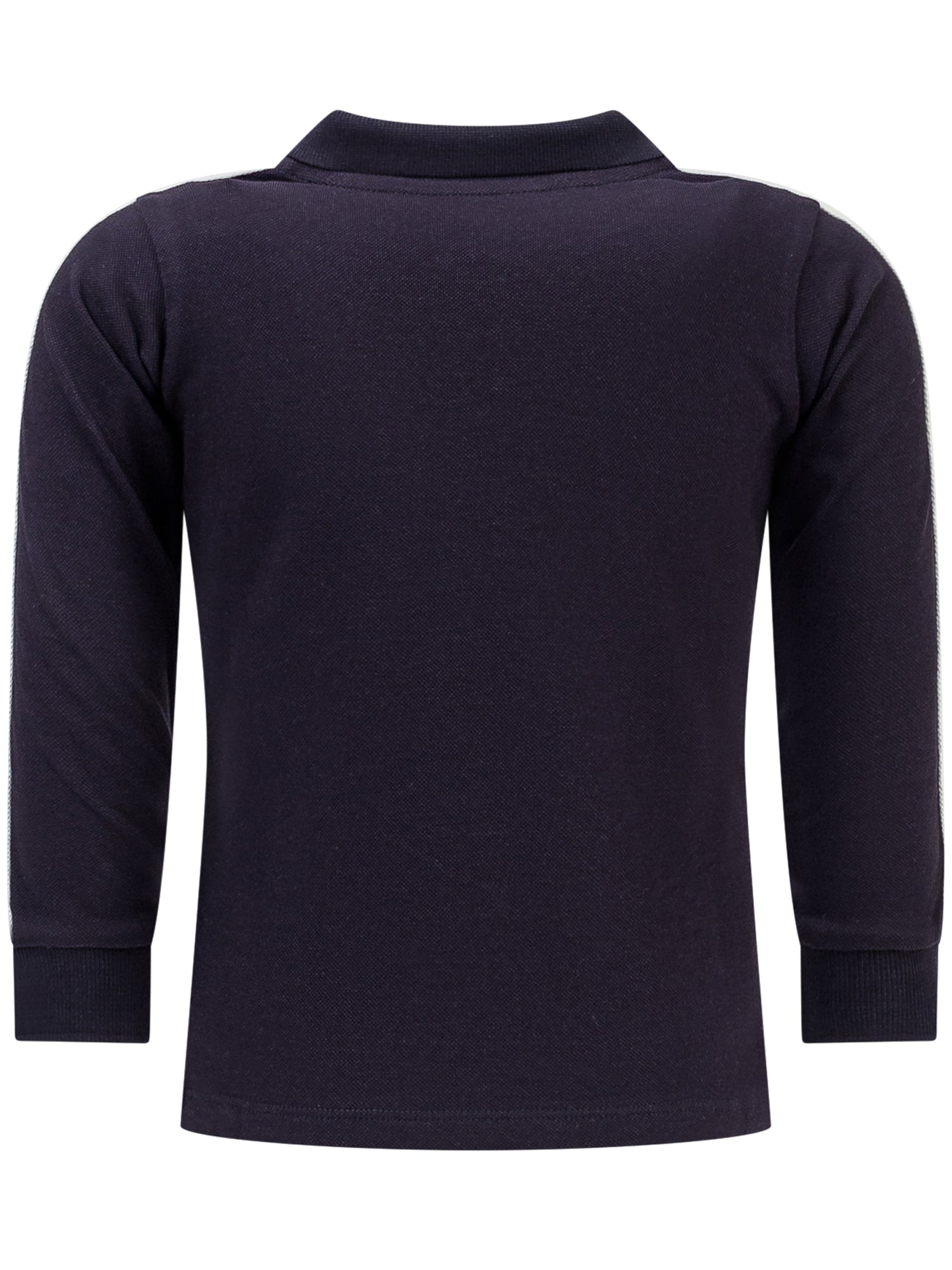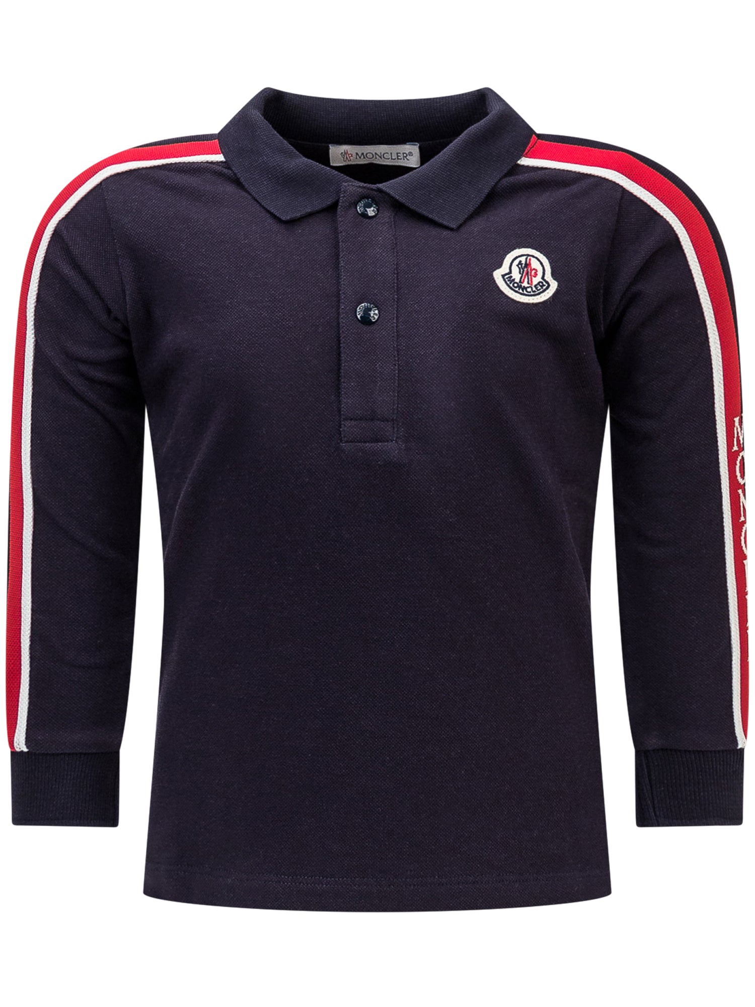 Polo a maniche lunghe. Collo e polsi a costine. Chiusura frontale con bottoni. Patch logo sul davanti e logo ricamato sulla manica.