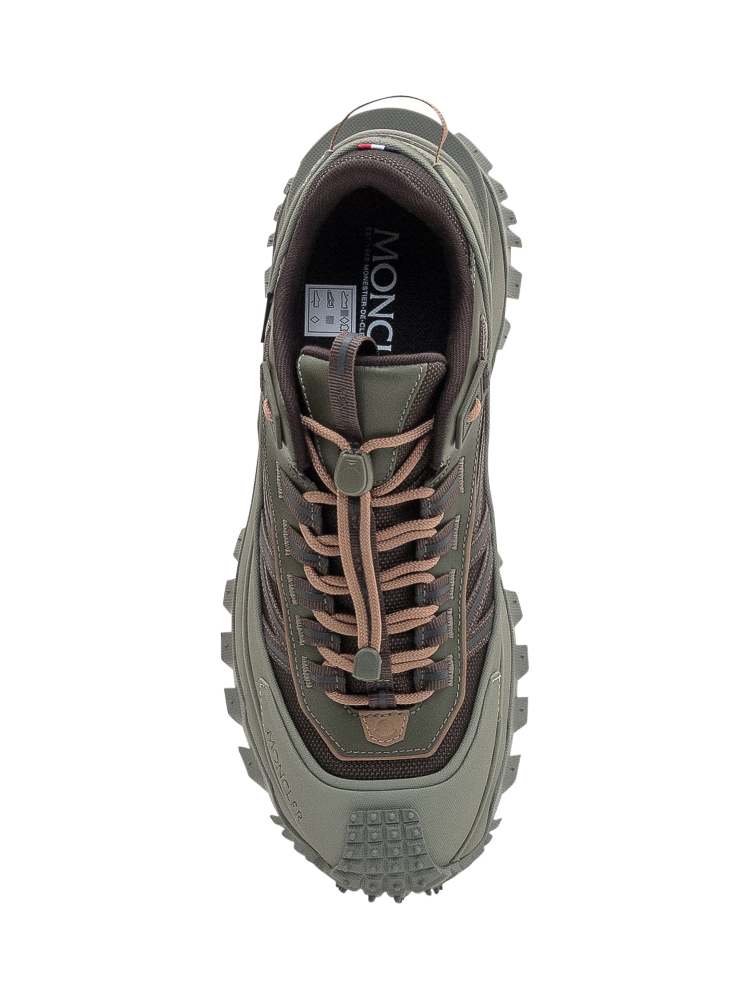 Sneaker Moncler Trailgrip in tessuto tecnico verde oliva con dettagli GORE-TEX e suola Vibram.