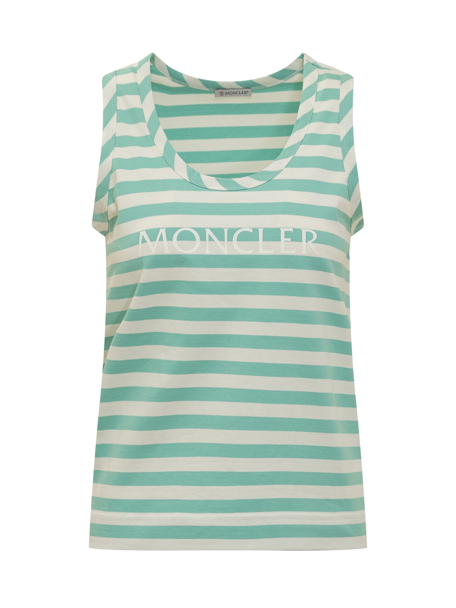 Top di cotone. Senza maniche. Scollo rotondo. Scritta logo Moncler sul fronte.