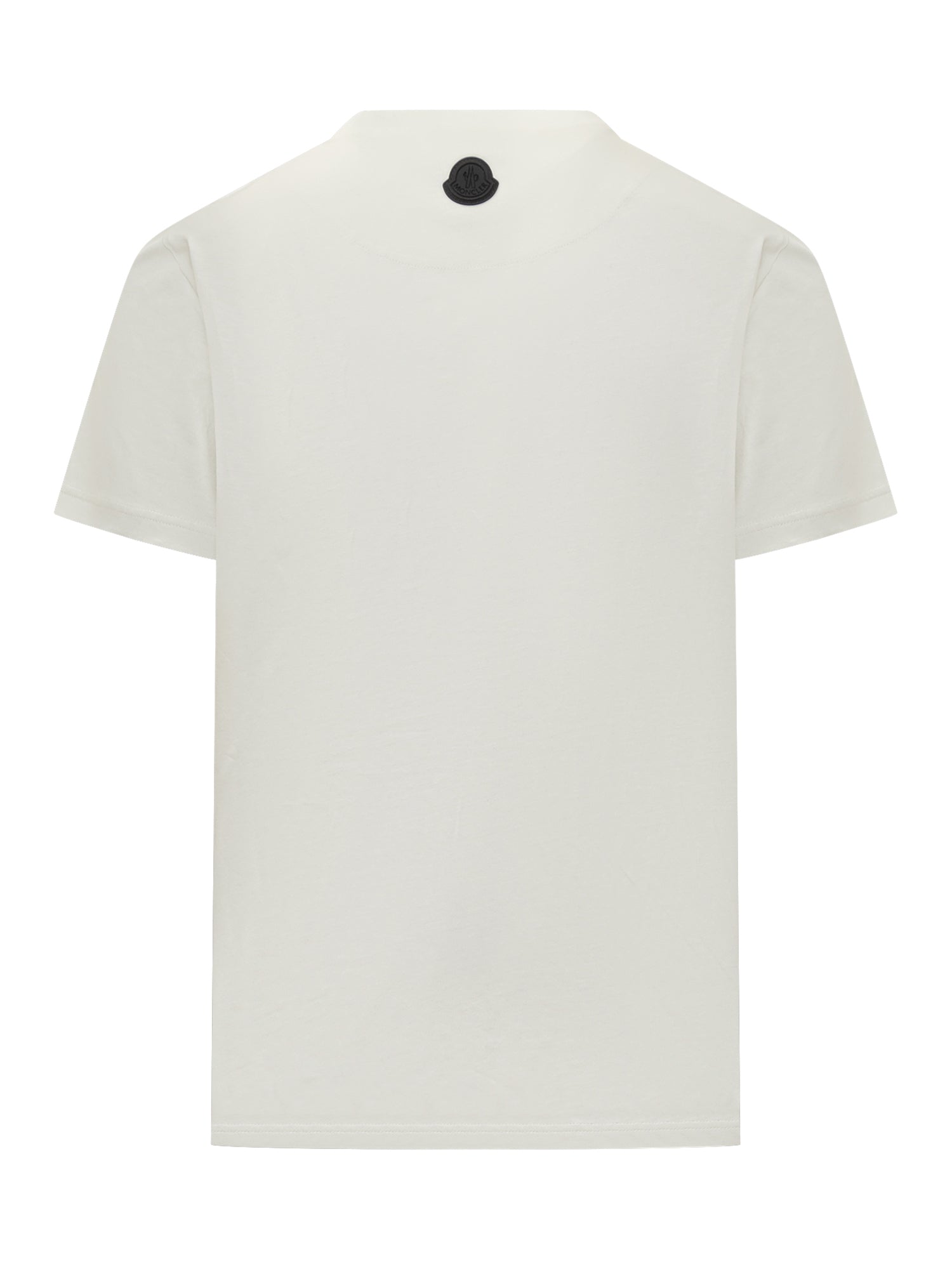 T-shirt Moncler bianca in cotone con logo tono su tono sul petto.