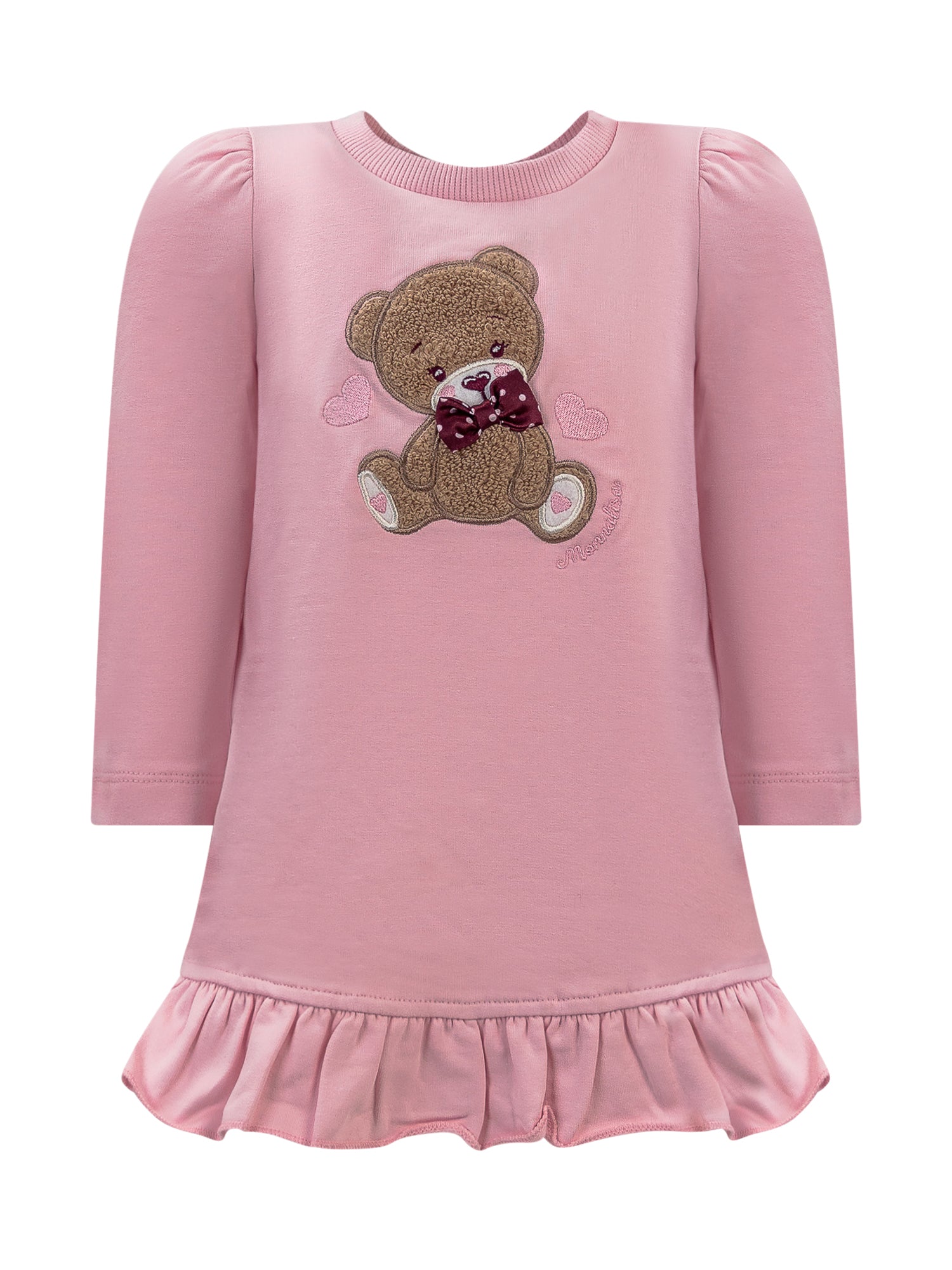 Abito midi a maniche lunghe. Girocollo. Chiusura con bottone sul retro. Patch Orsetto con logo ricamato sul davanti.