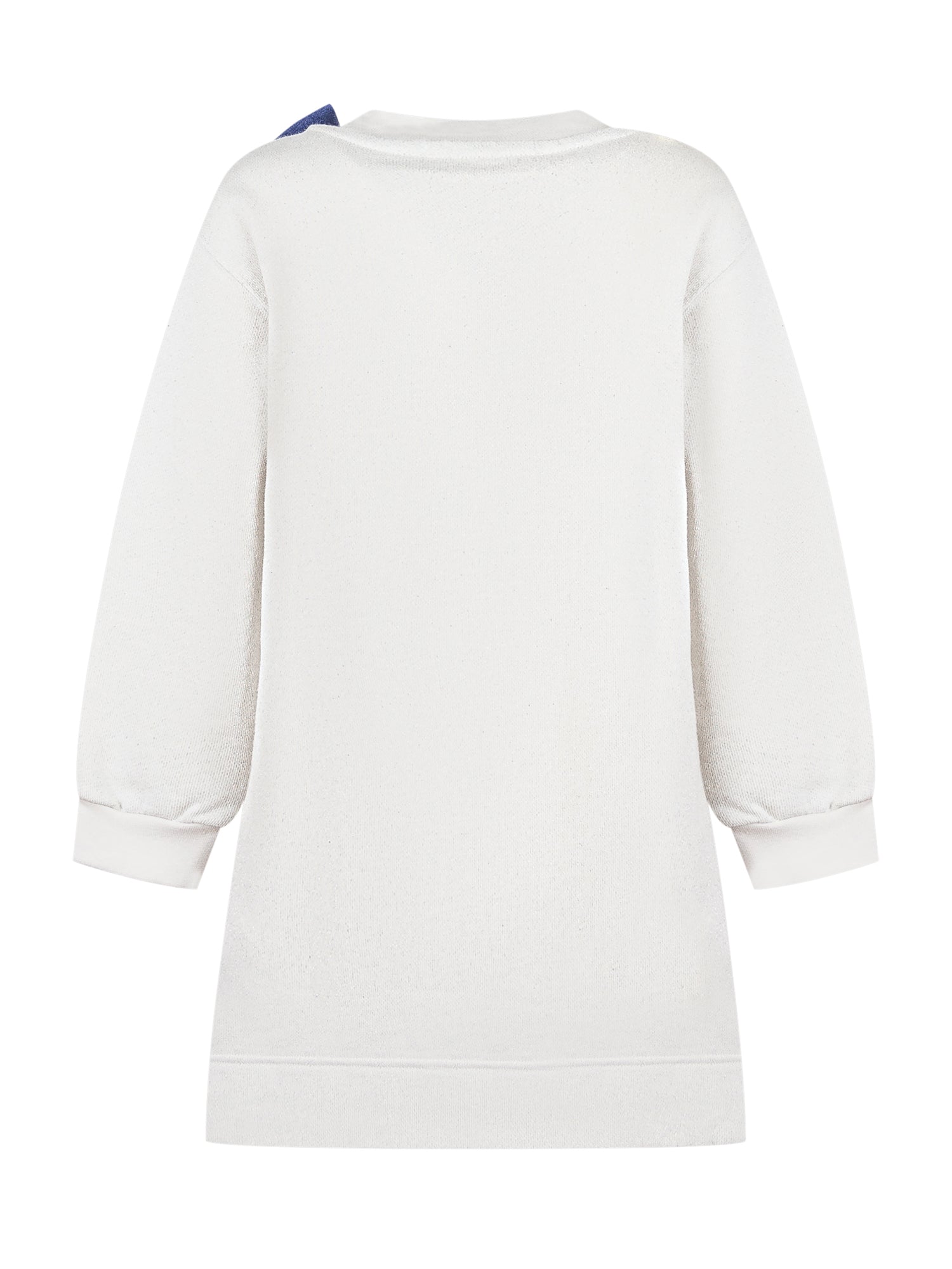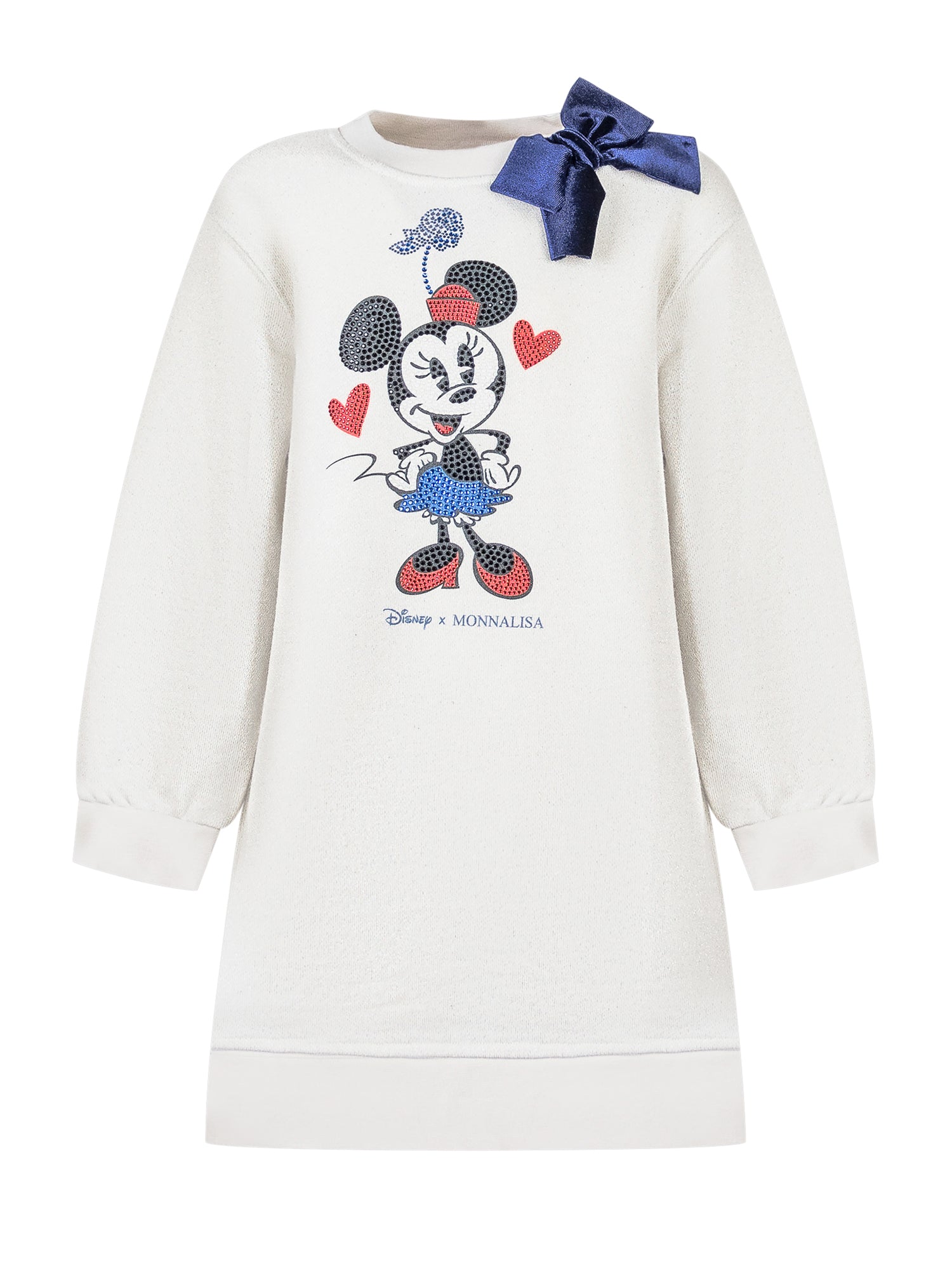 bito Monnalisa in cotone bianco con stampa di Minnie decorata da strass e cuori rossi.