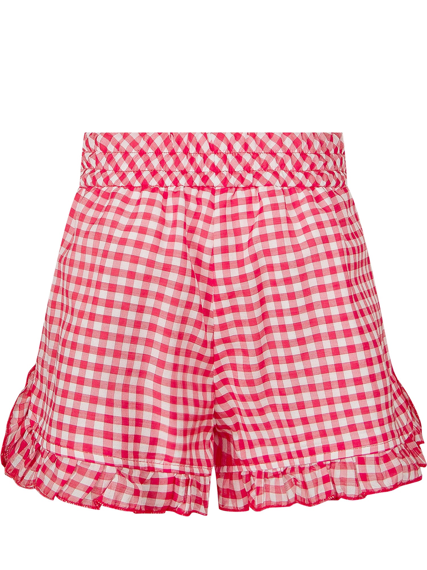 Shorts a quadretti. Elastico in vita. Tasche laterali.