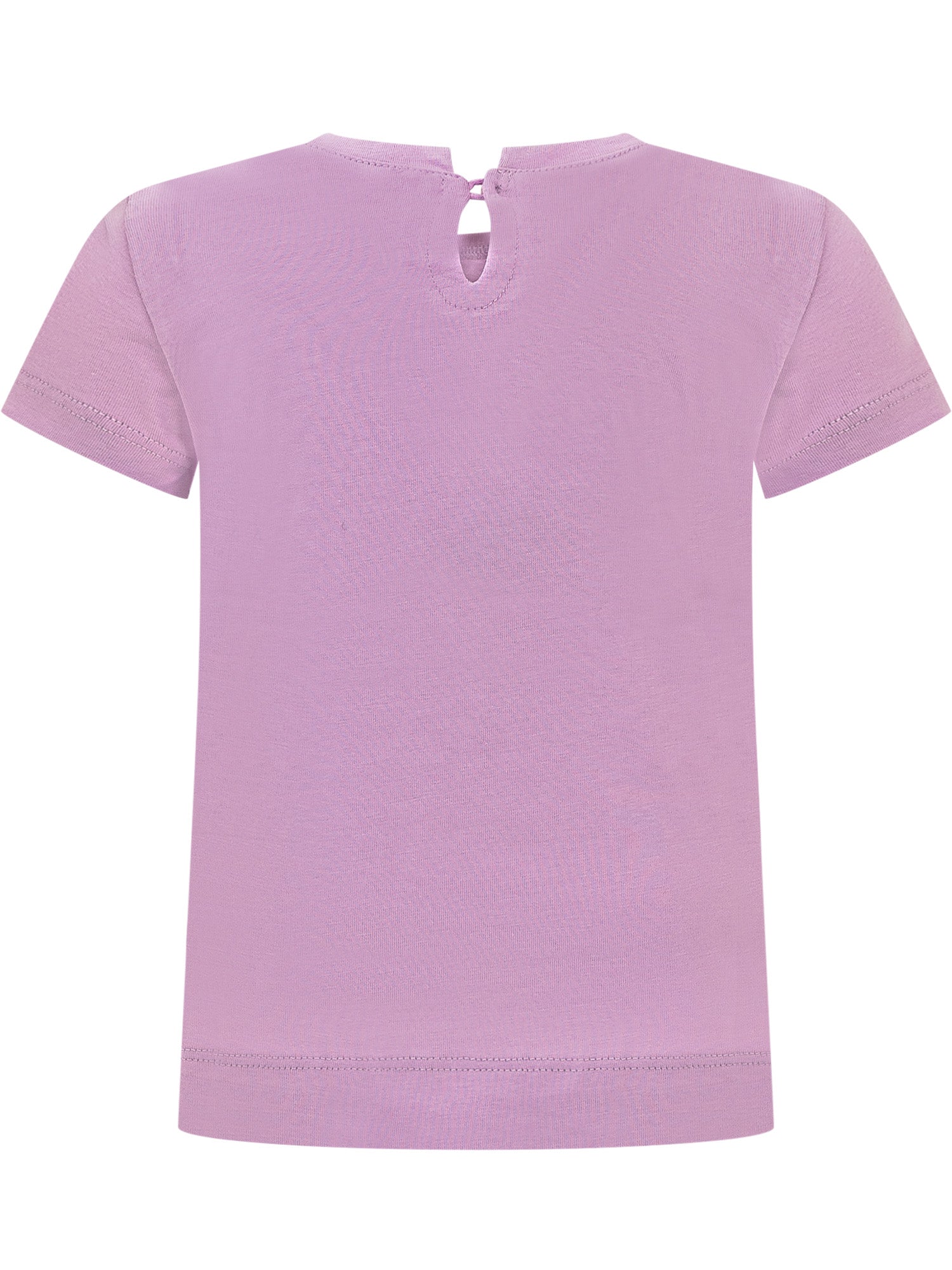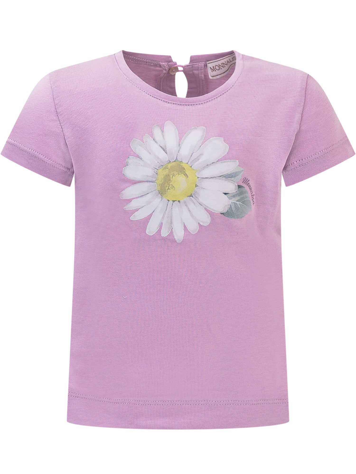 T-Shirt rosa a maniche corte. Girocollo. Chiusura con bottone sul retro. Stampa floreale. con logo sul davanti.