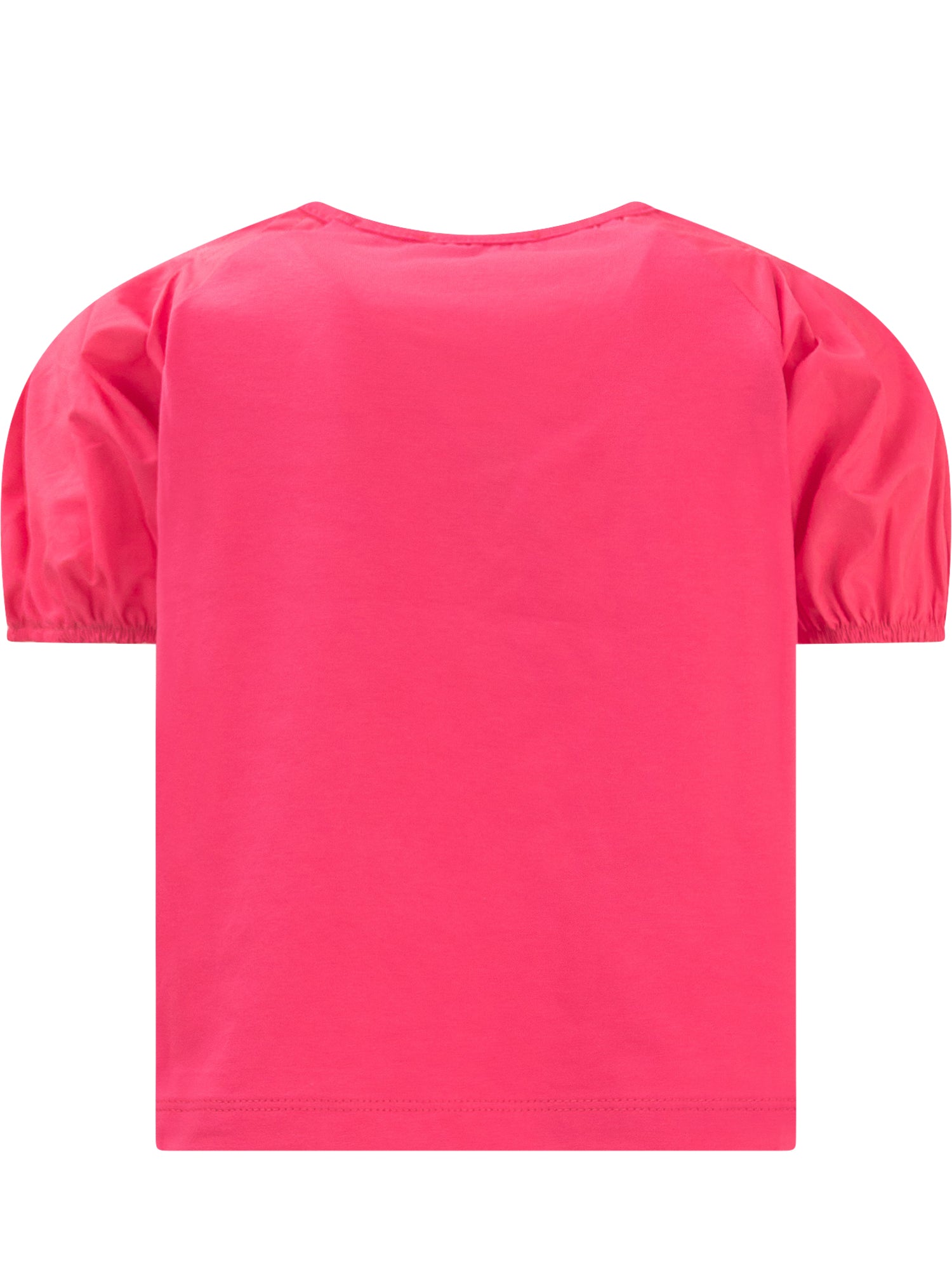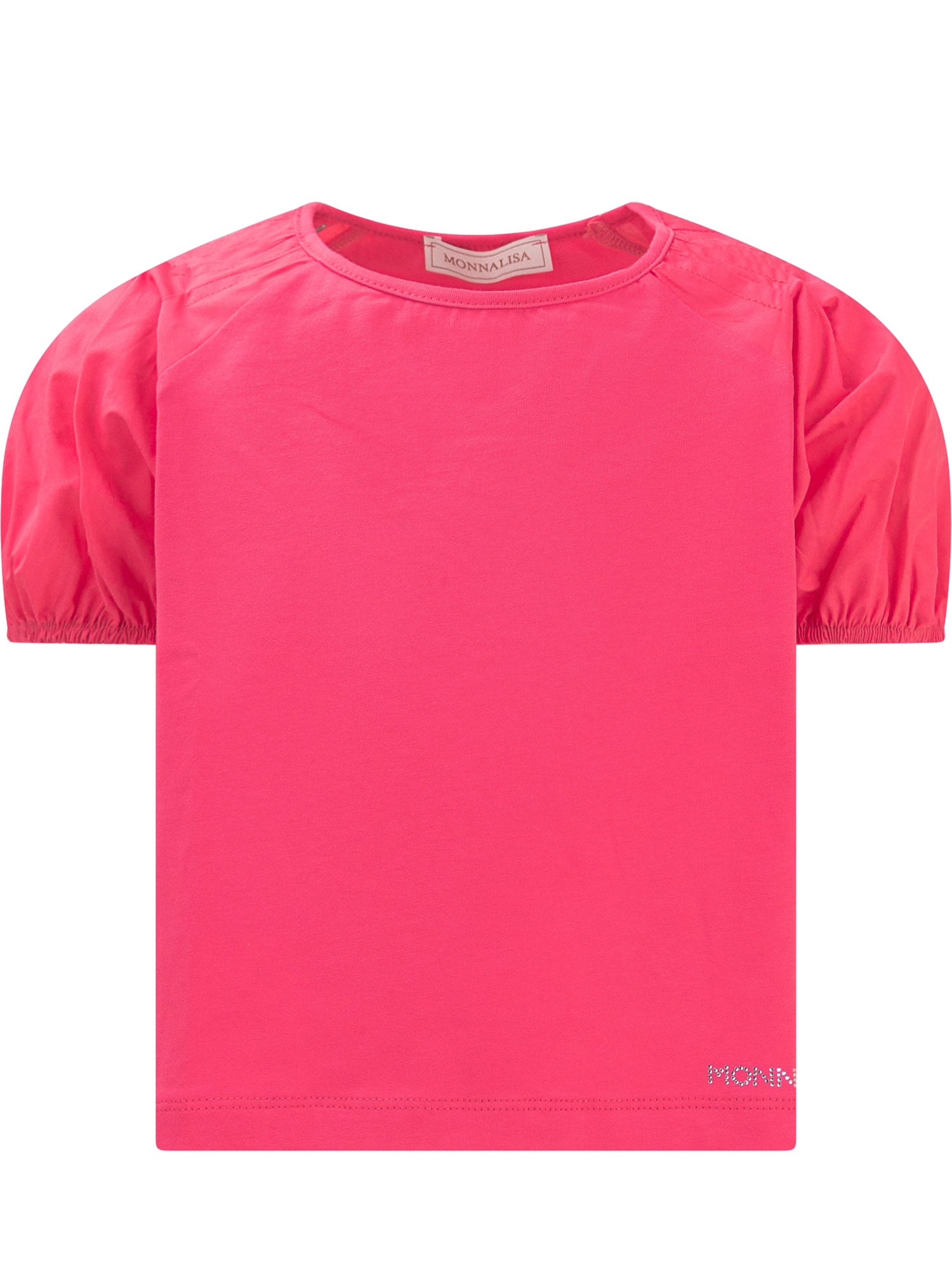 T-shirt con maniche corte a palloncino. Girocollo. Logo con glitter sul fondo.