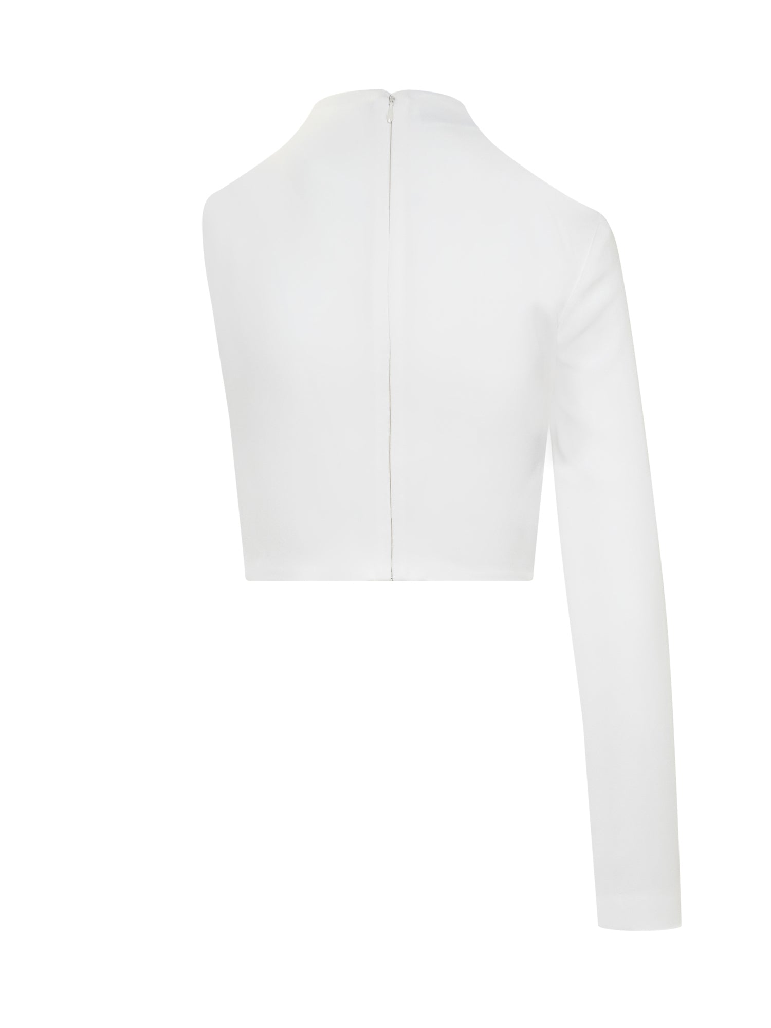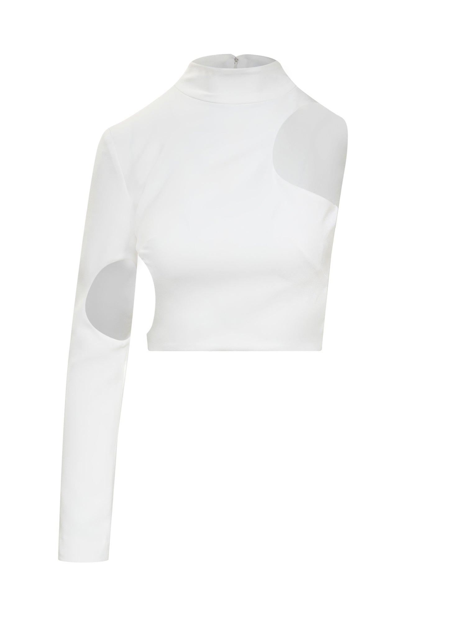 Top con una manica. Chiusura con zip sul retro. Cut-out sulla spalla, manica e fianco.