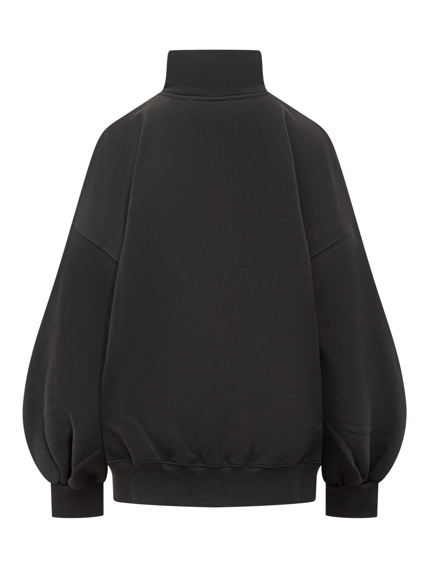 Felpa nera MSGM con mezza zip e logo rosso sul davanti. Design oversize con maniche ampie.