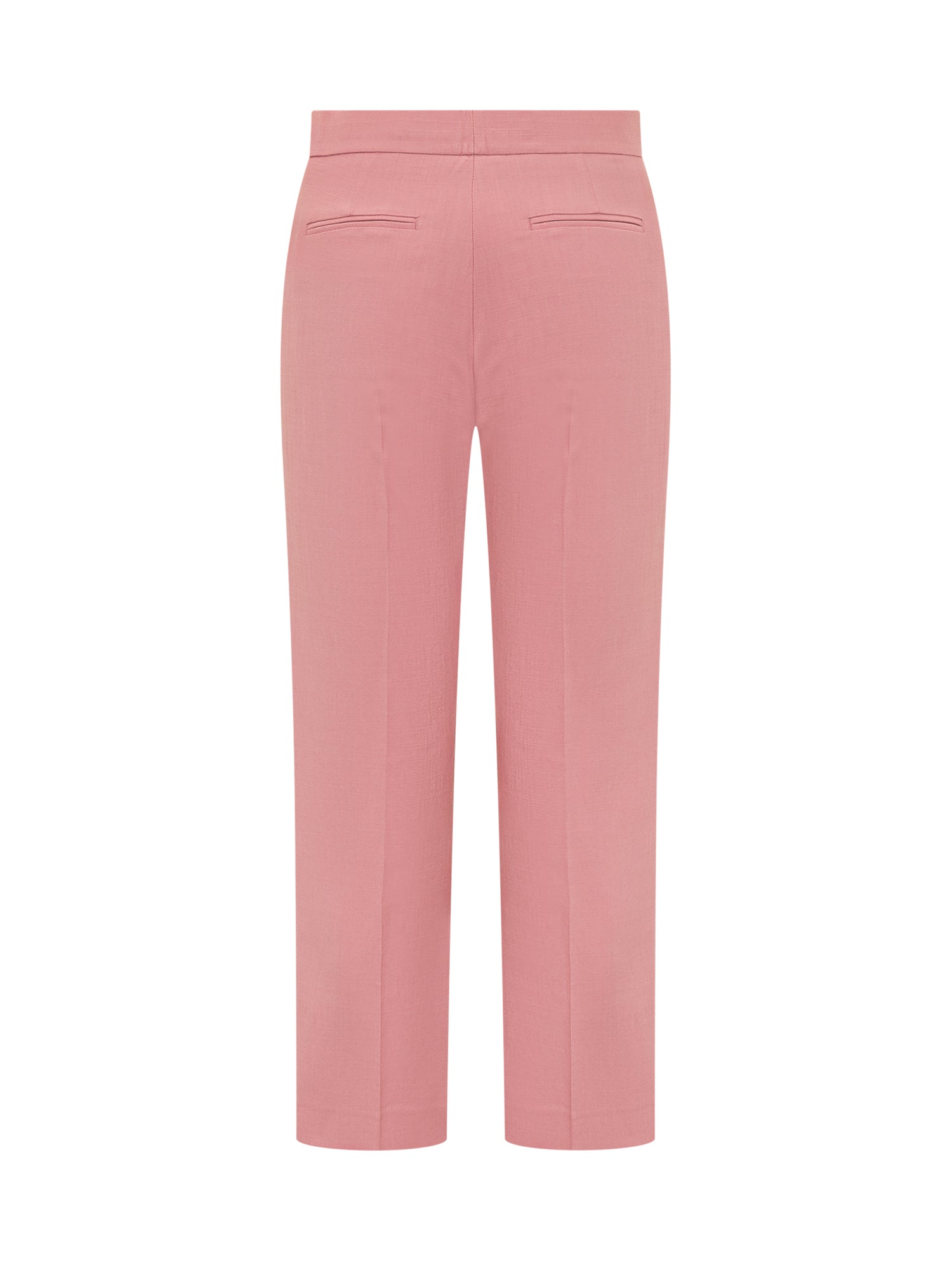 Pantalone lungo a palazzo. Chiusura con zip e gancino. Quattro tasche.