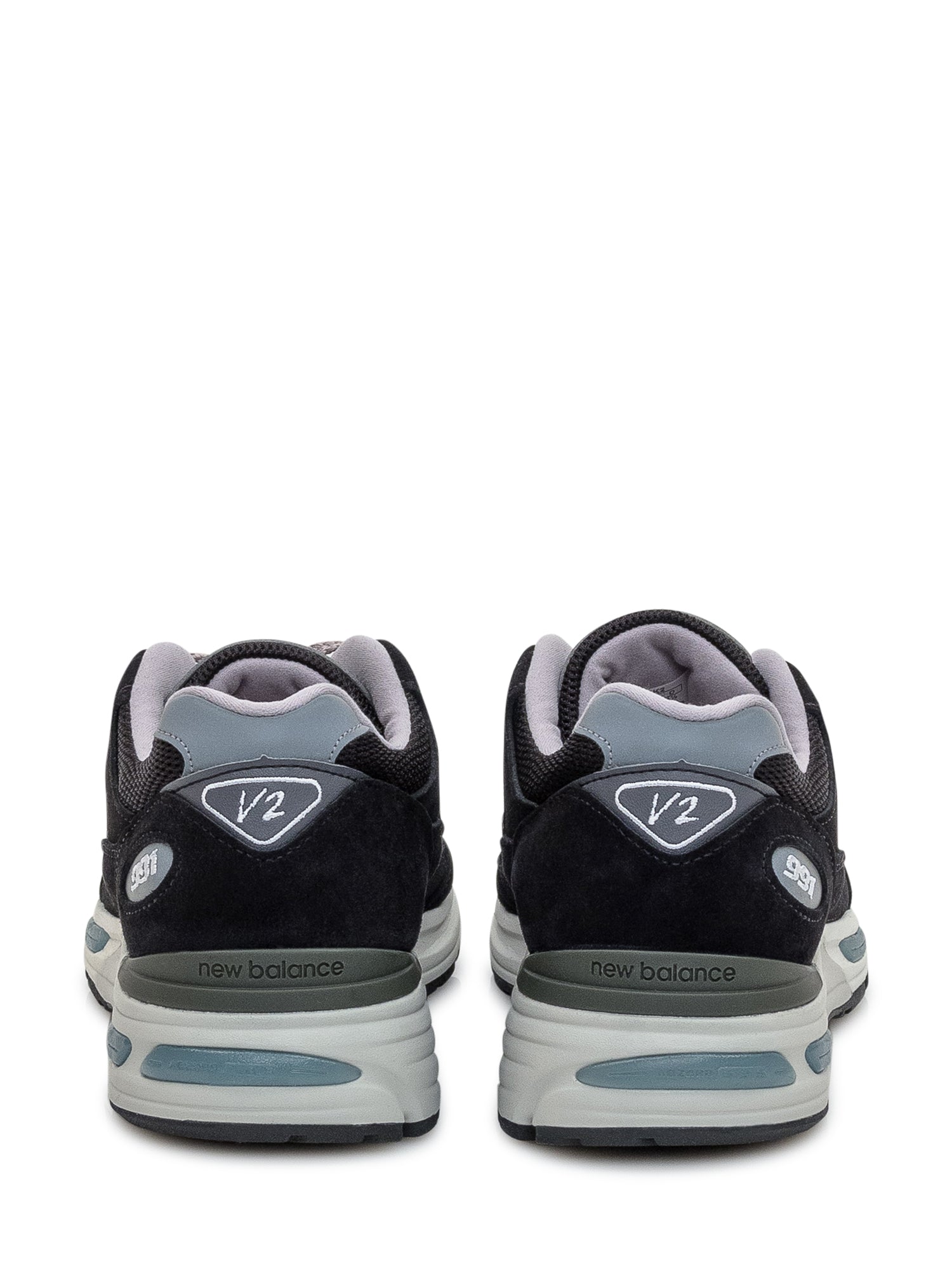 Scarpa nera in pelle e tessuto. Allacciatura frontale. Dettagli logo laterale. Suola in gomma. Contiene parti non tessili di origine animale.