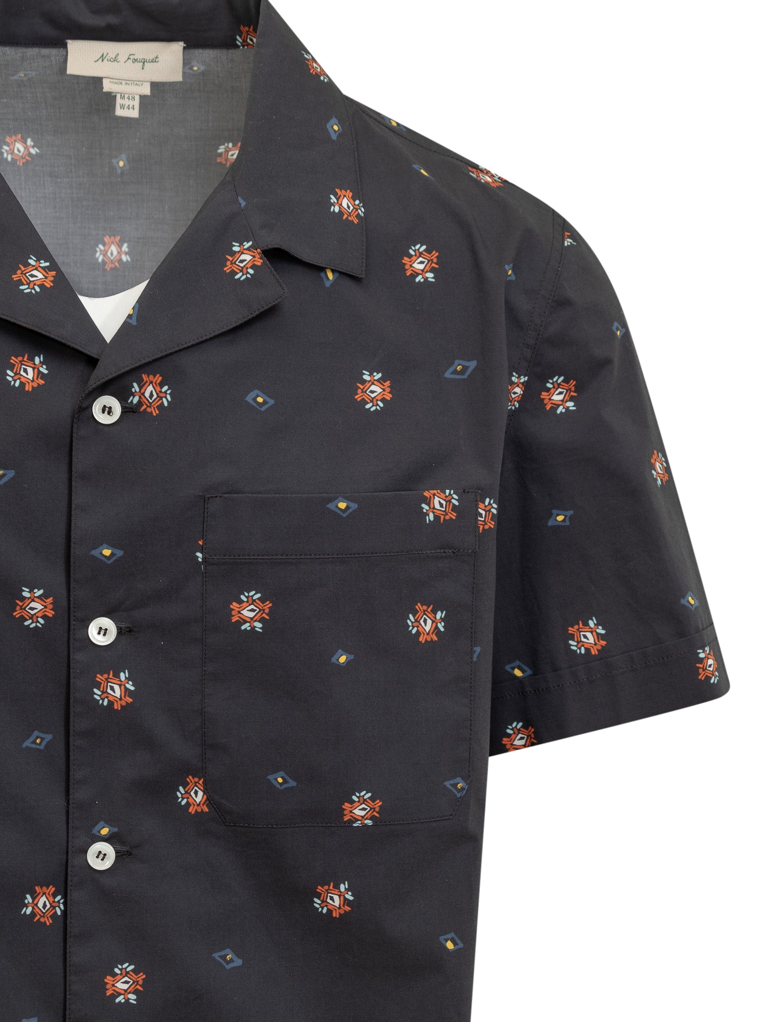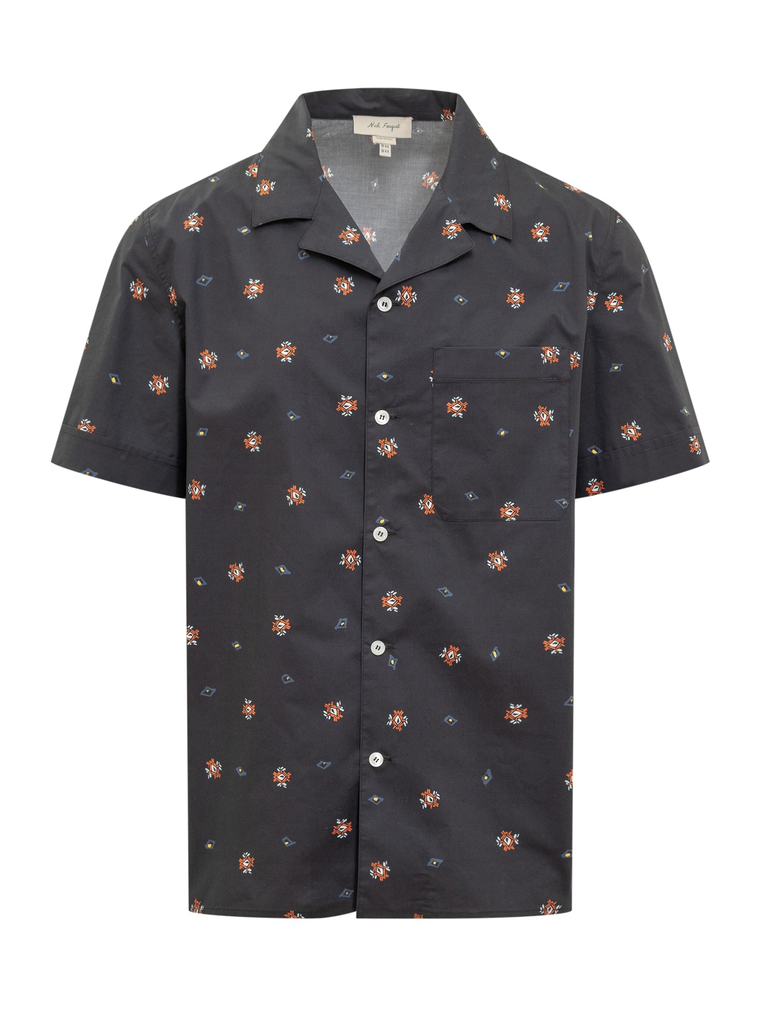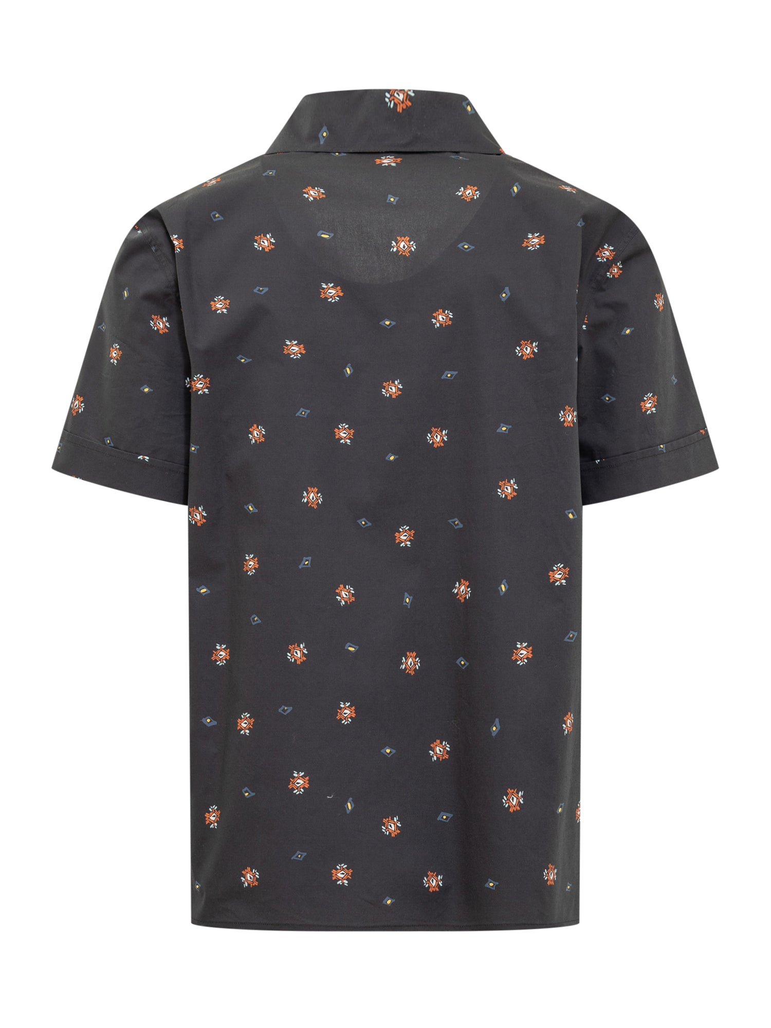 Camicia a maniche corte. Colletto classico. Chiusura con bottoni. Tasca sul petto. Motivo fantasia all-over.