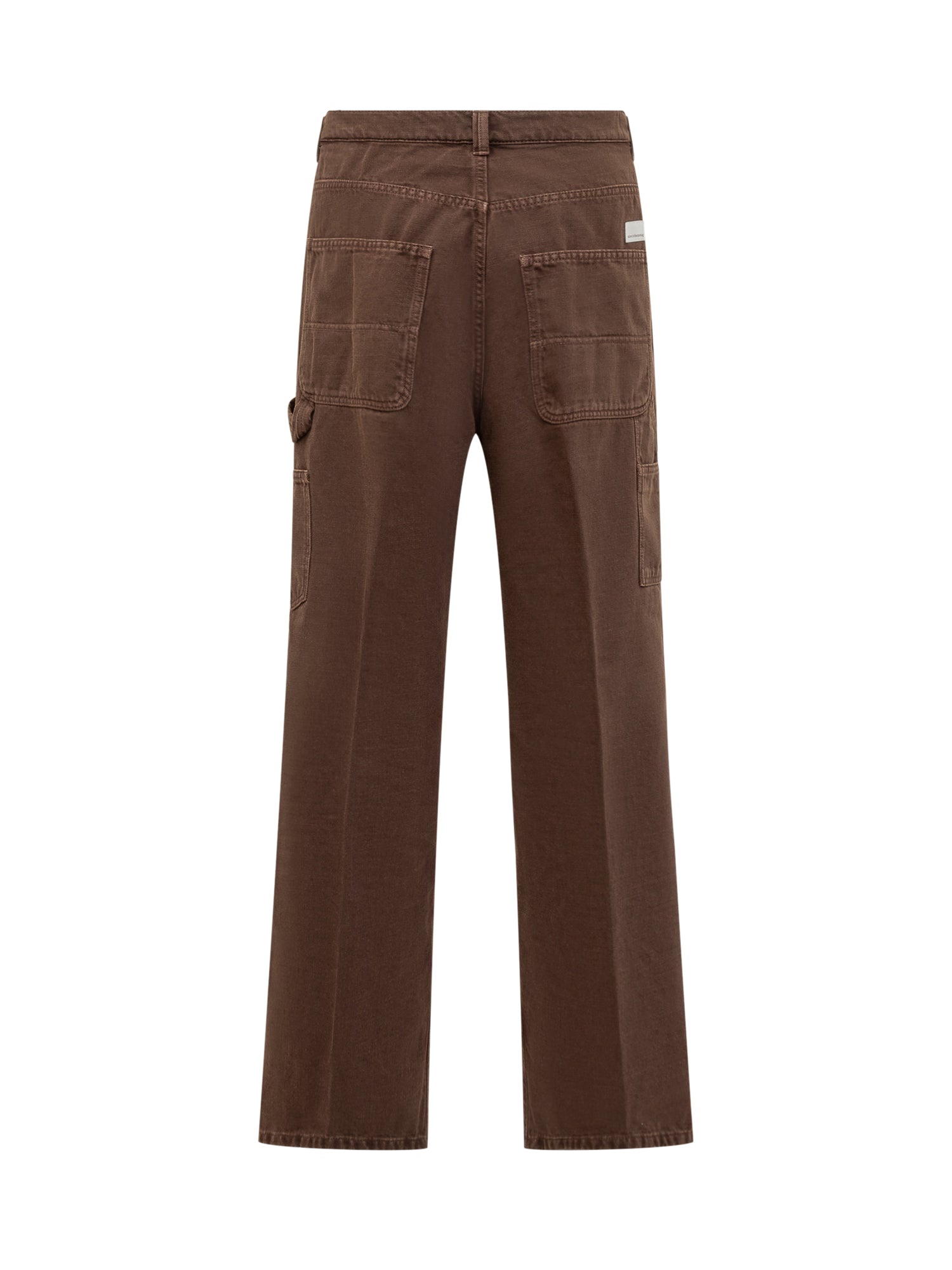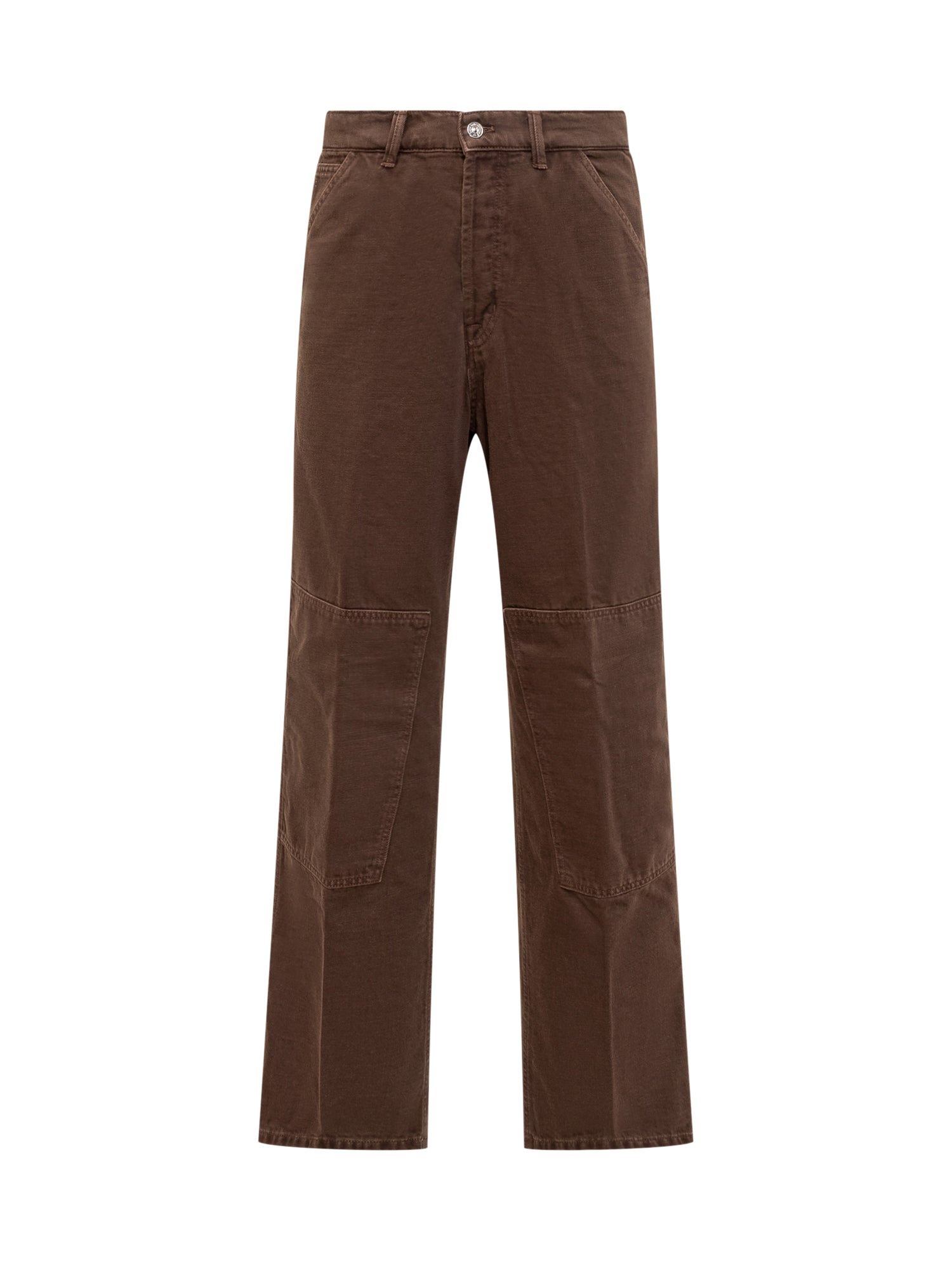 Pantaloni Nine in the Morning in cotone marrone con taglio dritto e dettagli sulle ginocchia. Chiusura con bottoni e zip.
