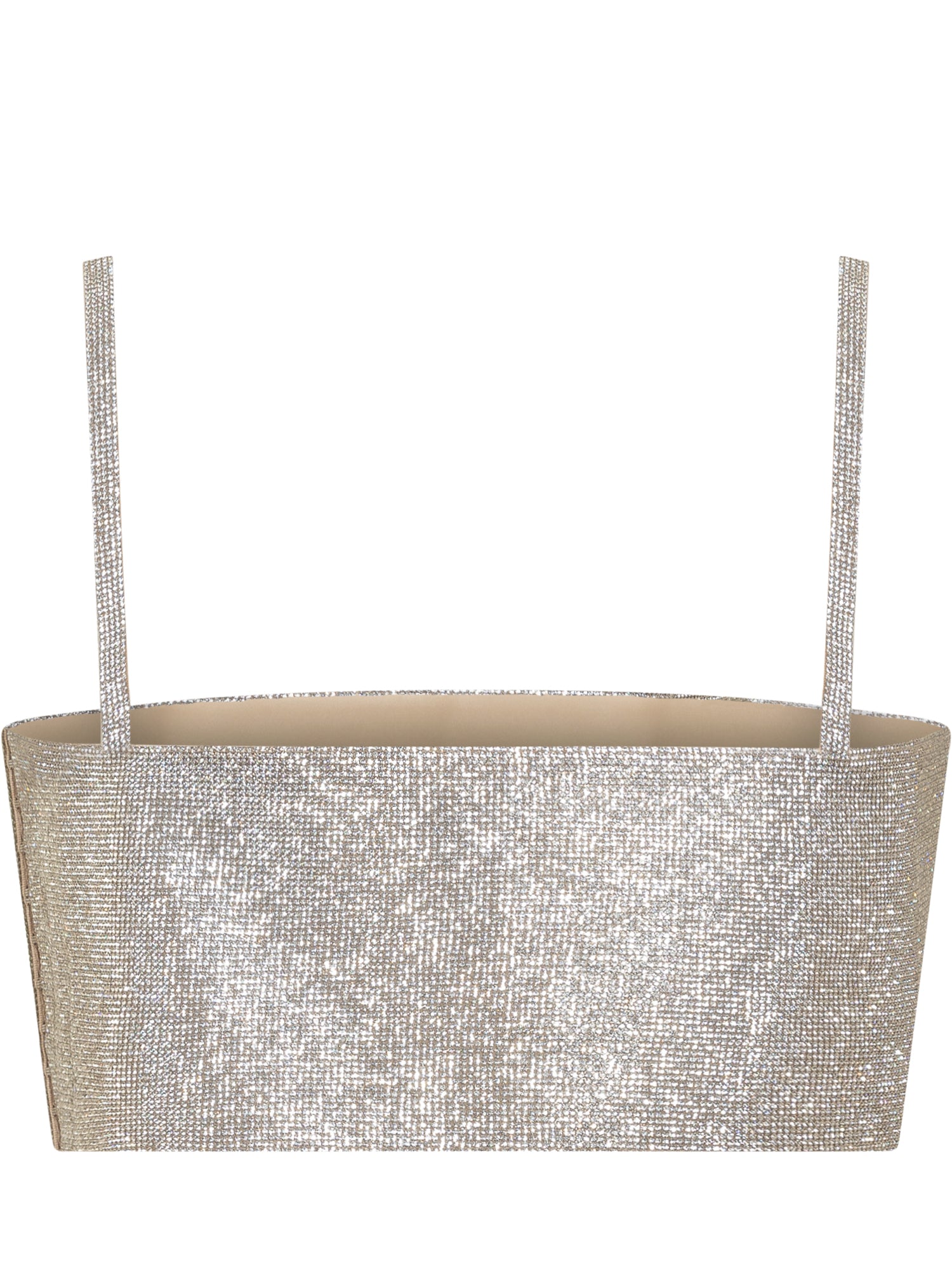 Top corto. Decorazione in cristalli. Spalline fini e scollo quadrato.