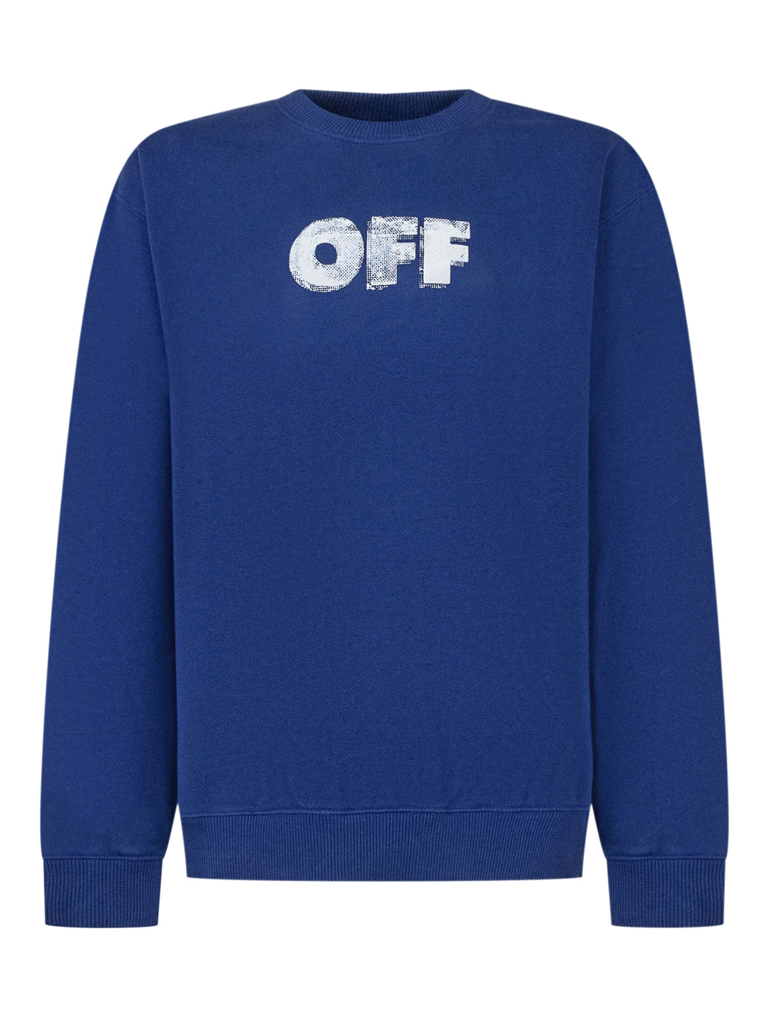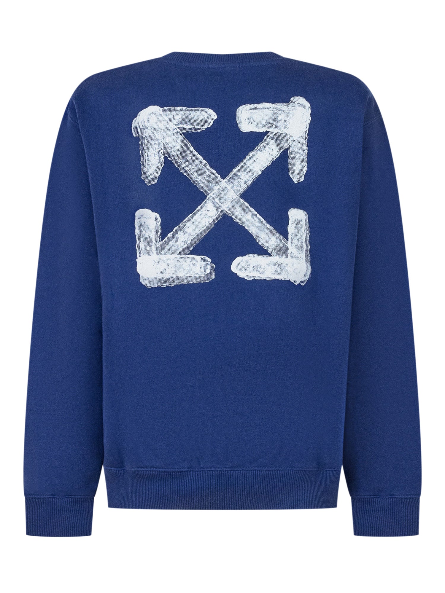 Felpa blu in cotone firmata Off-White Kids, con scritta OFF sul davanti e iconico logo a frecce sul retro.