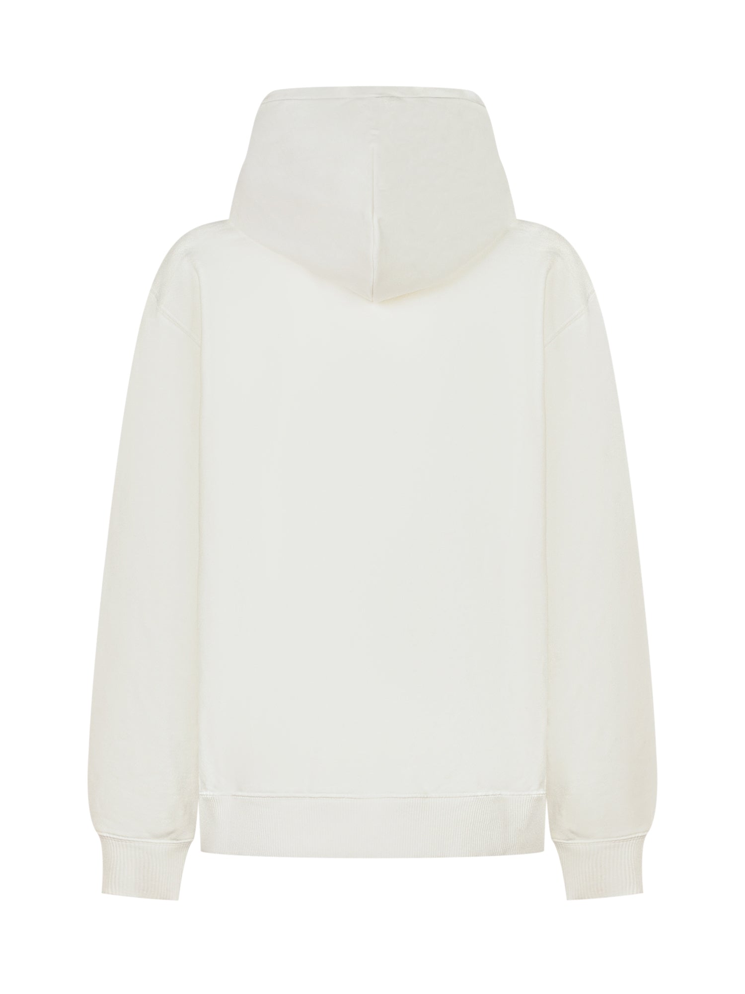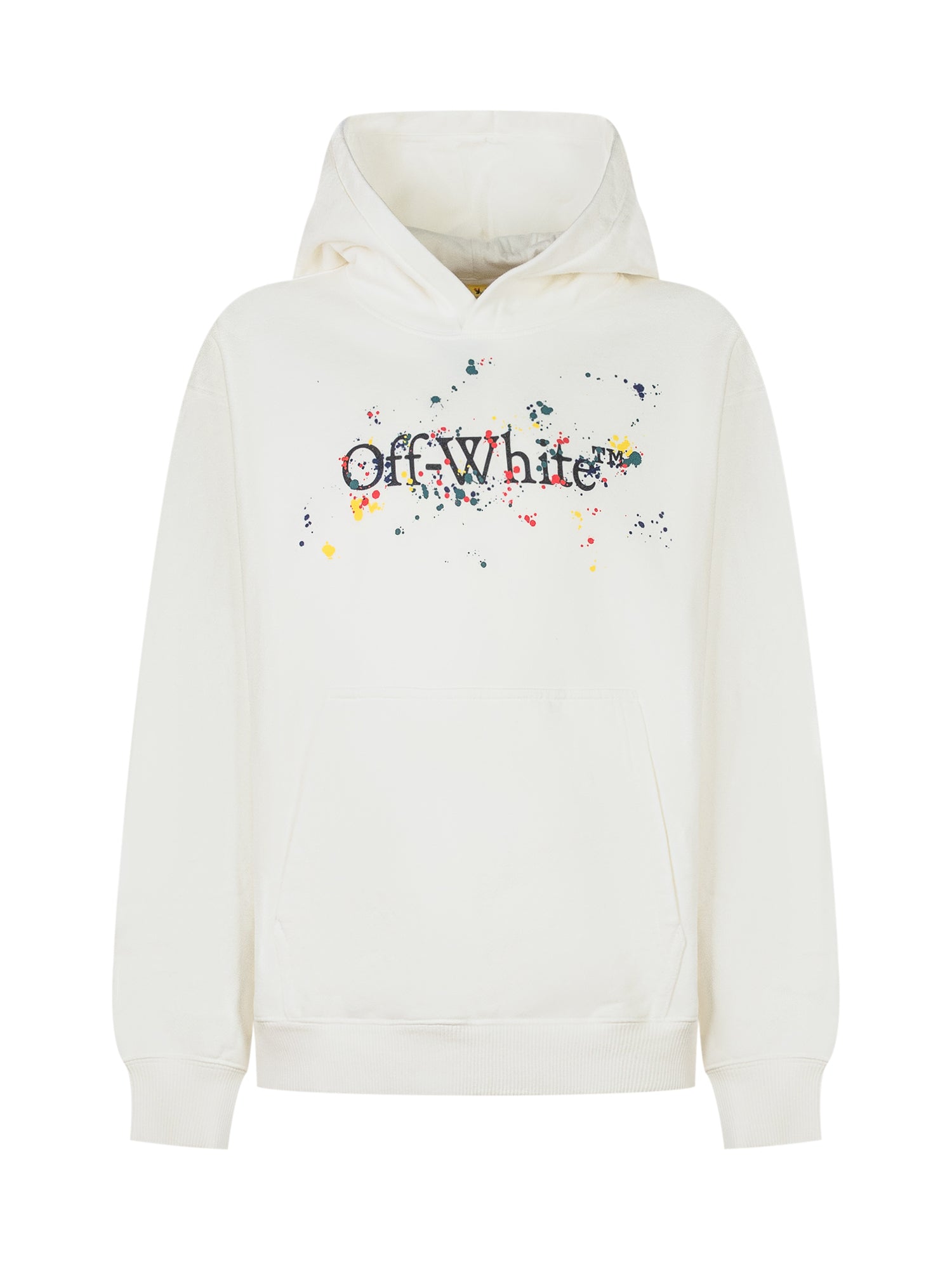 Felpa hoodie bianca Off-White Kids in cotone, con logo centrale e dettagli effetto pittura multicolor.