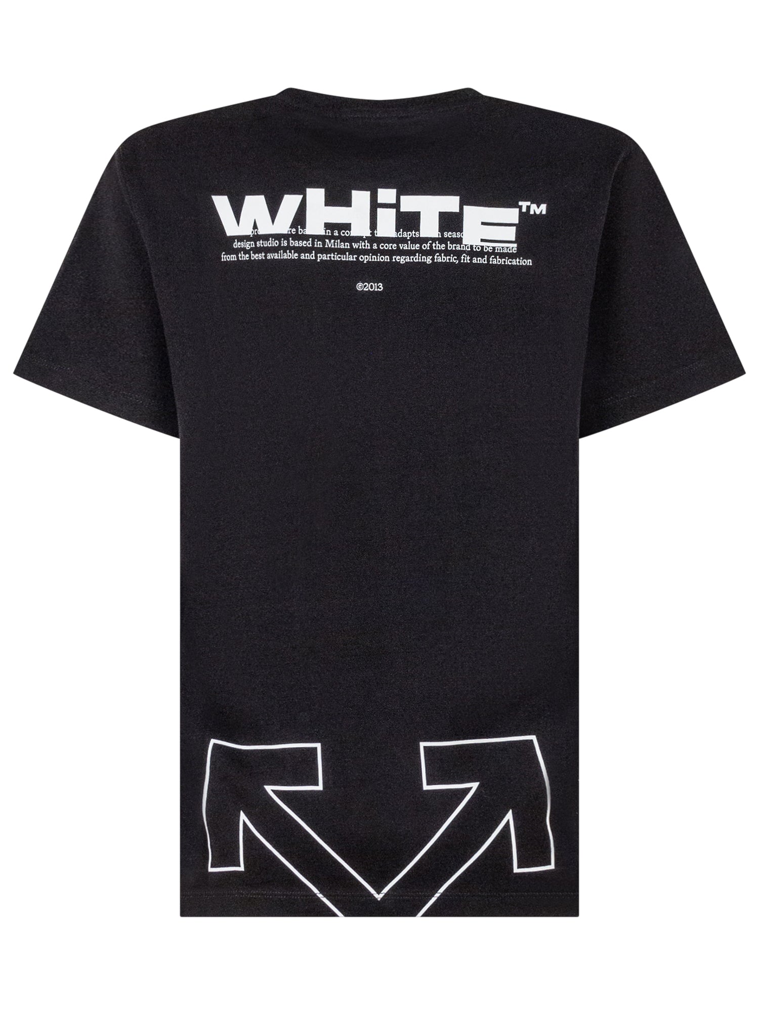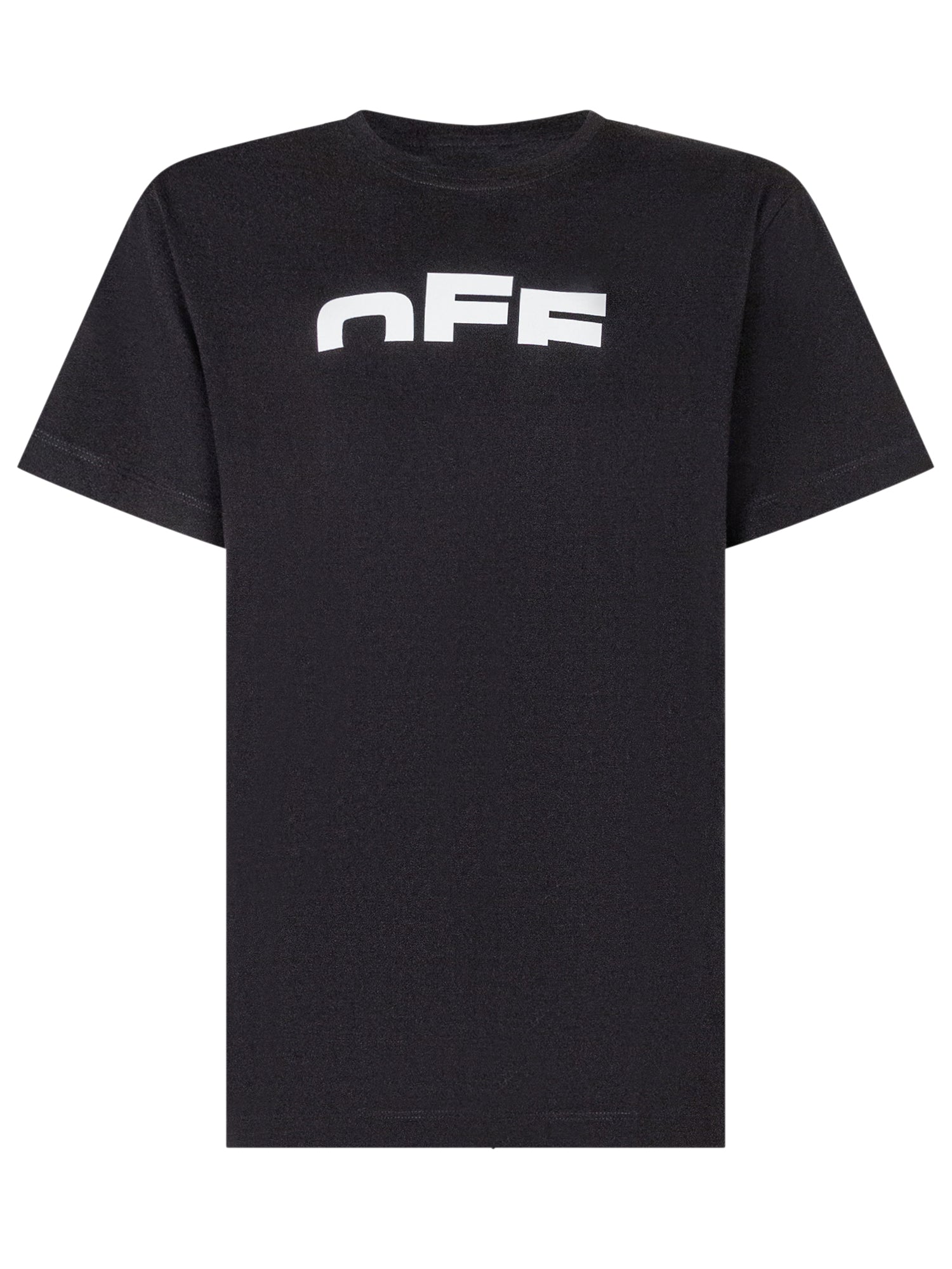 T-shirt nera in cotone firmata Off-White Kids, con logo bianco stampato sul fronte e frecce iconiche sul retro.