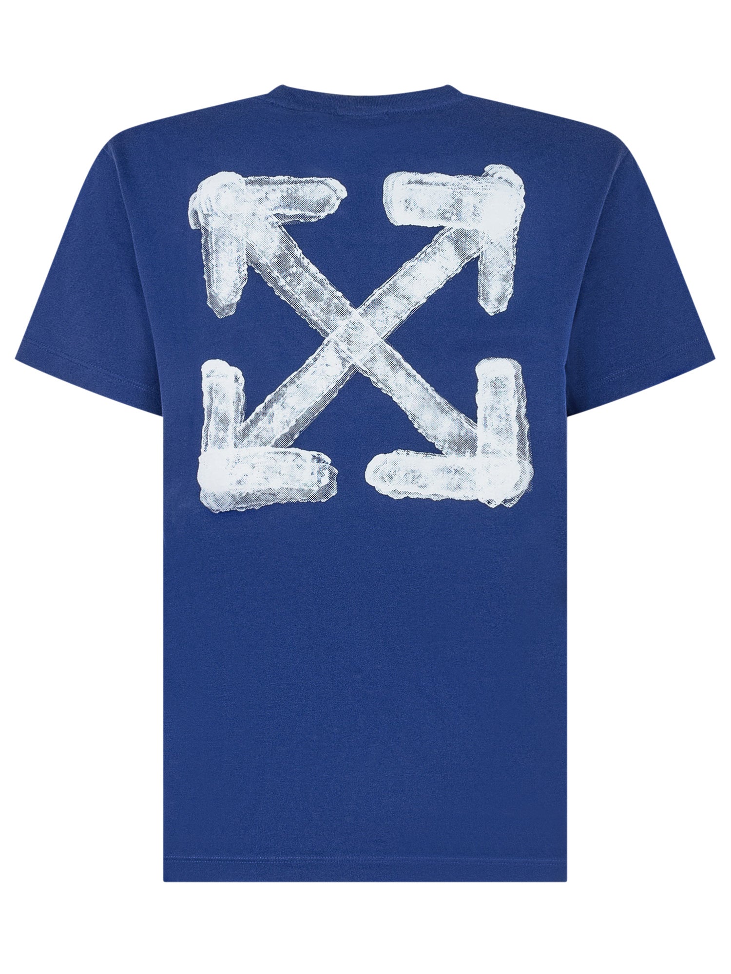 T-shirt nera in cotone firmata Off-White Kids, con logo bianco stampato sul fronte e frecce iconiche sul retro.