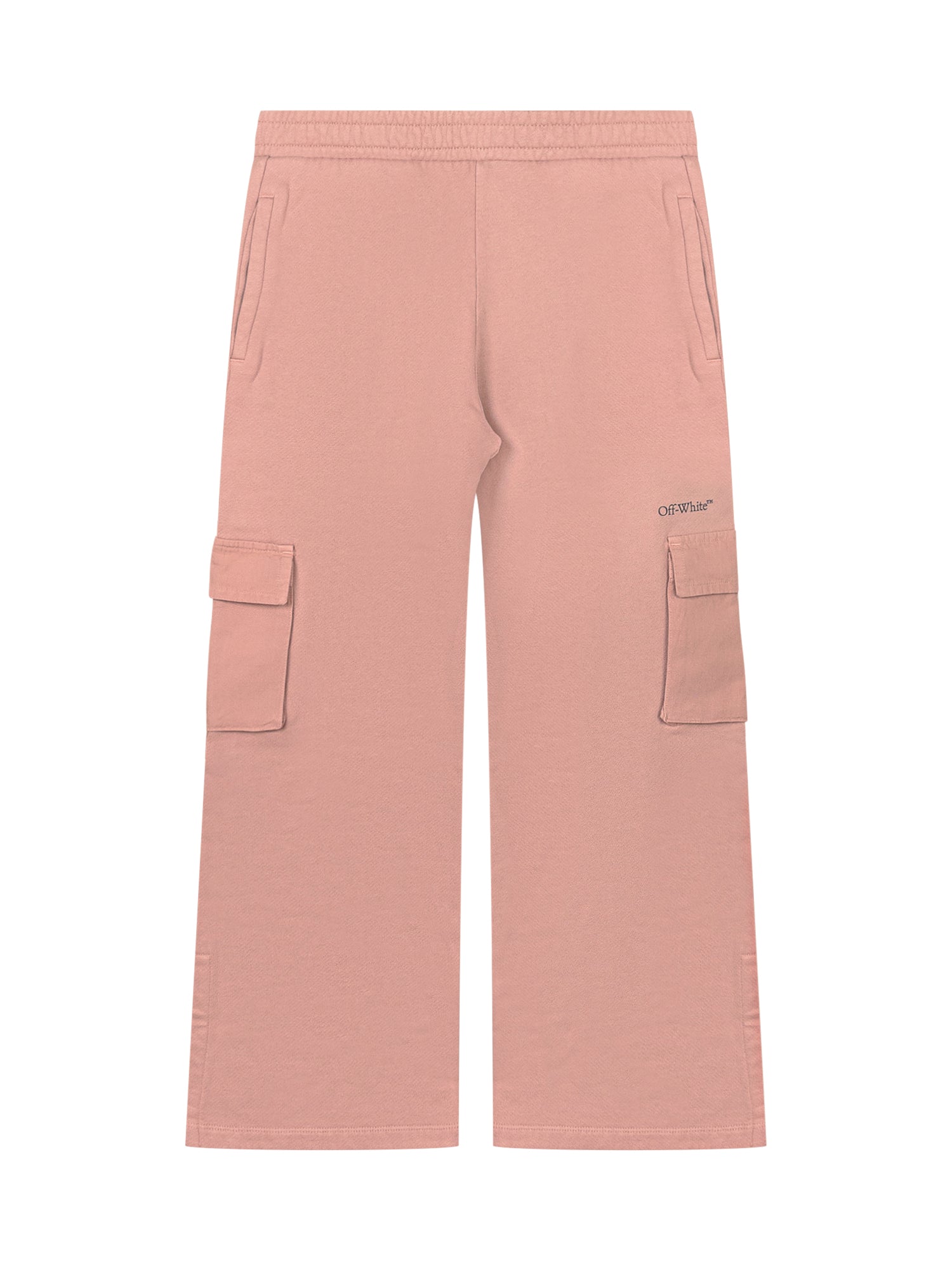 Pantaloni cargo Off-White in cotone rosa con tasche laterali e logo ricamato. Taglio ampio e rilassato.