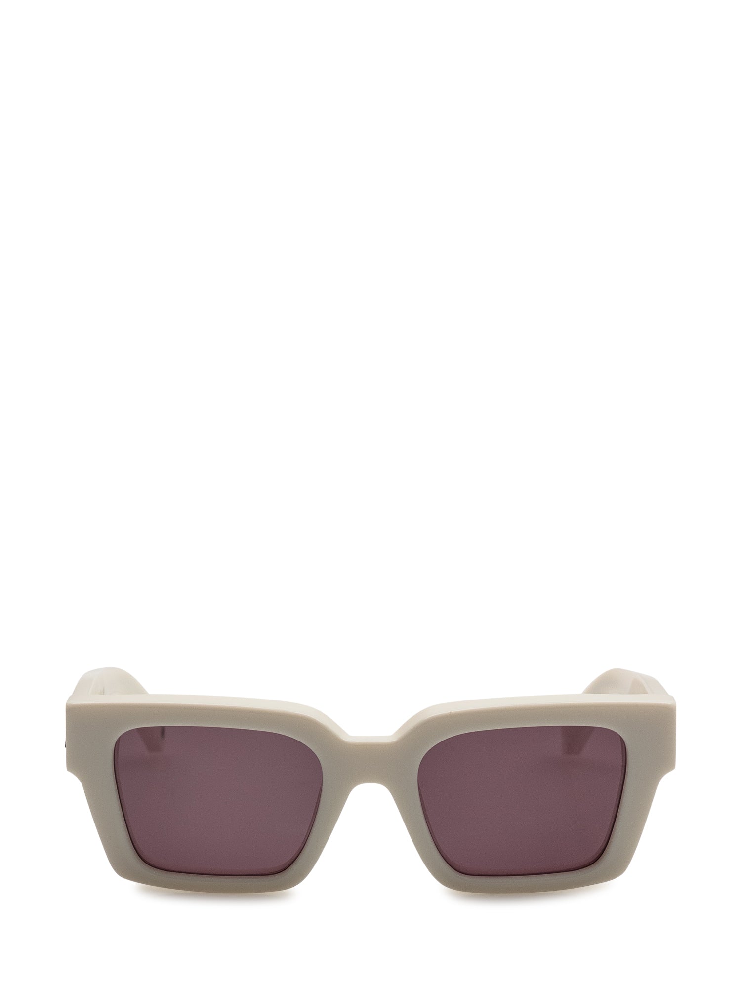 Occhiali bianchi con logo Arrow. Lenti squadrate viola.